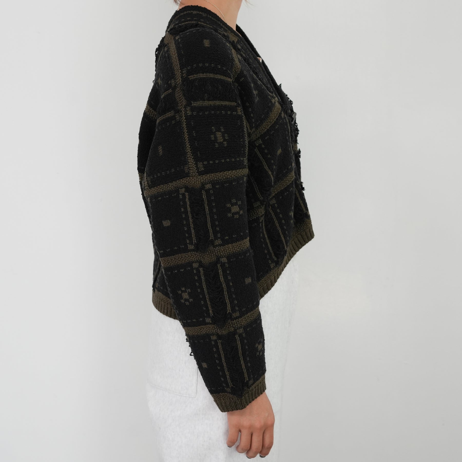 コートだと暑い気温のときに、気軽に羽織ることができるニットジャケットです。