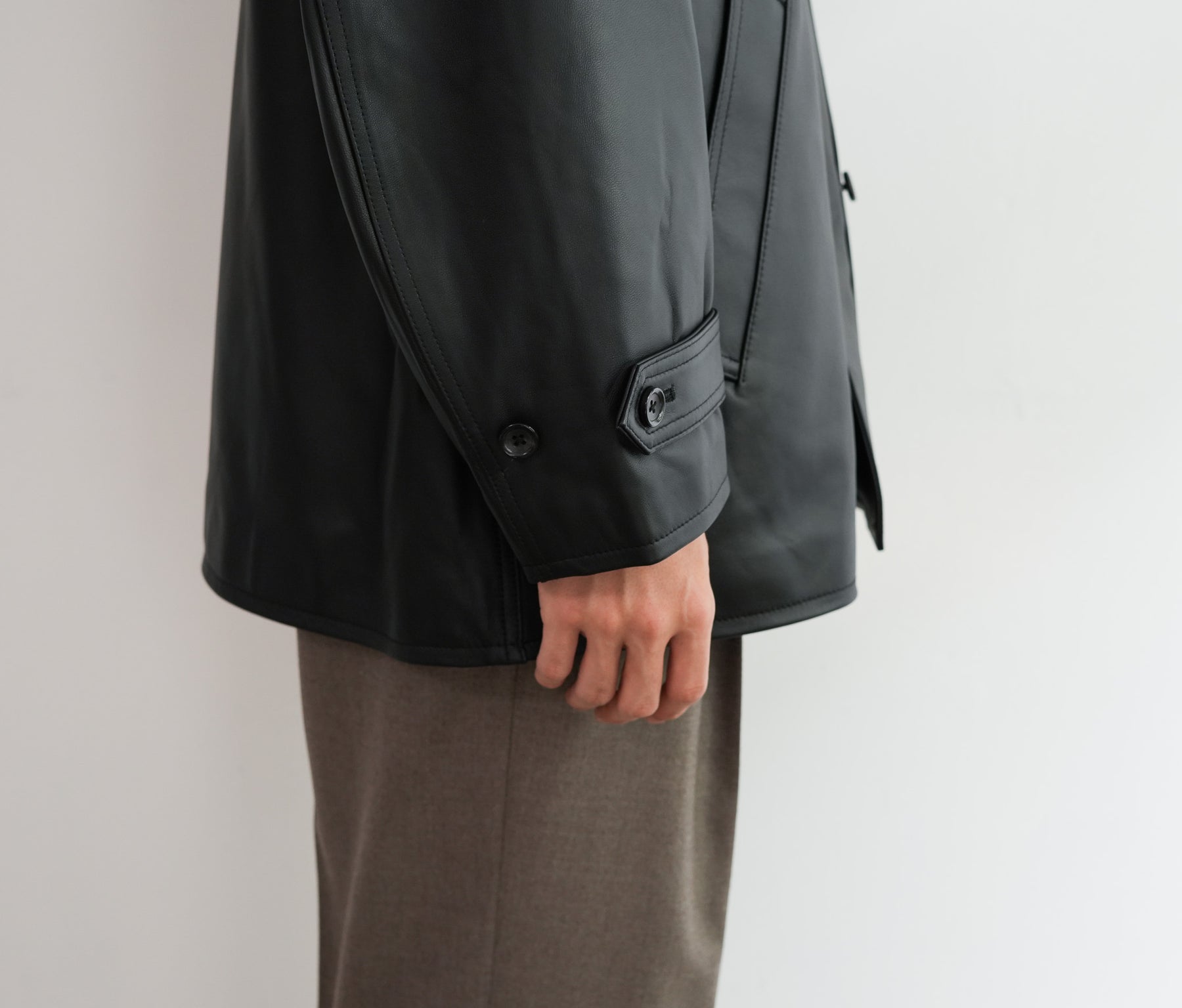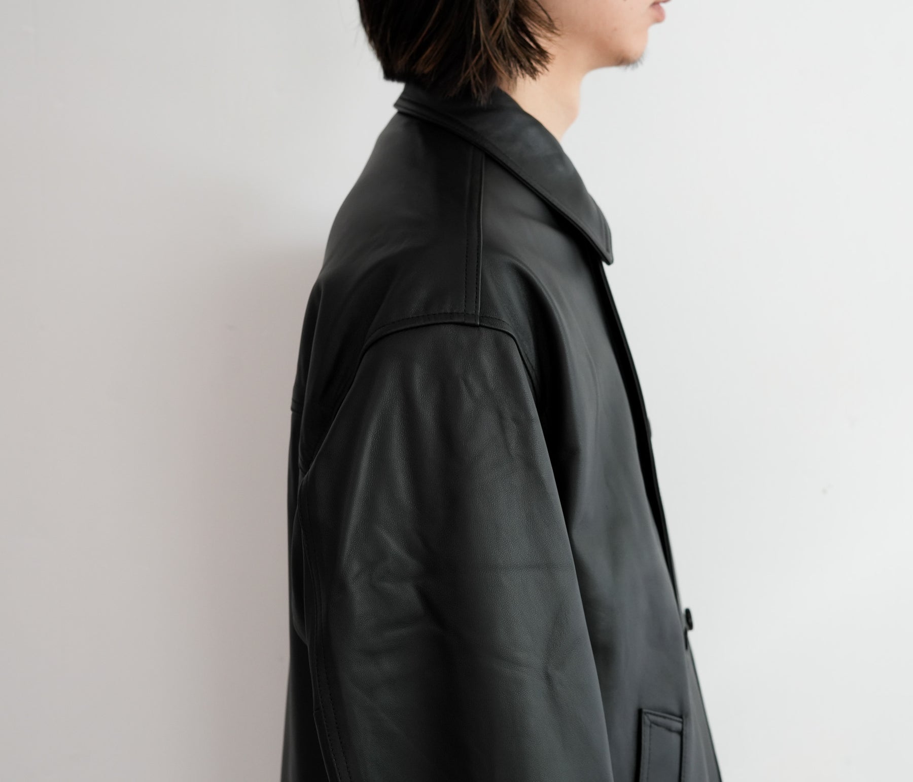 薄くしっとりと柔らかな質感で、手に吸い付くような肌触りが魅力のシープスキンを使用したコルビジェジャケット。60年代ごろのフランスで国営の行政機関など様々な機関に納品されていたレザージャケット。通称コルビジェジャケットと呼ばれているこのアイテムは近代建築の世界三大巨匠が一人「Le Corbusier/ル・コルビジェ」が、このコートを愛用していたことから。特徴的なセミダブルの打ち合わせや胸のフラップポケットはそのままに洗練されたシルエットにアップデート。