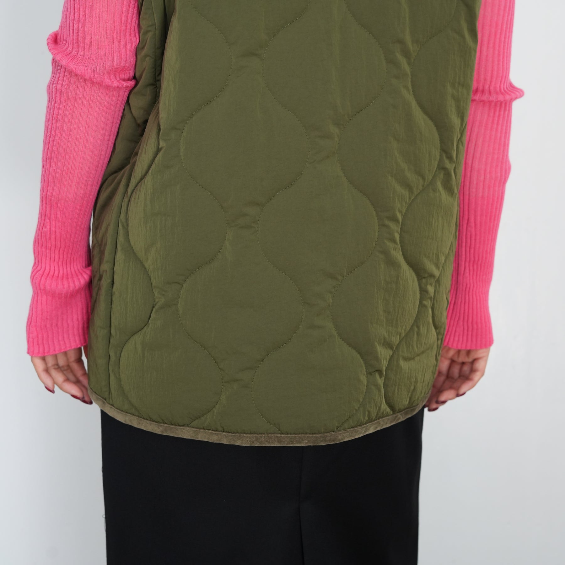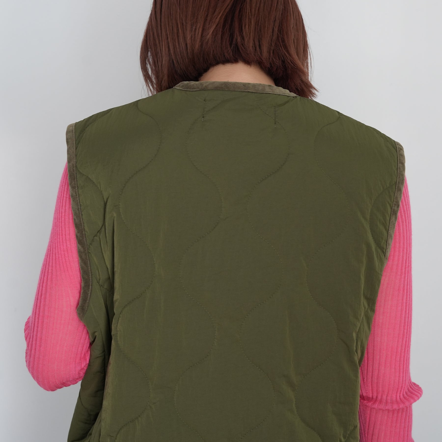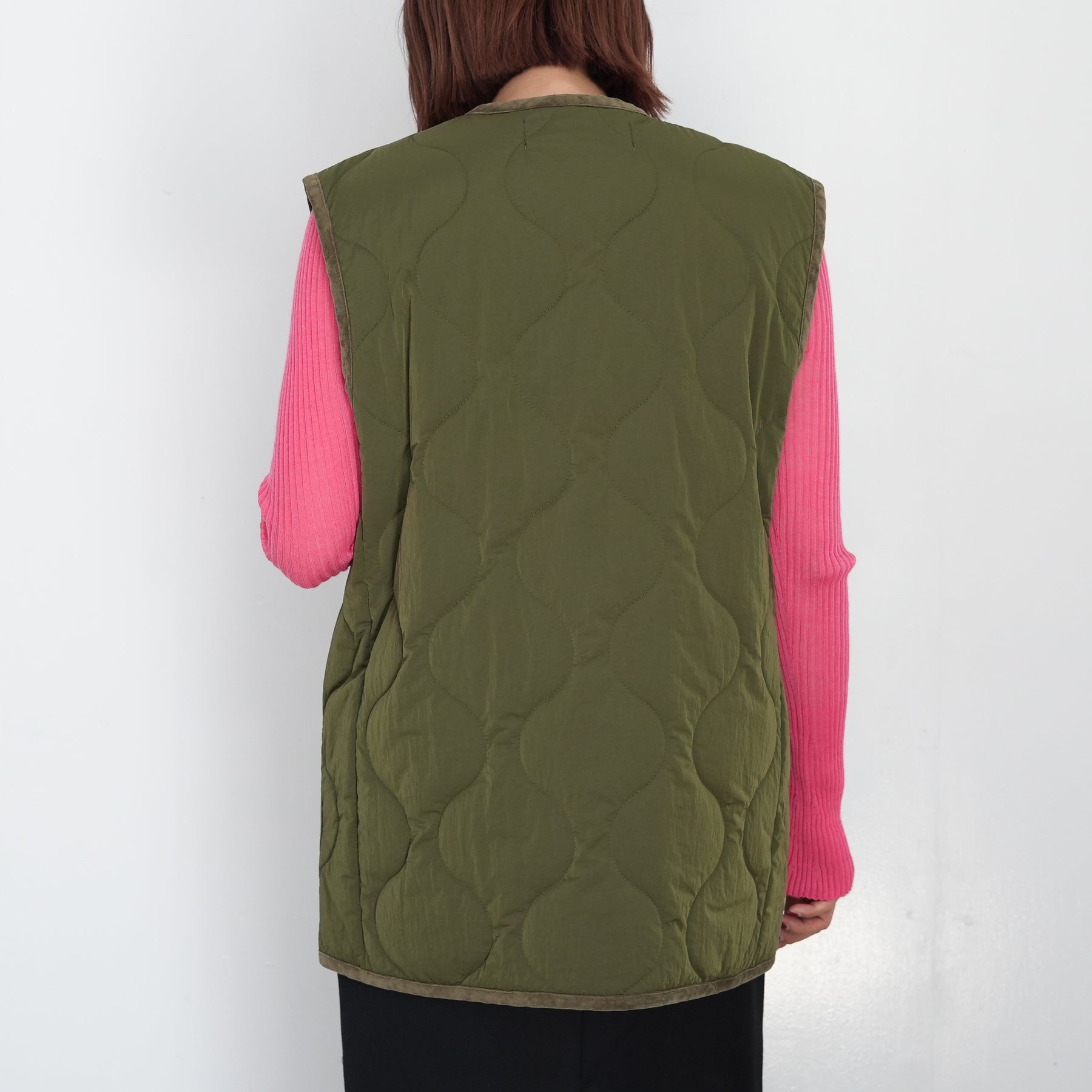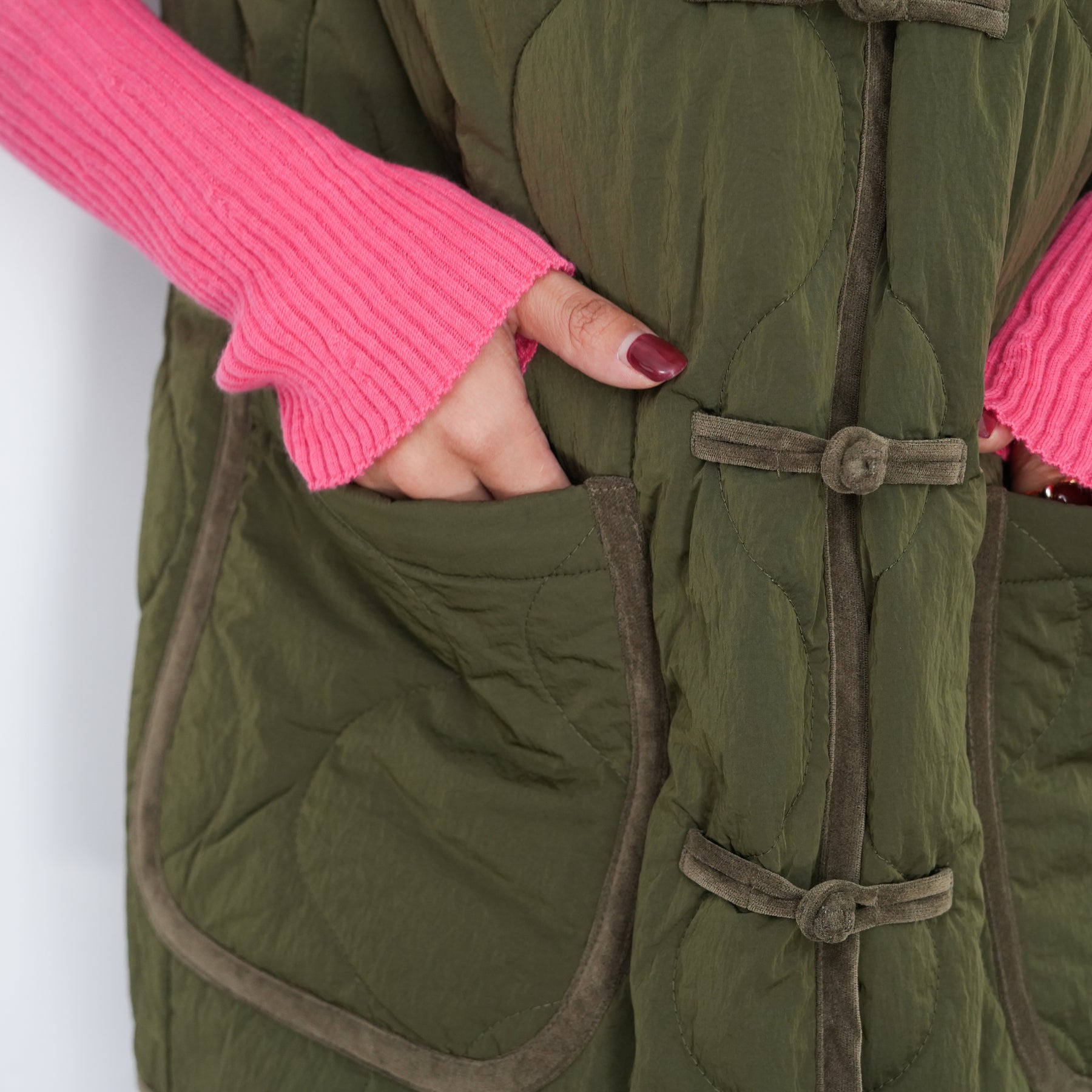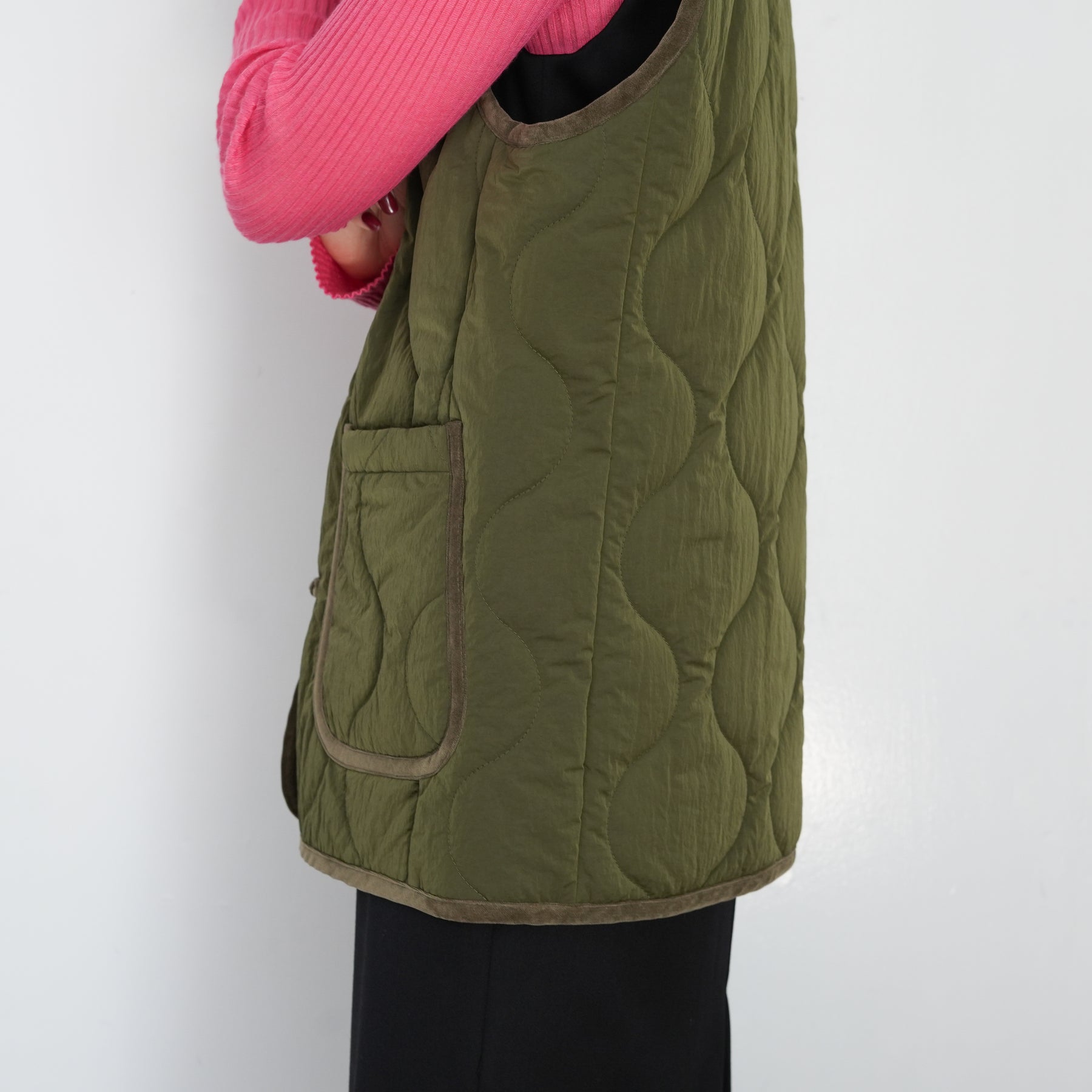 チャイナボタンをポイントにしたキルティングベストです。