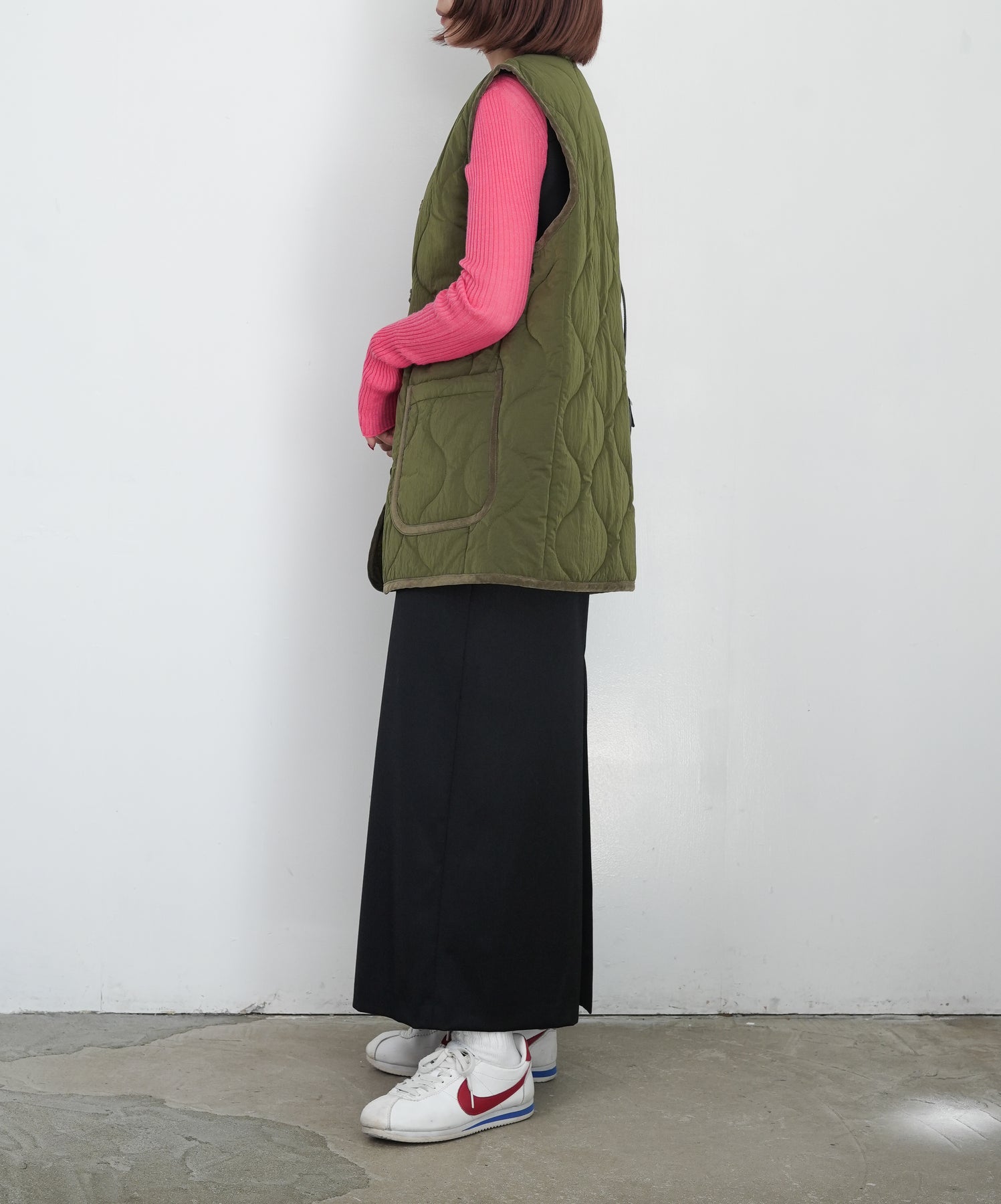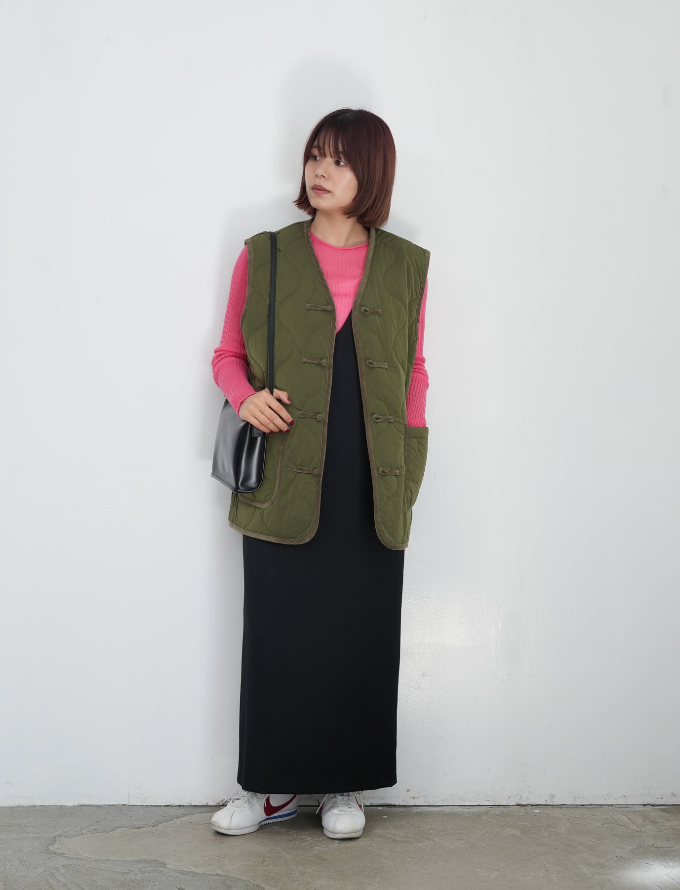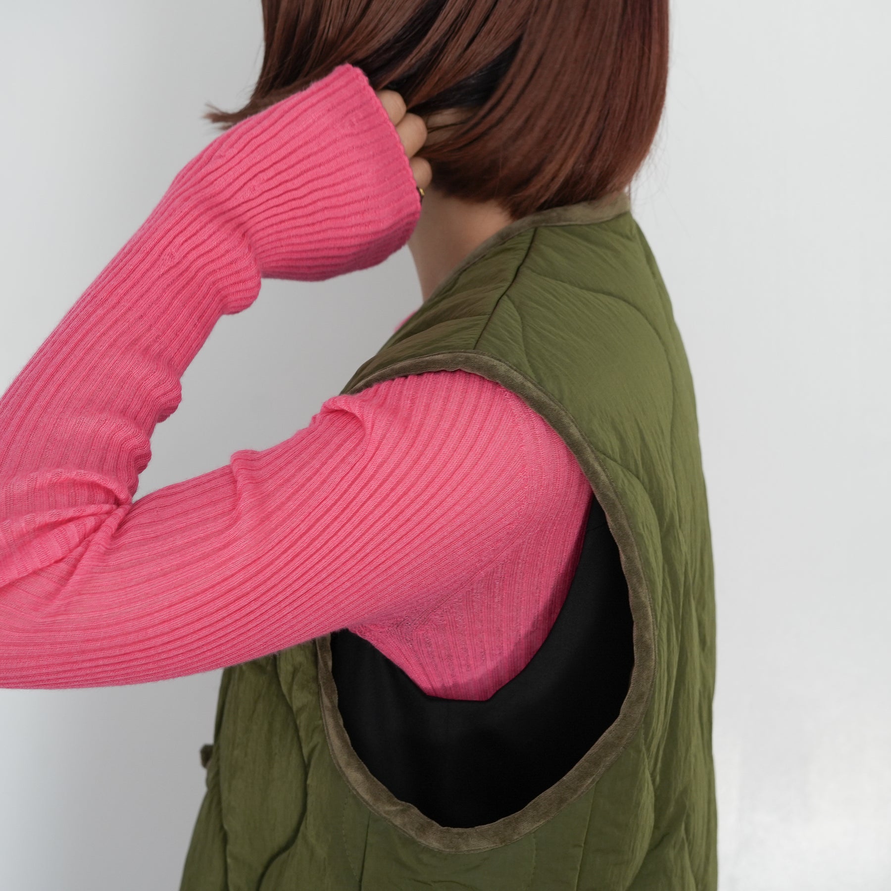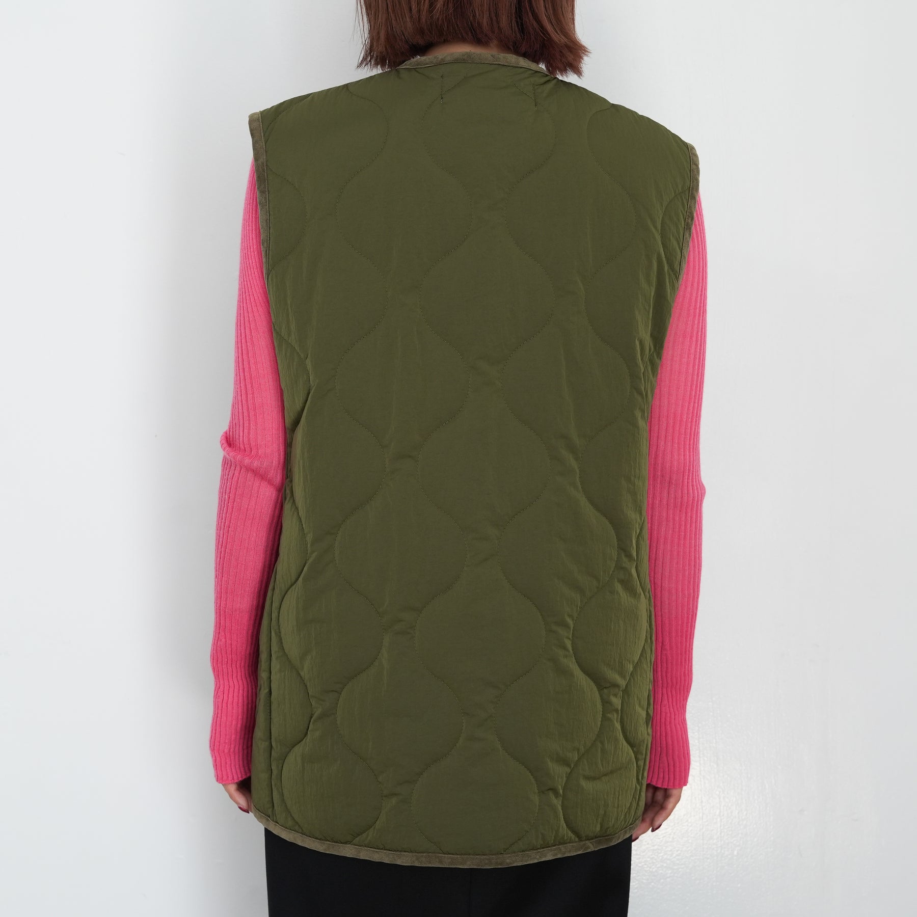 チャイナボタンをポイントにしたキルティングベストです。