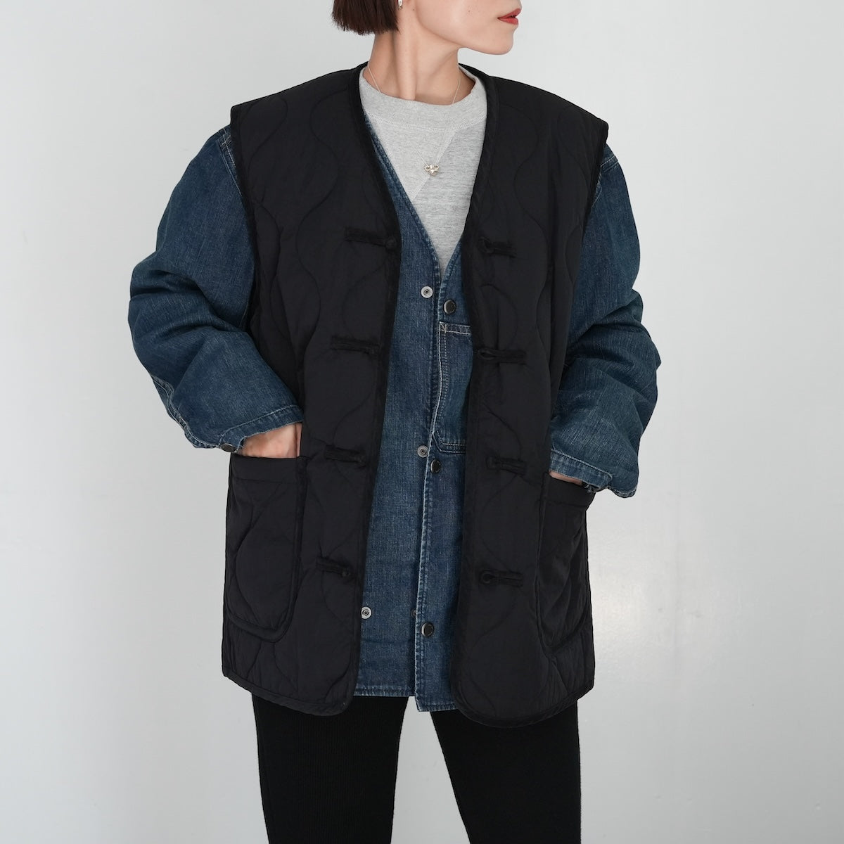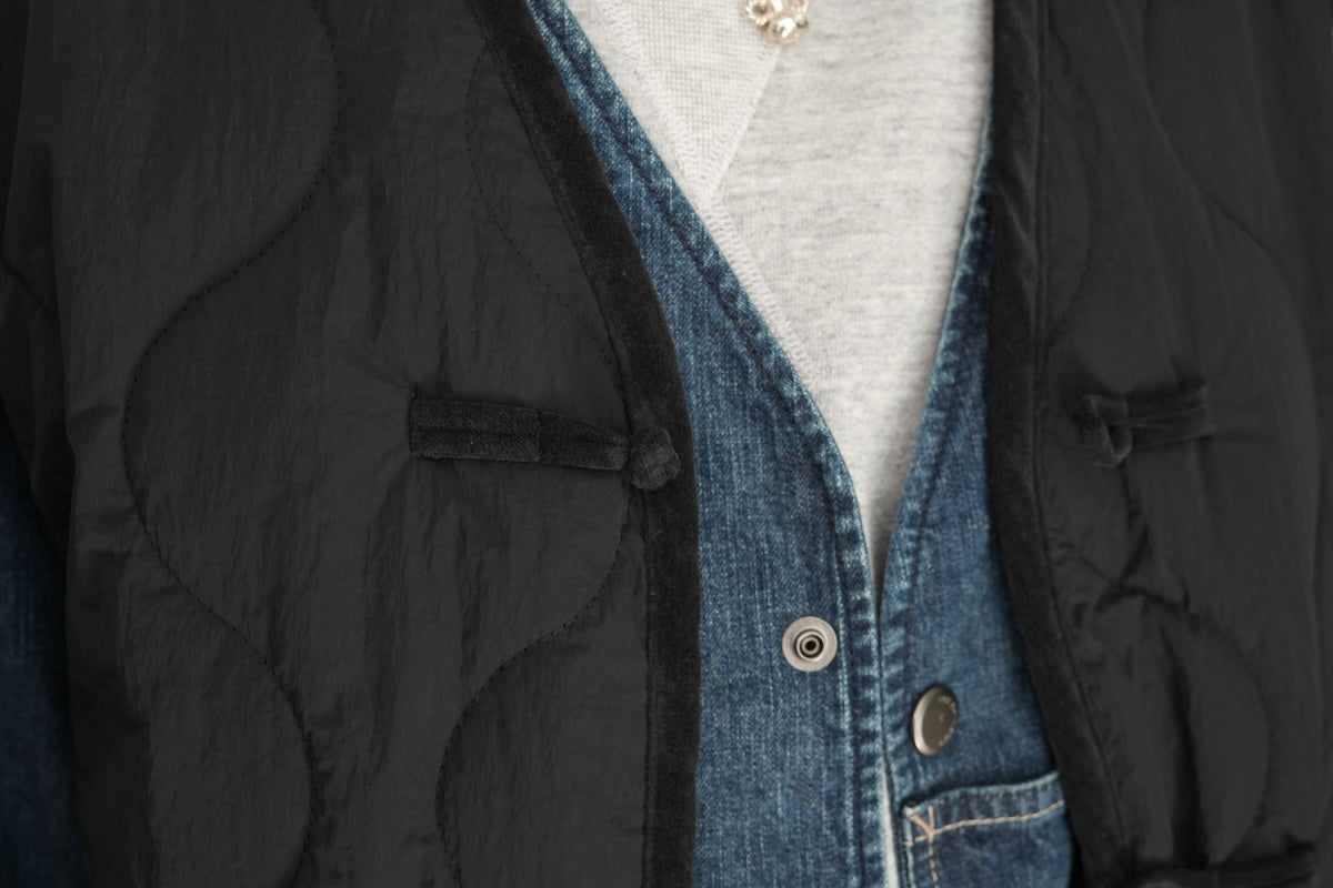 | 素材 | 表地:ナイロン100% 裏地:ポリエステル100% 中綿:ポリエステル100% 別布:ポリエステル43%、綿32%、レーヨン23%、ポリウレタン2% |