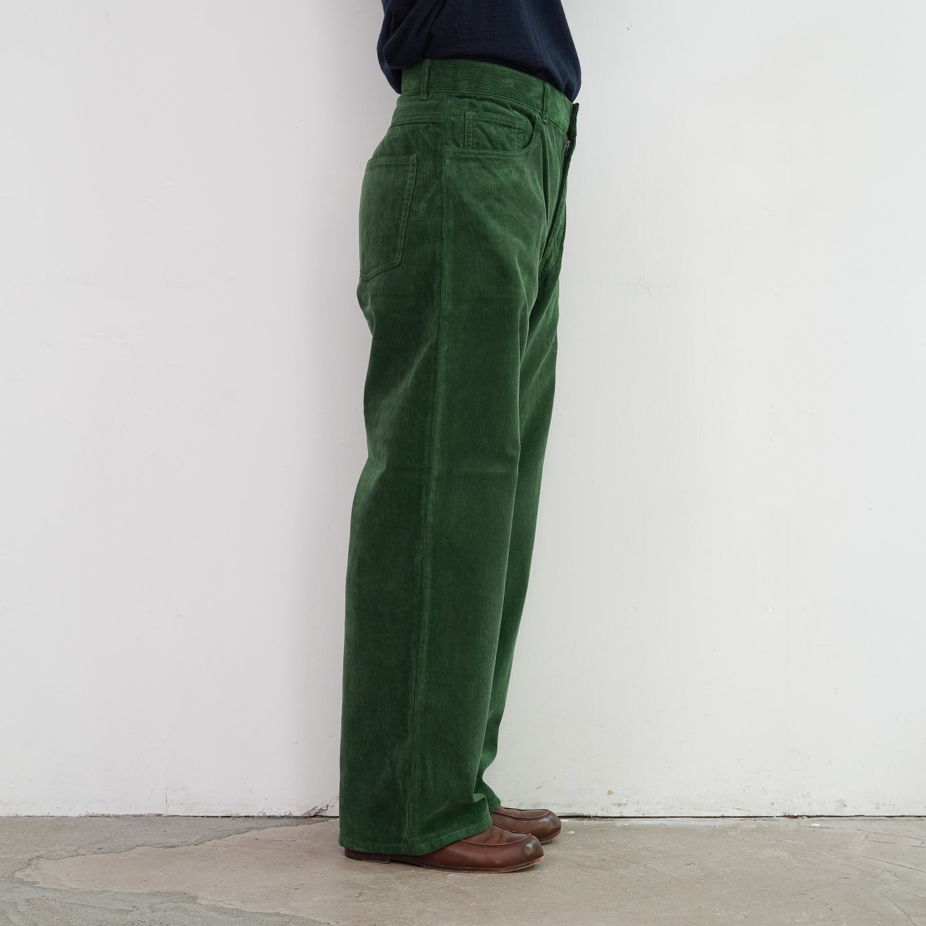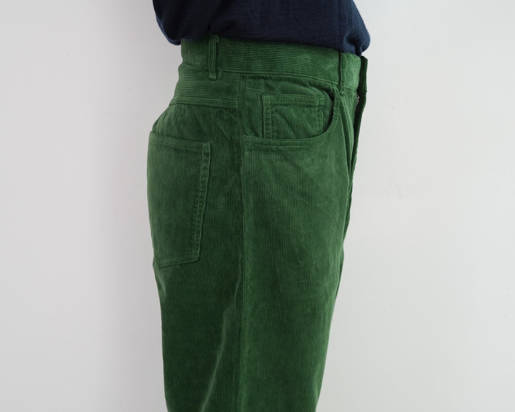 しなやかで柔らかく、艶感のある細畝が特徴のワイドコーデュロイパンツ。