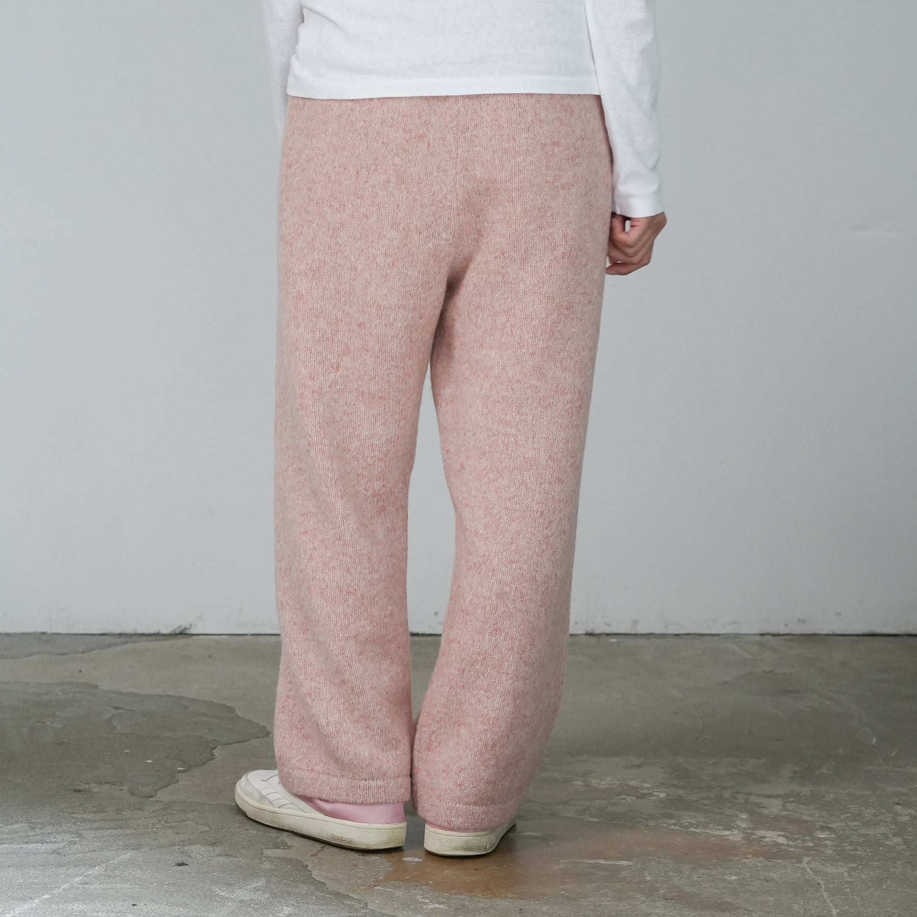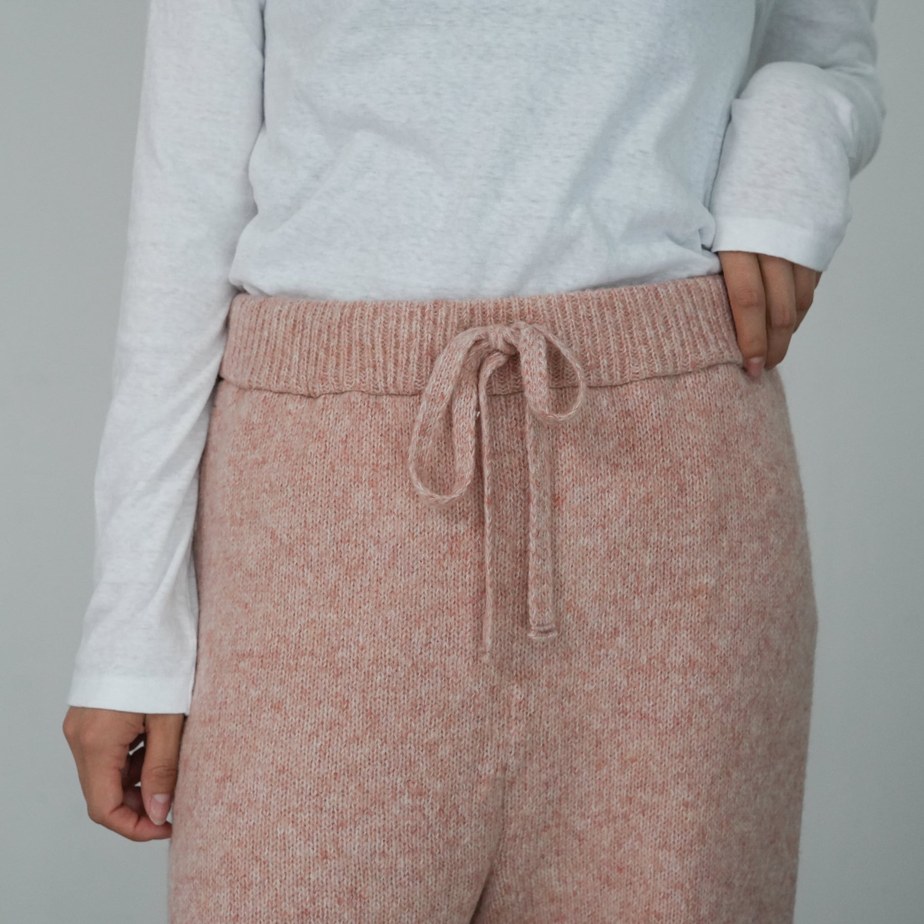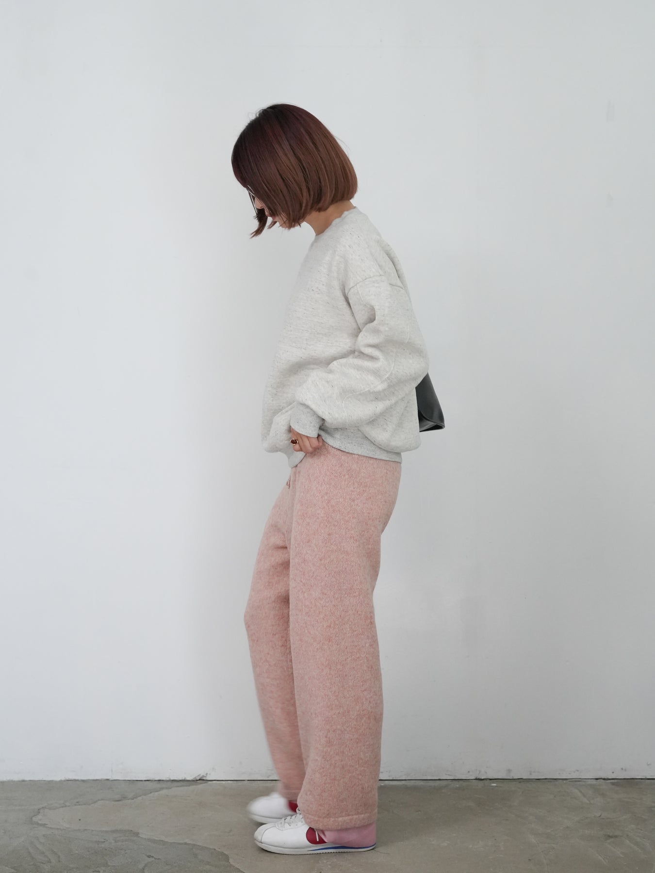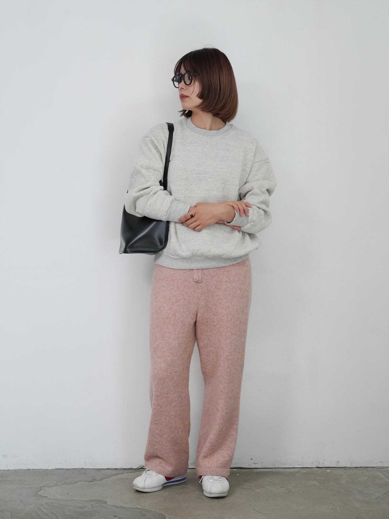 ウォーム感のあるニットパンツが引き締まり、少しクールな印象になります。