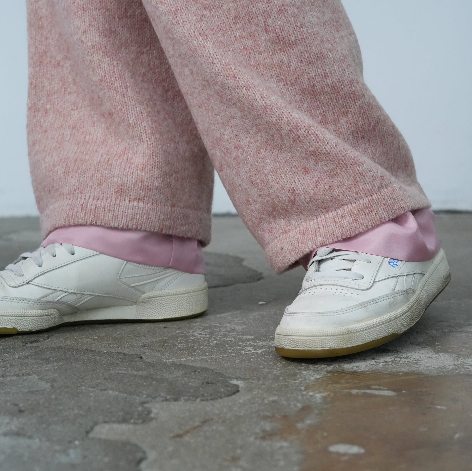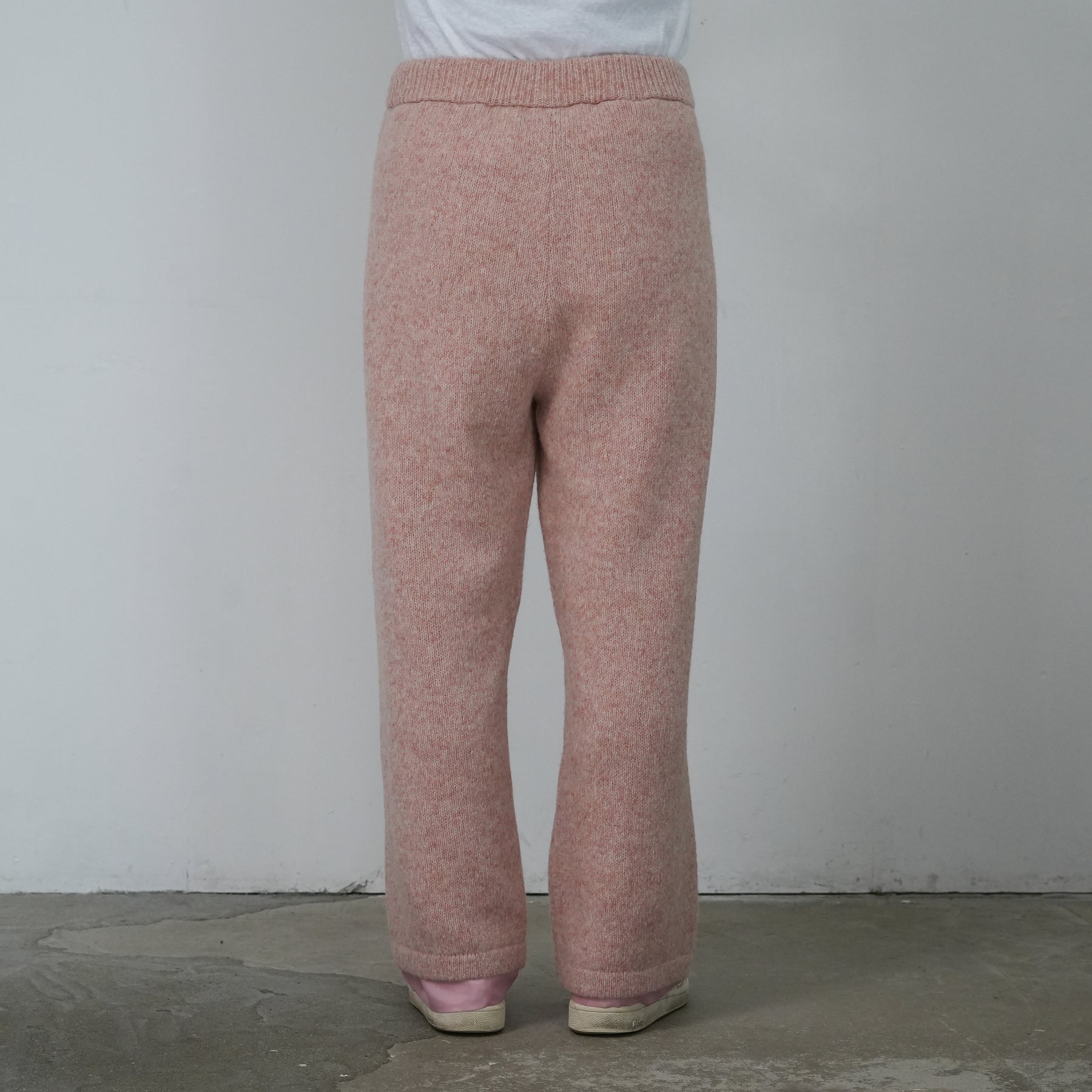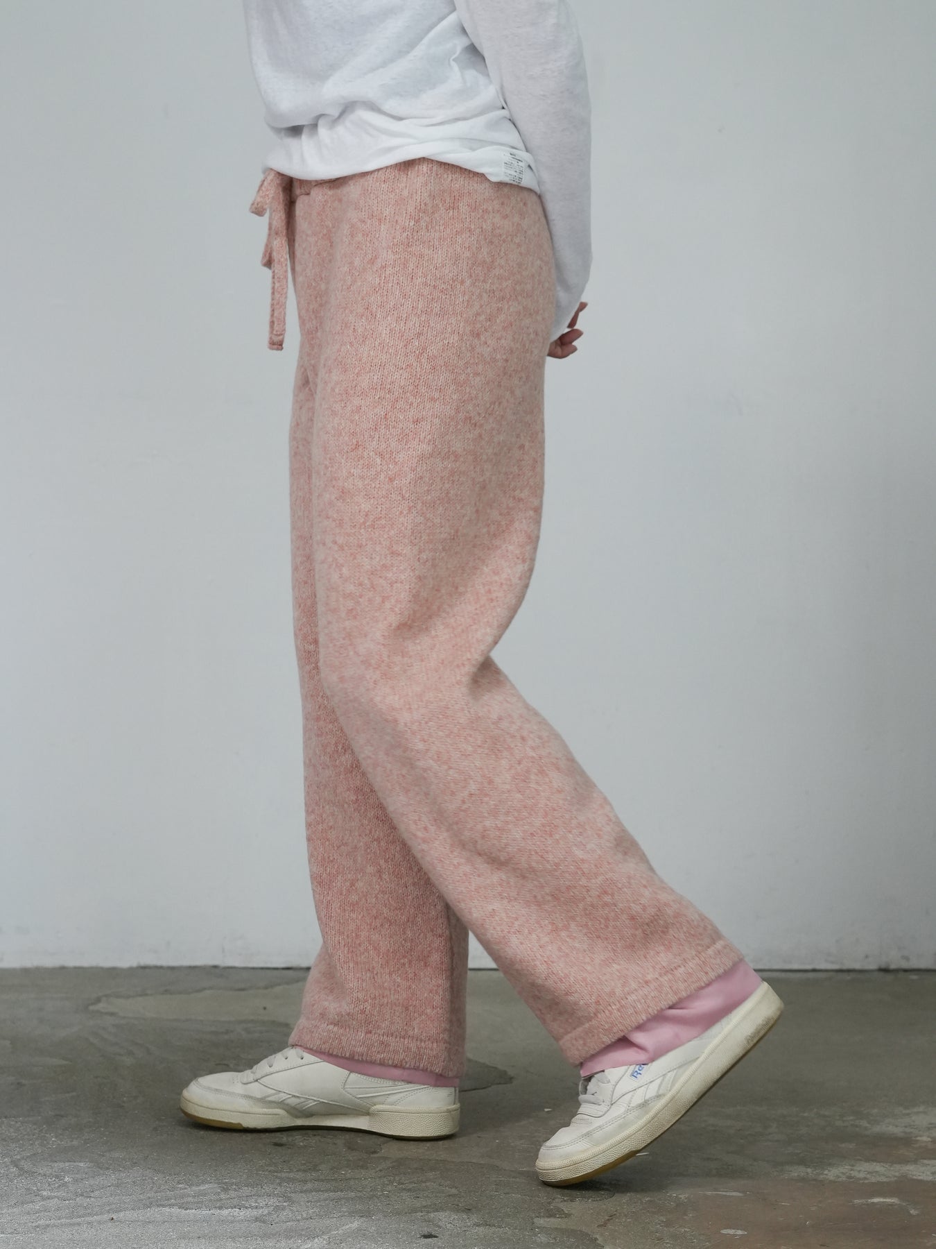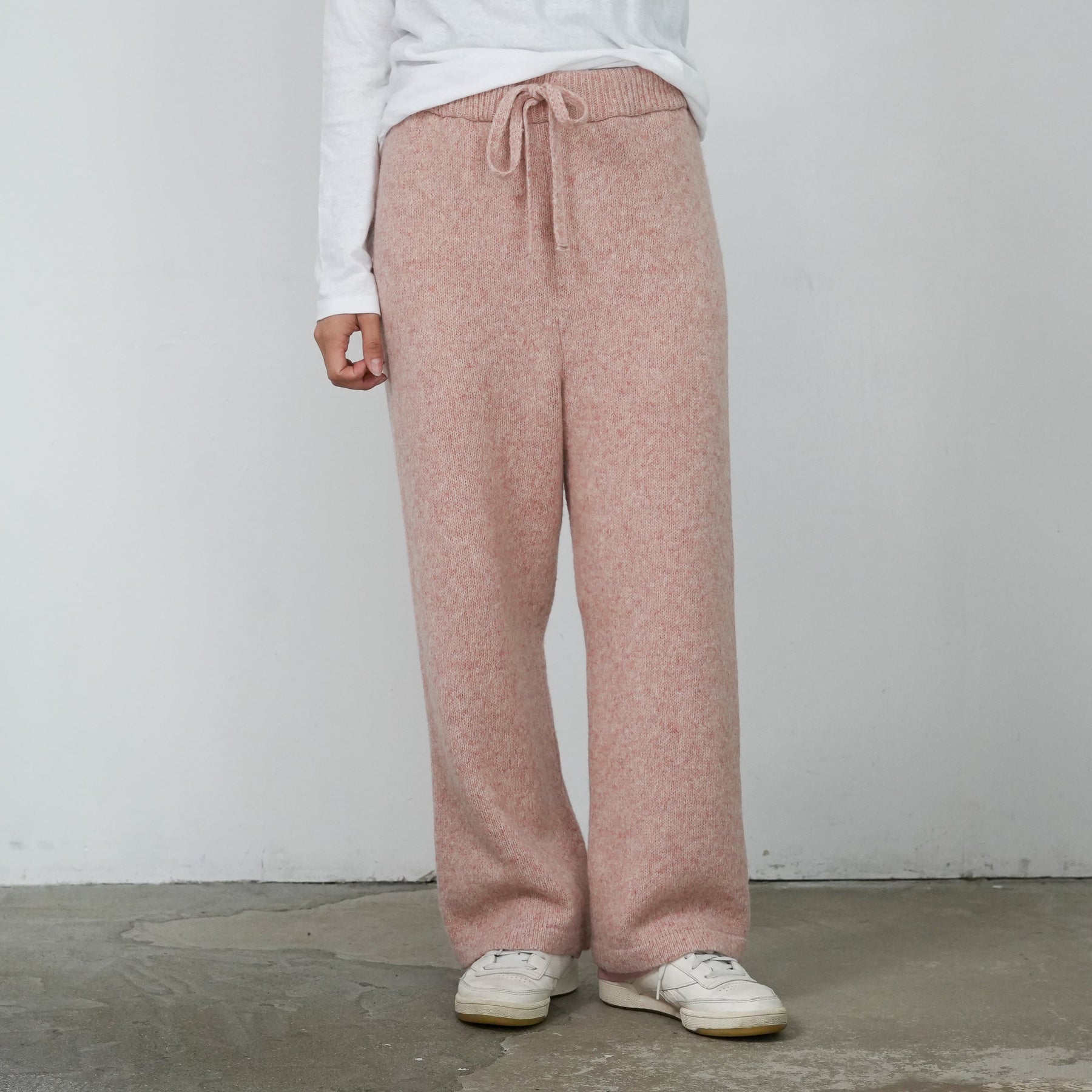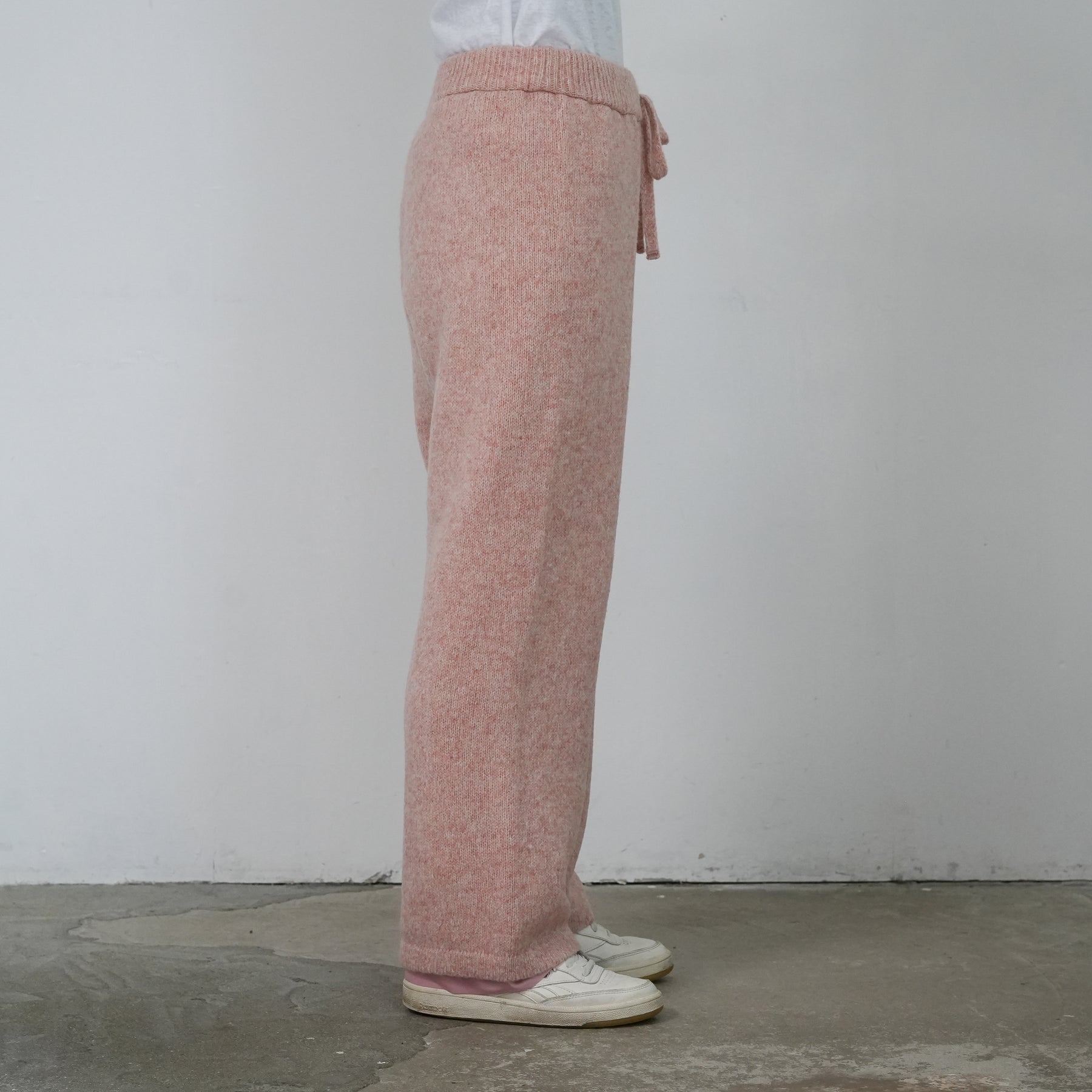 ウォーム感のあるニットパンツが引き締まり、少しクールな印象になります。