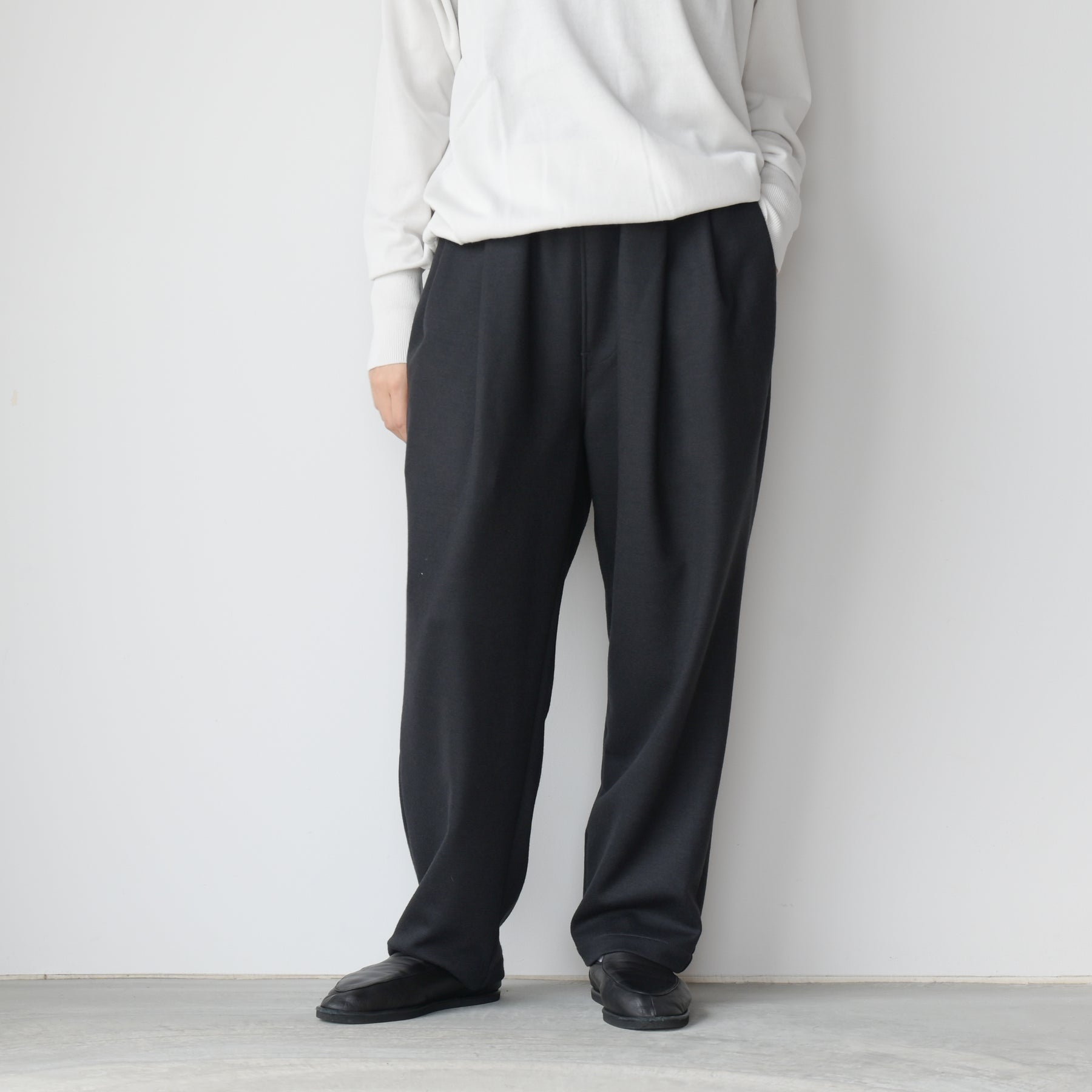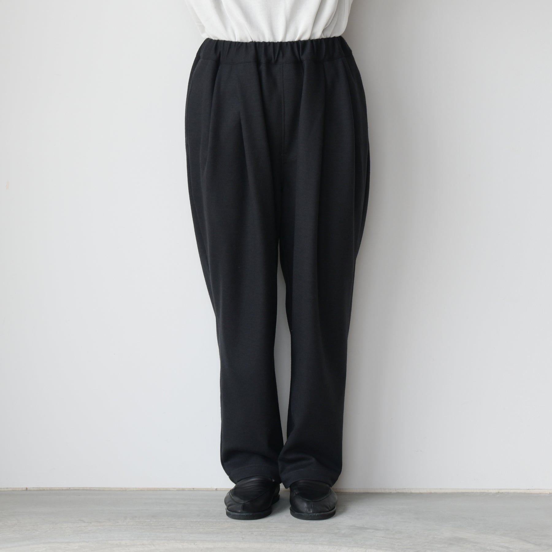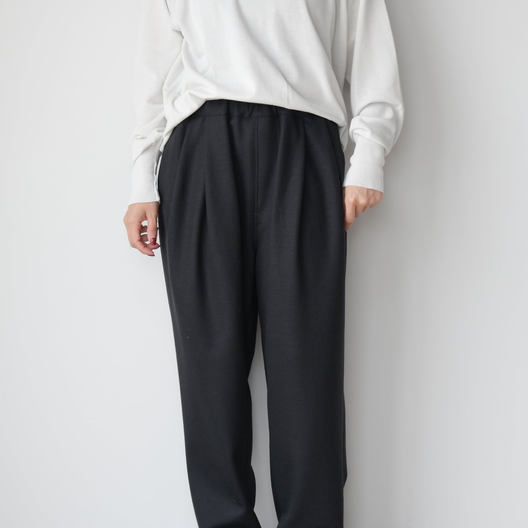 腰回りにしっかりボリュームがあるタックを入れワタリ幅も広くすることで、