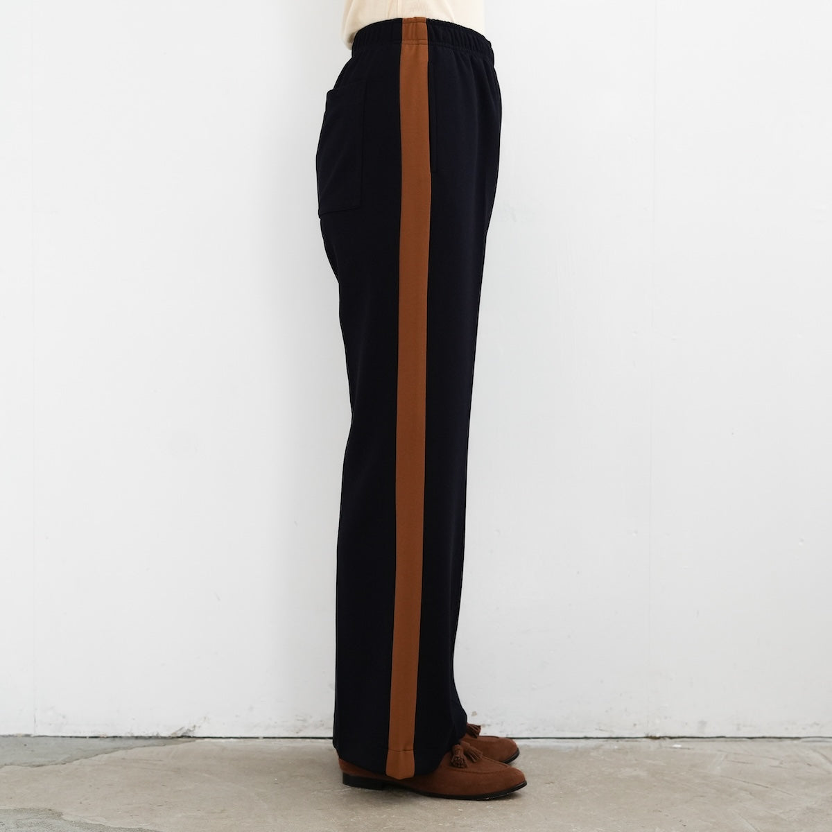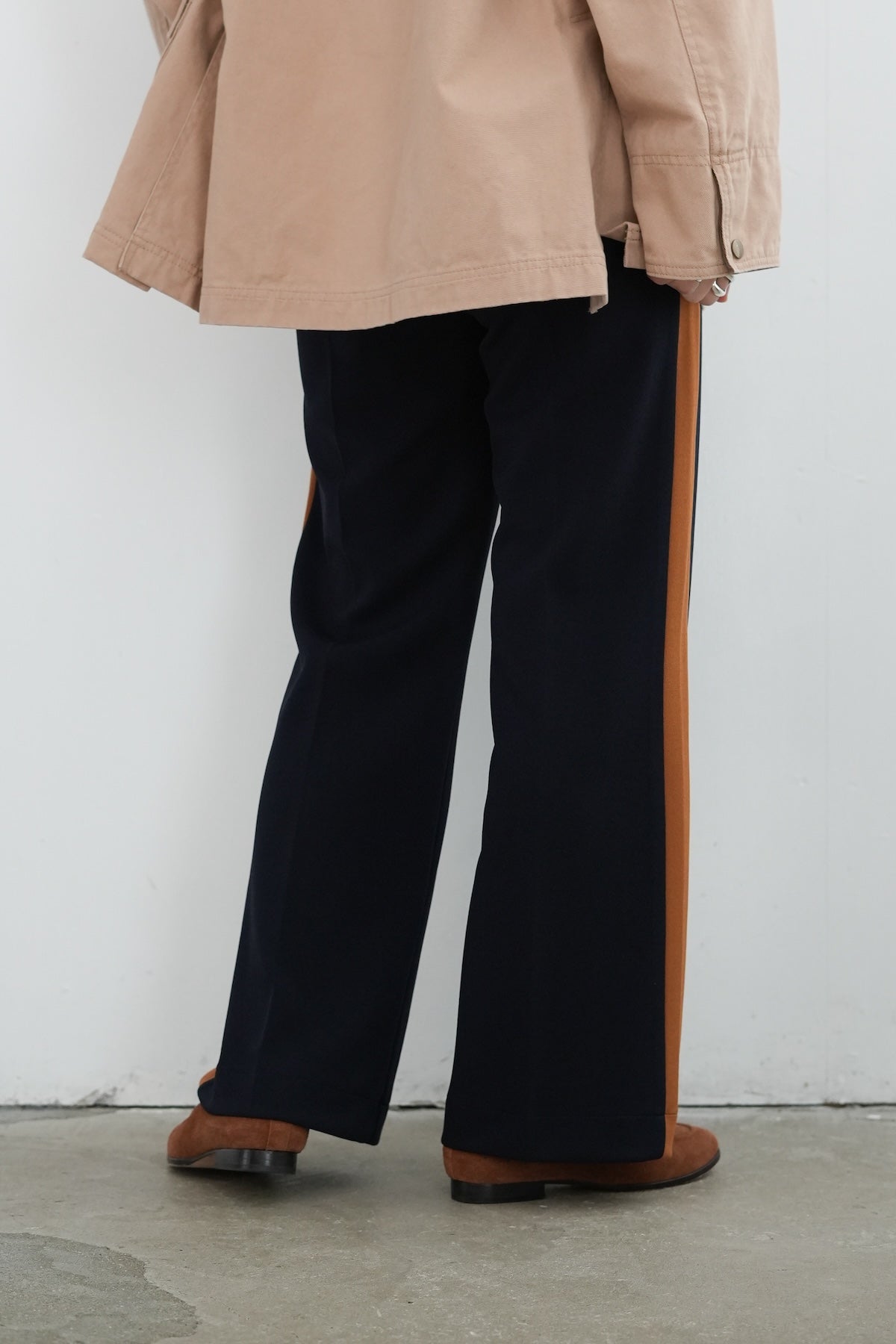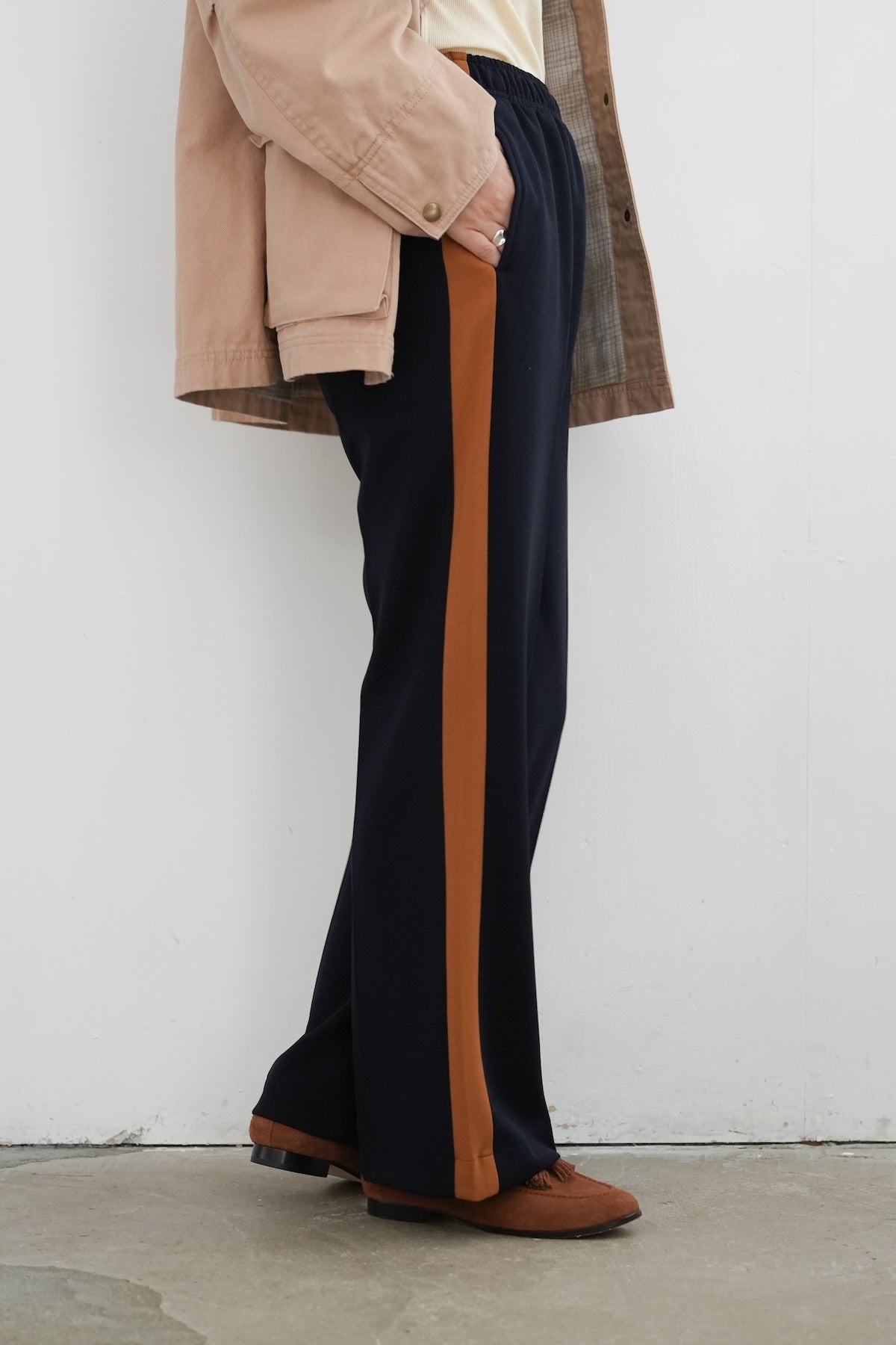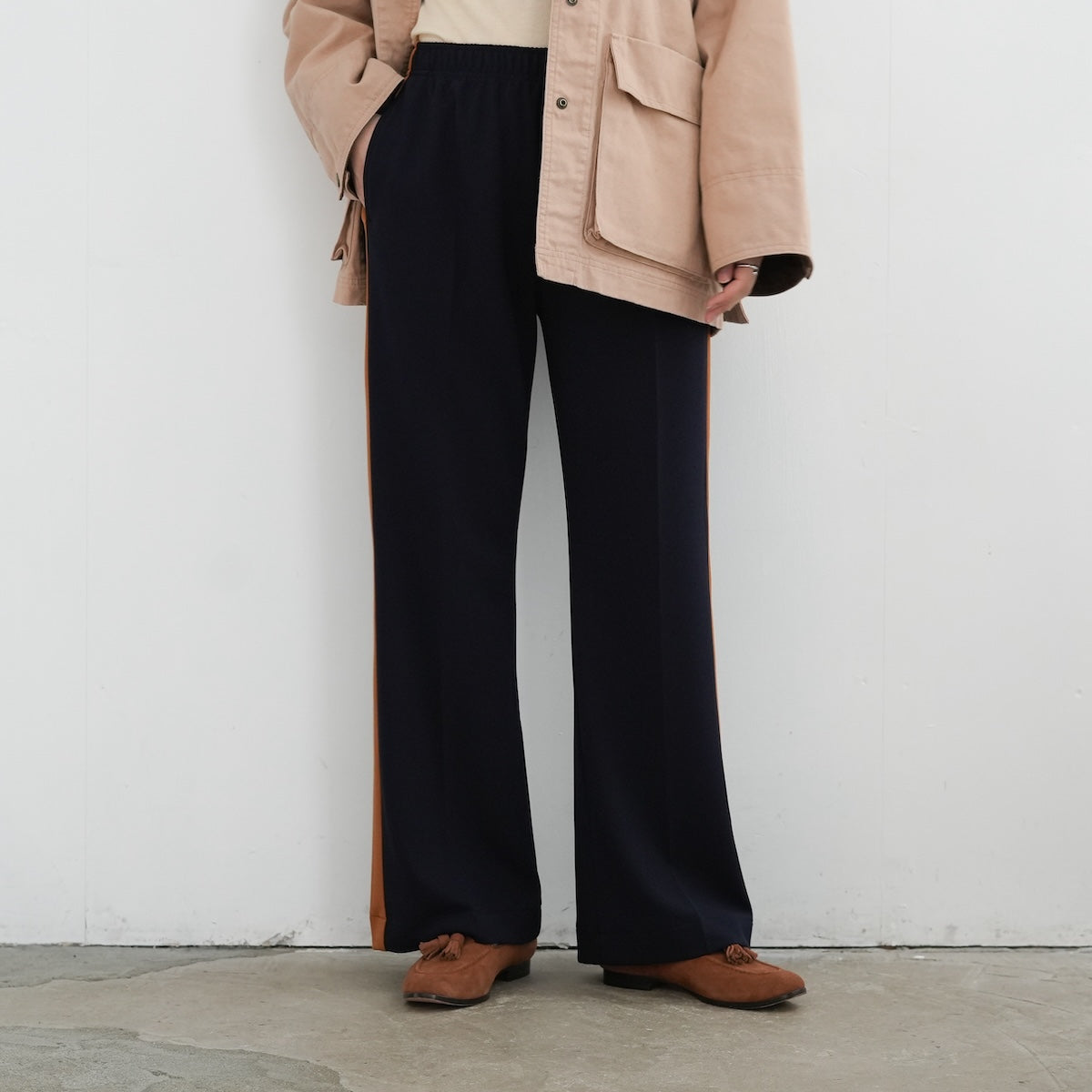 軽さと膨らみを併せ持つジョーゼットカルゼ素材を使用した サイドストライプパンツ。
