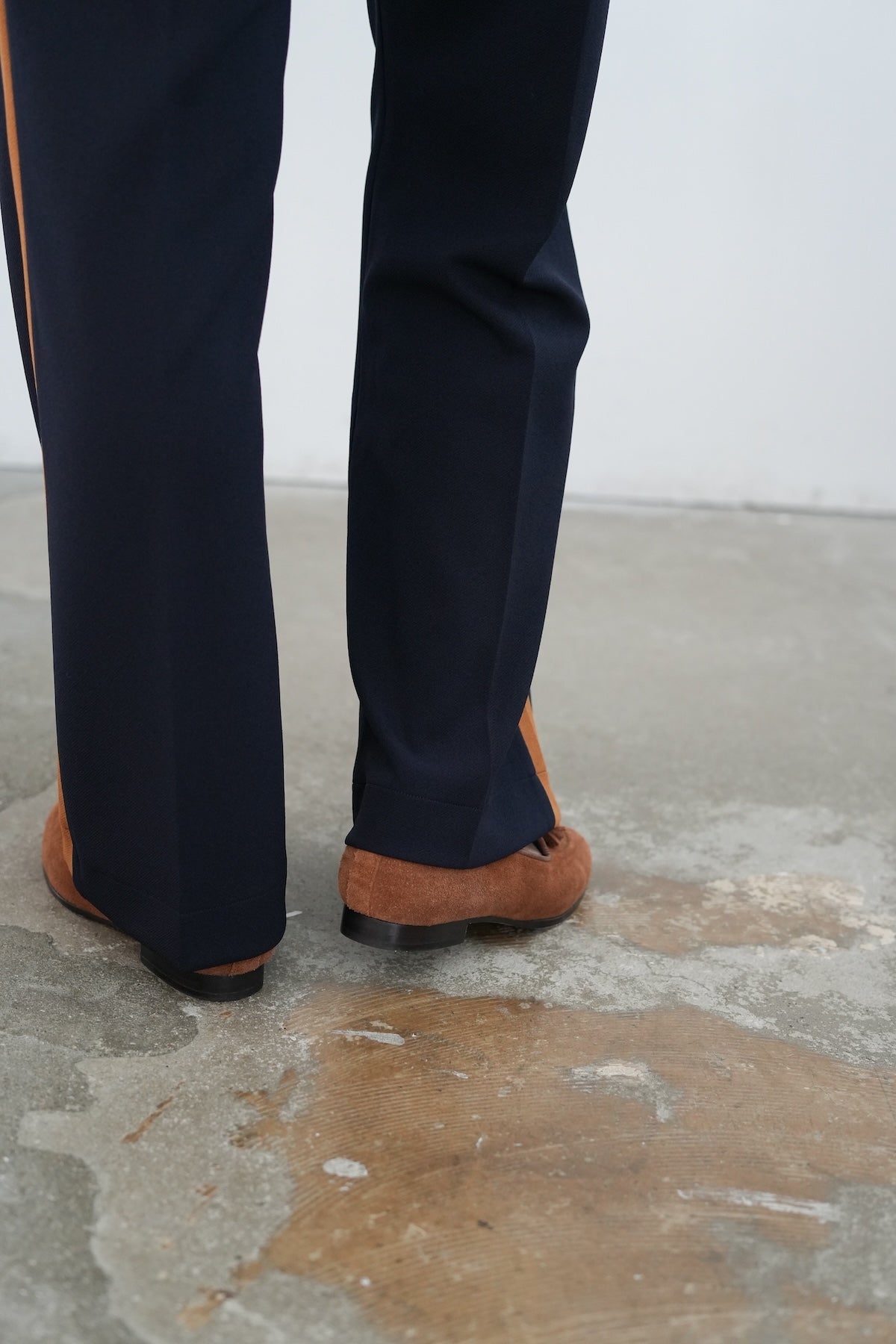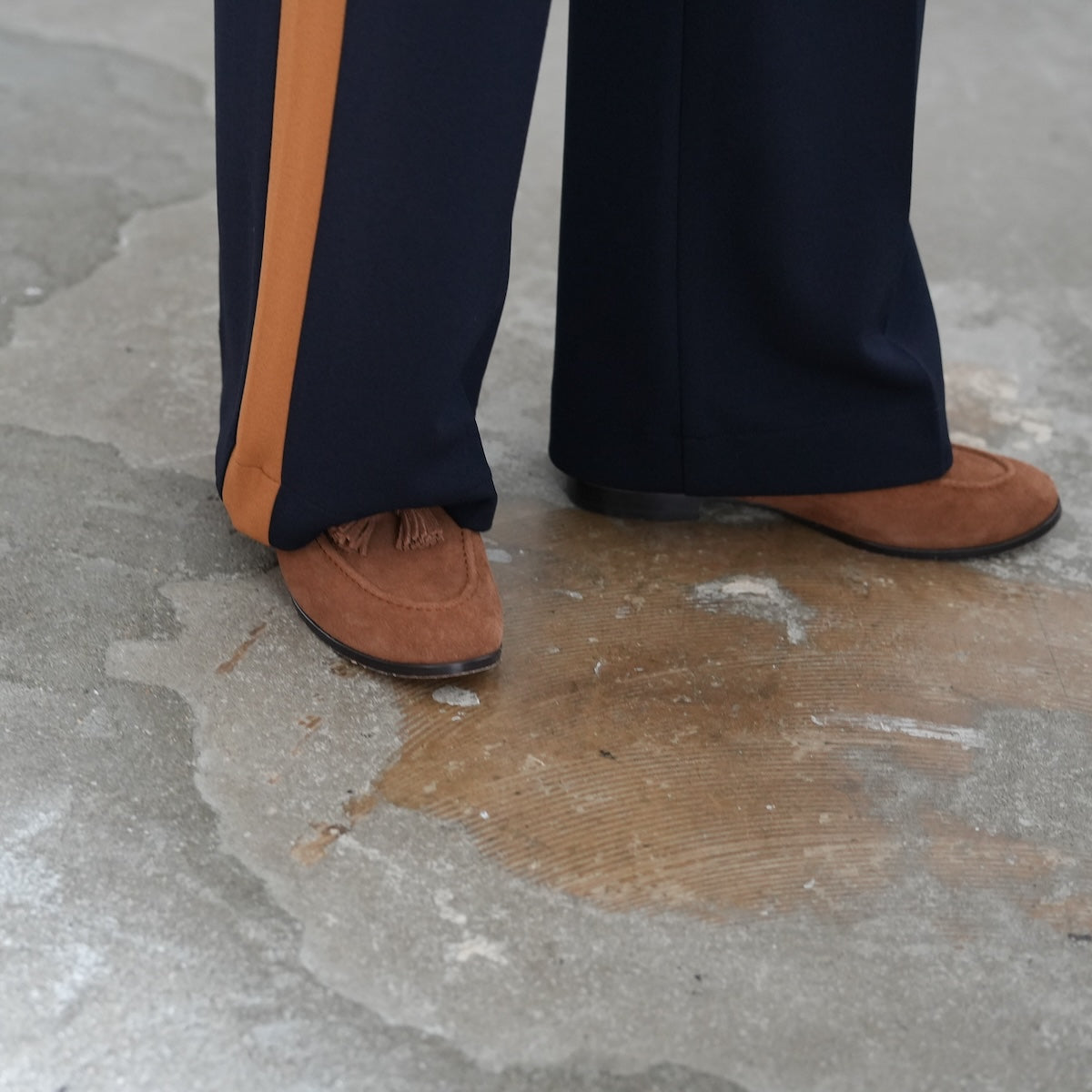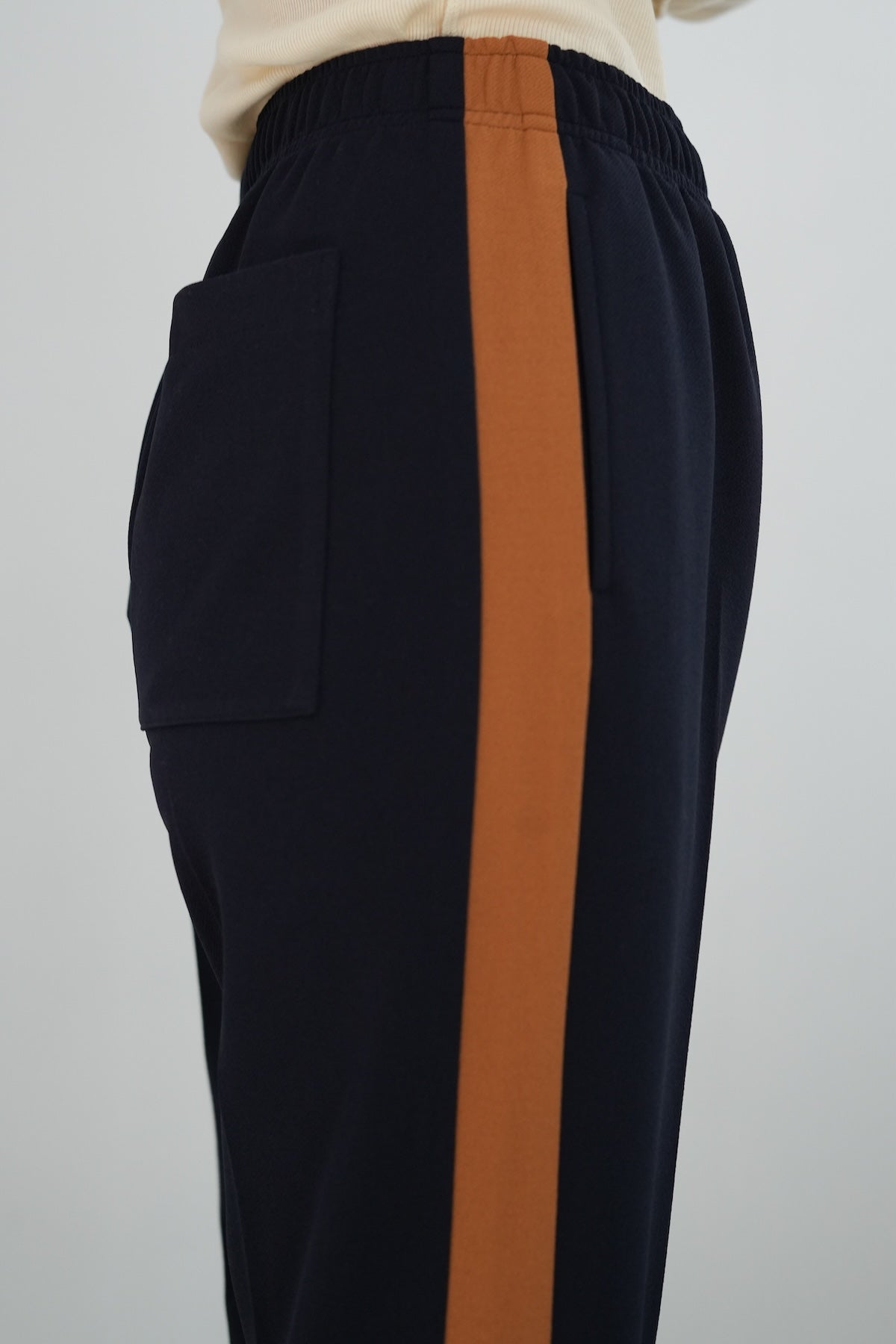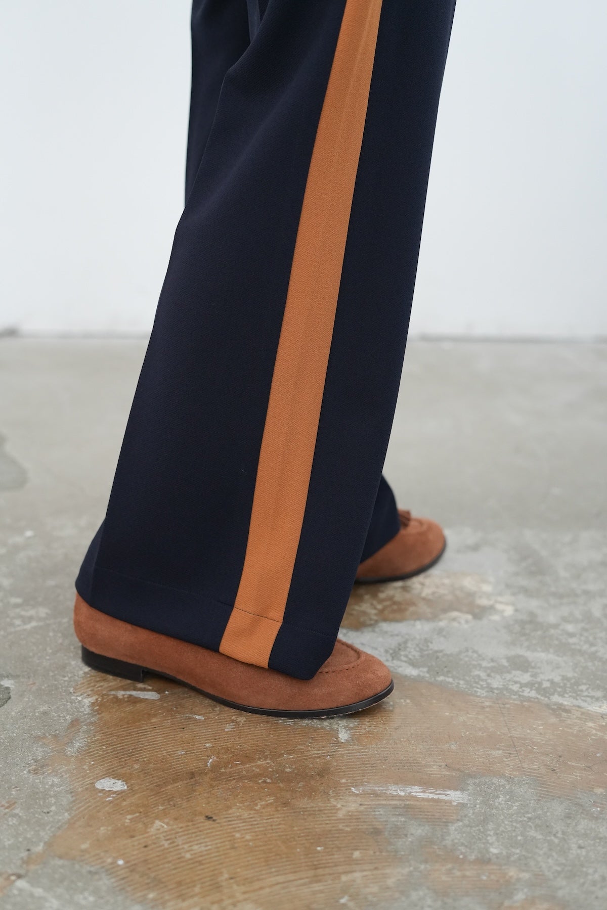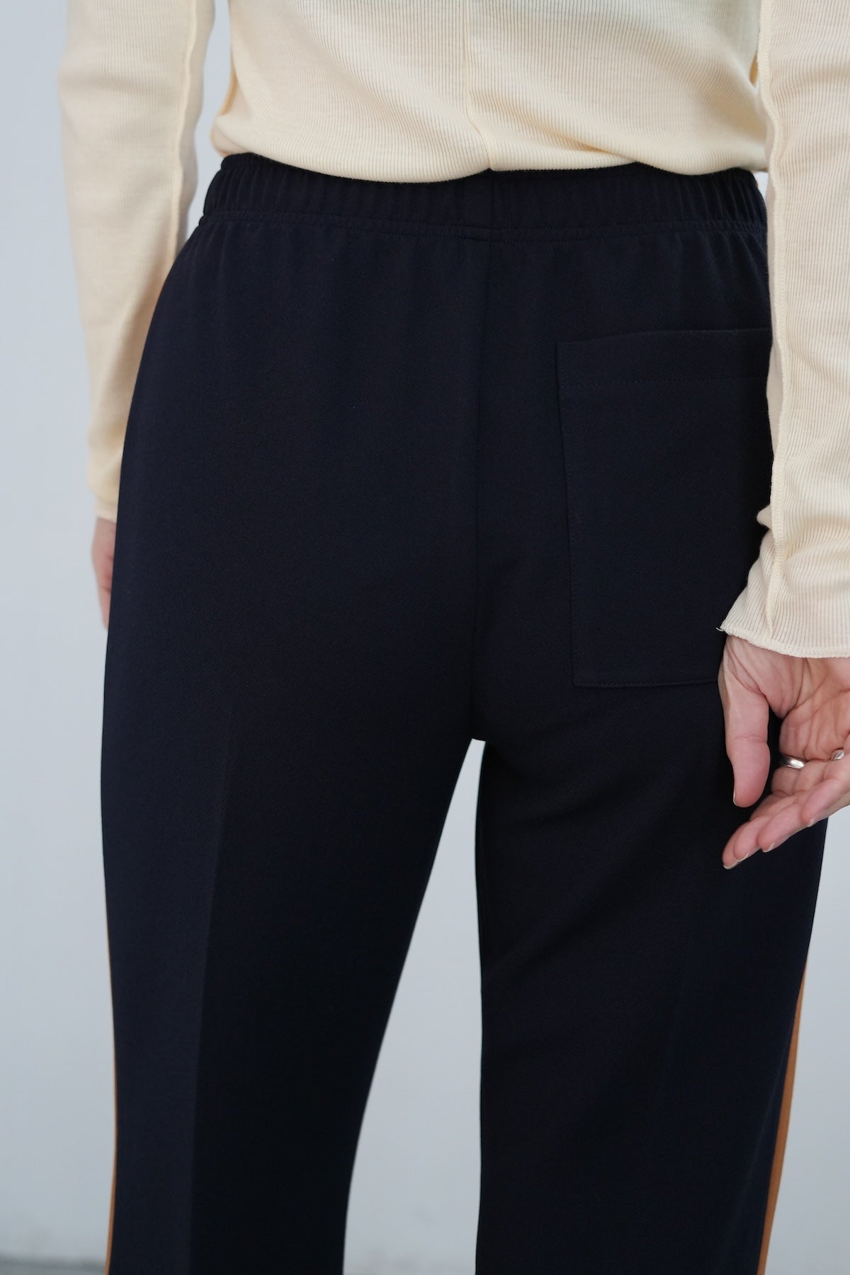 軽さと膨らみを併せ持つジョーゼットカルゼ素材を使用した サイドストライプパンツ。