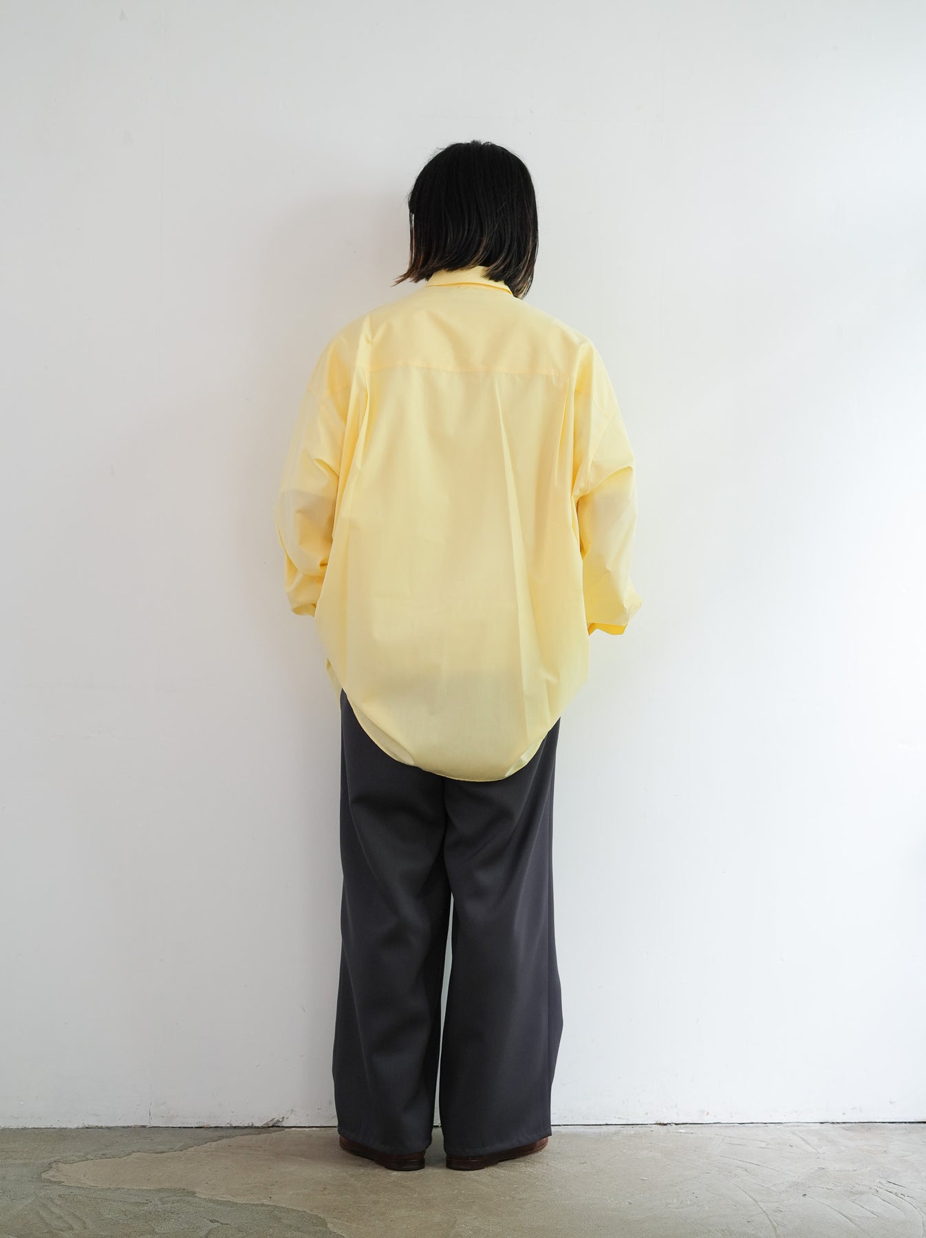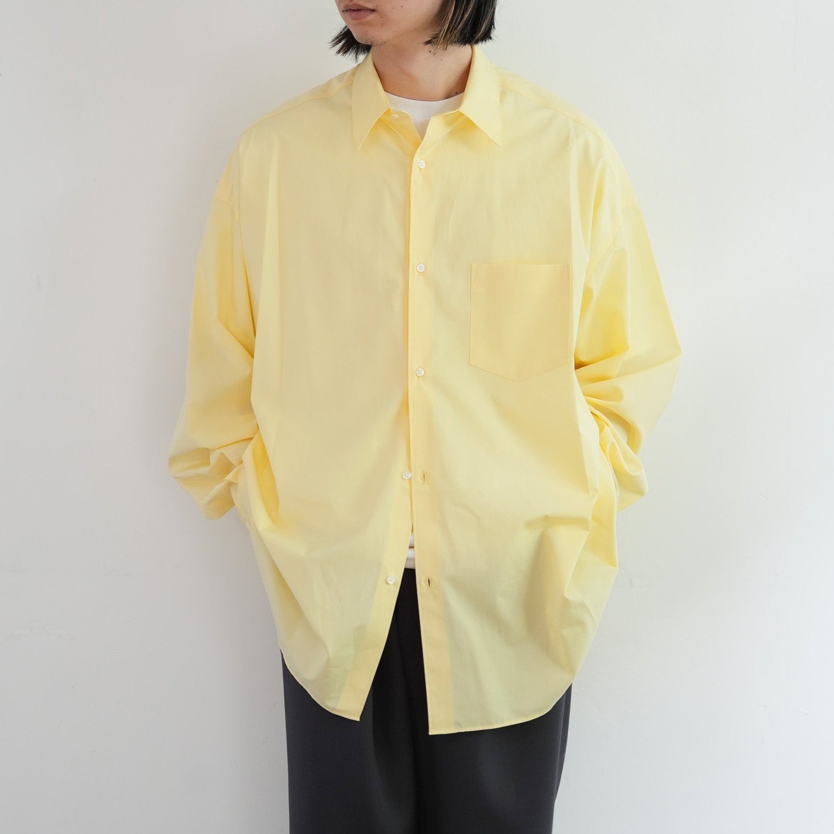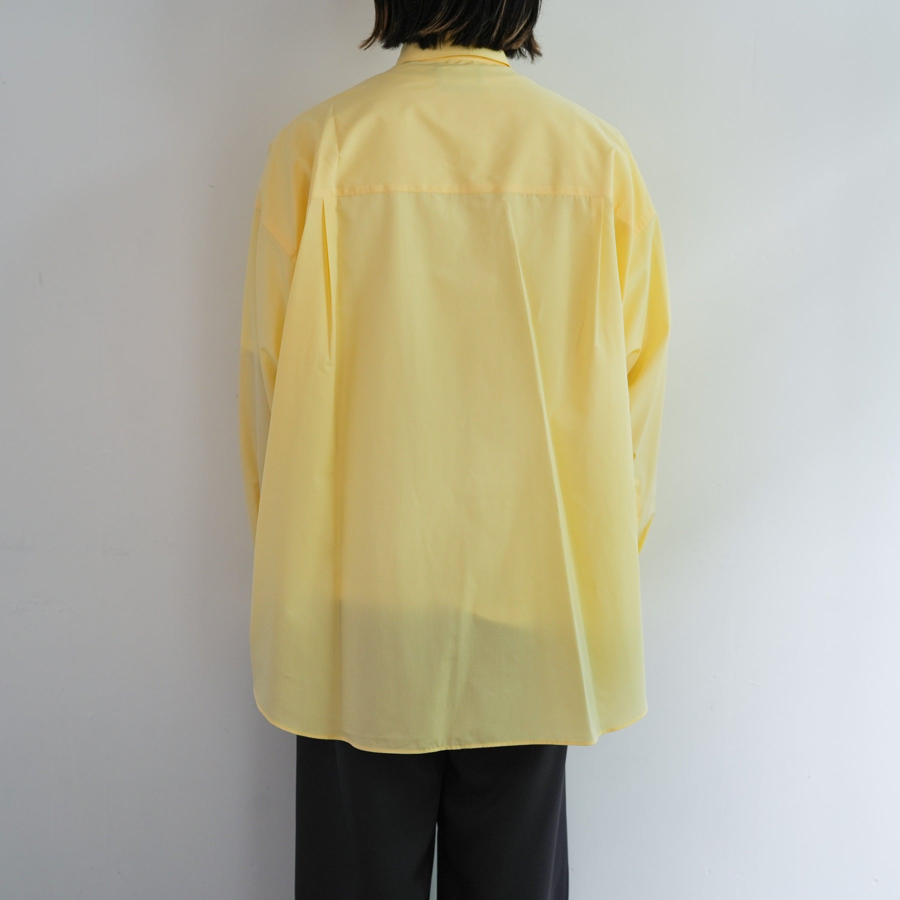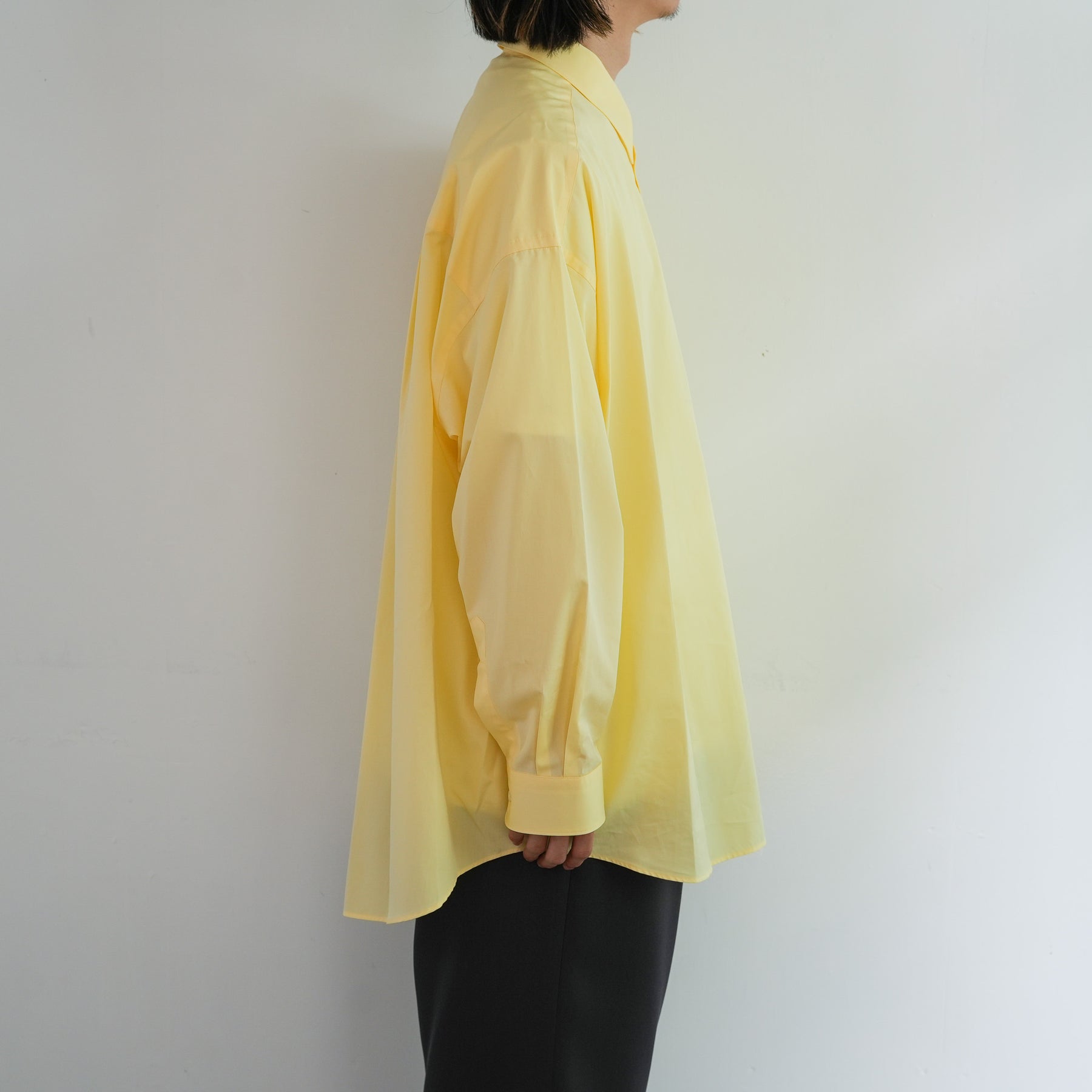 1918年創業、スイスの老舗ファブリックメーカーALUMOとのダブルネームで仕立てた特別なシャツ。世界中のテーラーやメゾンに支持される最高峰の生地は、世界でも0.3%しか到達しない超希少なコットンを使用し、澄んだスイスの軟水で丁寧に仕上げることで、柔らかくもしっかりとしたハリのある極上の風合いに。そのALUMOファブリックを、Graphpaper 定番のオーバーサイズレギュラーカラーシャツに落とし込みました。ドロップショルダーとボリュームのあるボックスシルエットが特徴でオーセンティックな襟型はそのままに、素材が持つしなやかさと程よいハリ感が着用時の心地よさを一段と引き立て日常に自然と馴染む仕上がりに。