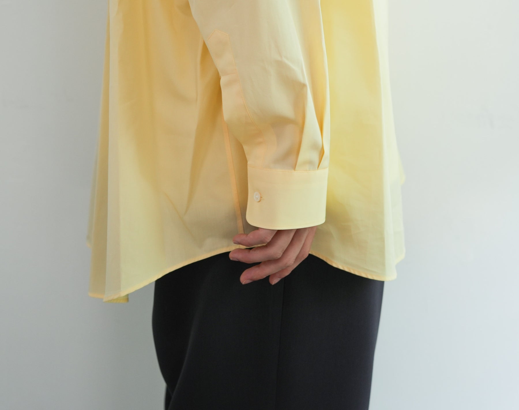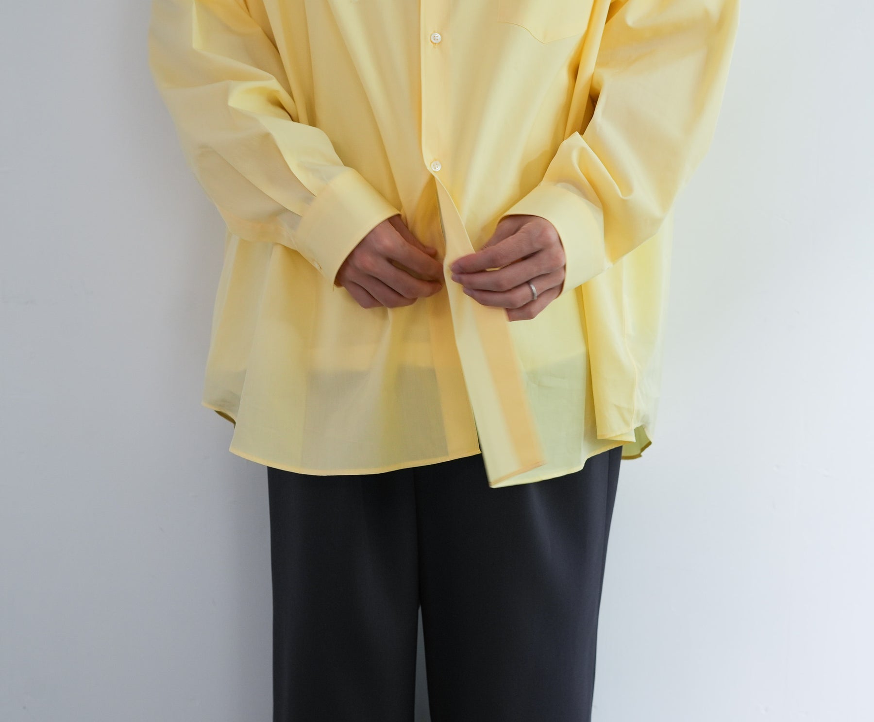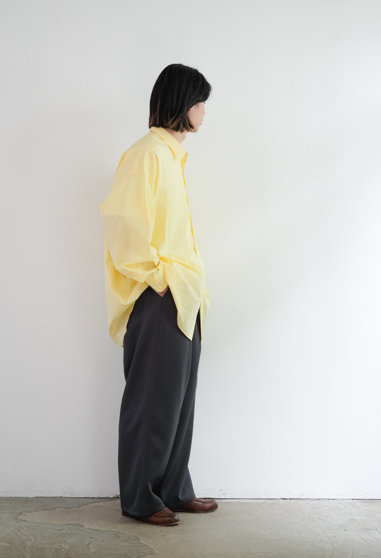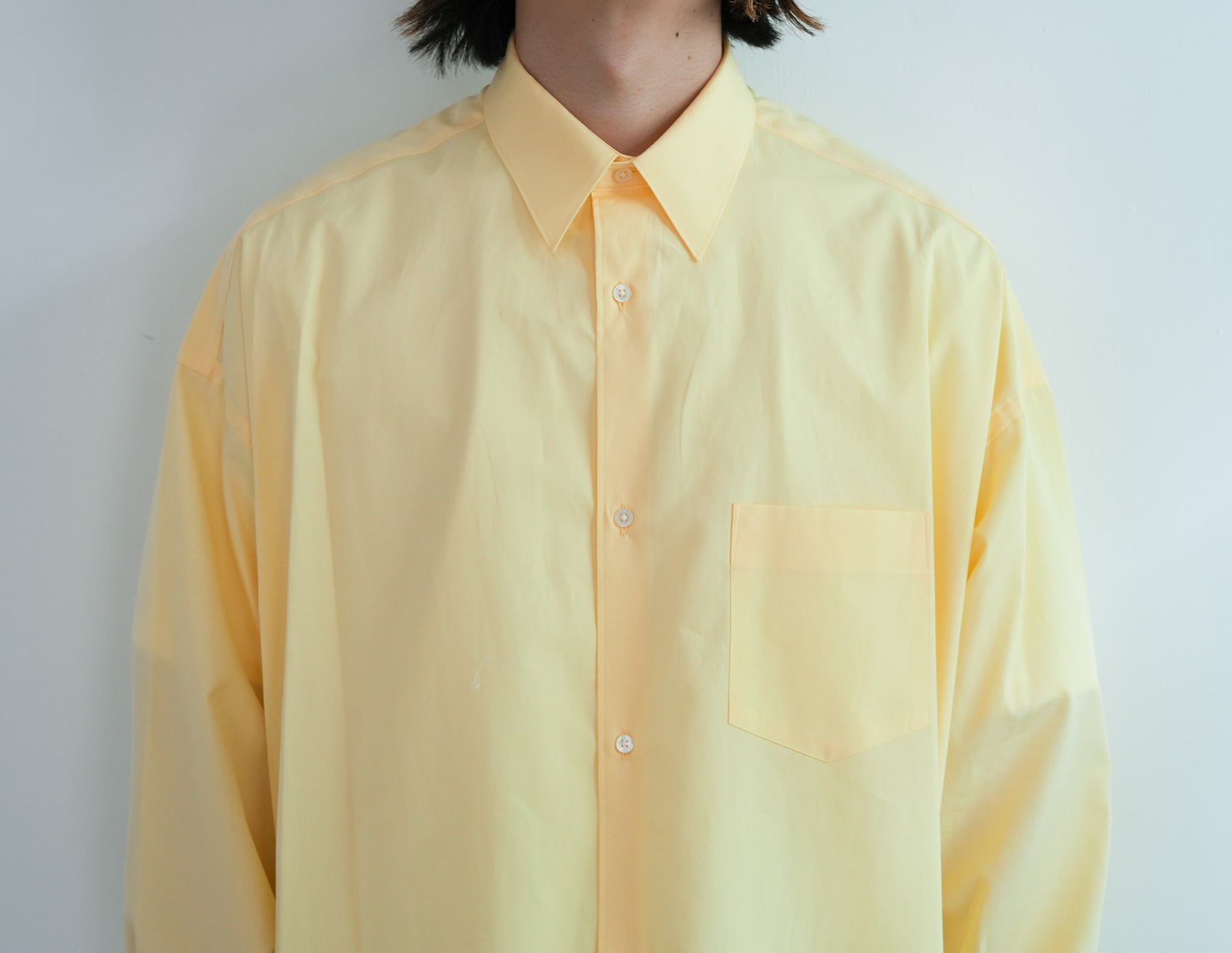 1918年創業、スイスの老舗ファブリックメーカーALUMOとのダブルネームで仕立てた特別なシャツ。世界中のテーラーやメゾンに支持される最高峰の生地は、世界でも0.3%しか到達しない超希少なコットンを使用し、澄んだスイスの軟水で丁寧に仕上げることで、柔らかくもしっかりとしたハリのある極上の風合いに。そのALUMOファブリックを、Graphpaper 定番のオーバーサイズレギュラーカラーシャツに落とし込みました。ドロップショルダーとボリュームのあるボックスシルエットが特徴でオーセンティックな襟型はそのままに、素材が持つしなやかさと程よいハリ感が着用時の心地よさを一段と引き立て日常に自然と馴染む仕上がりに。