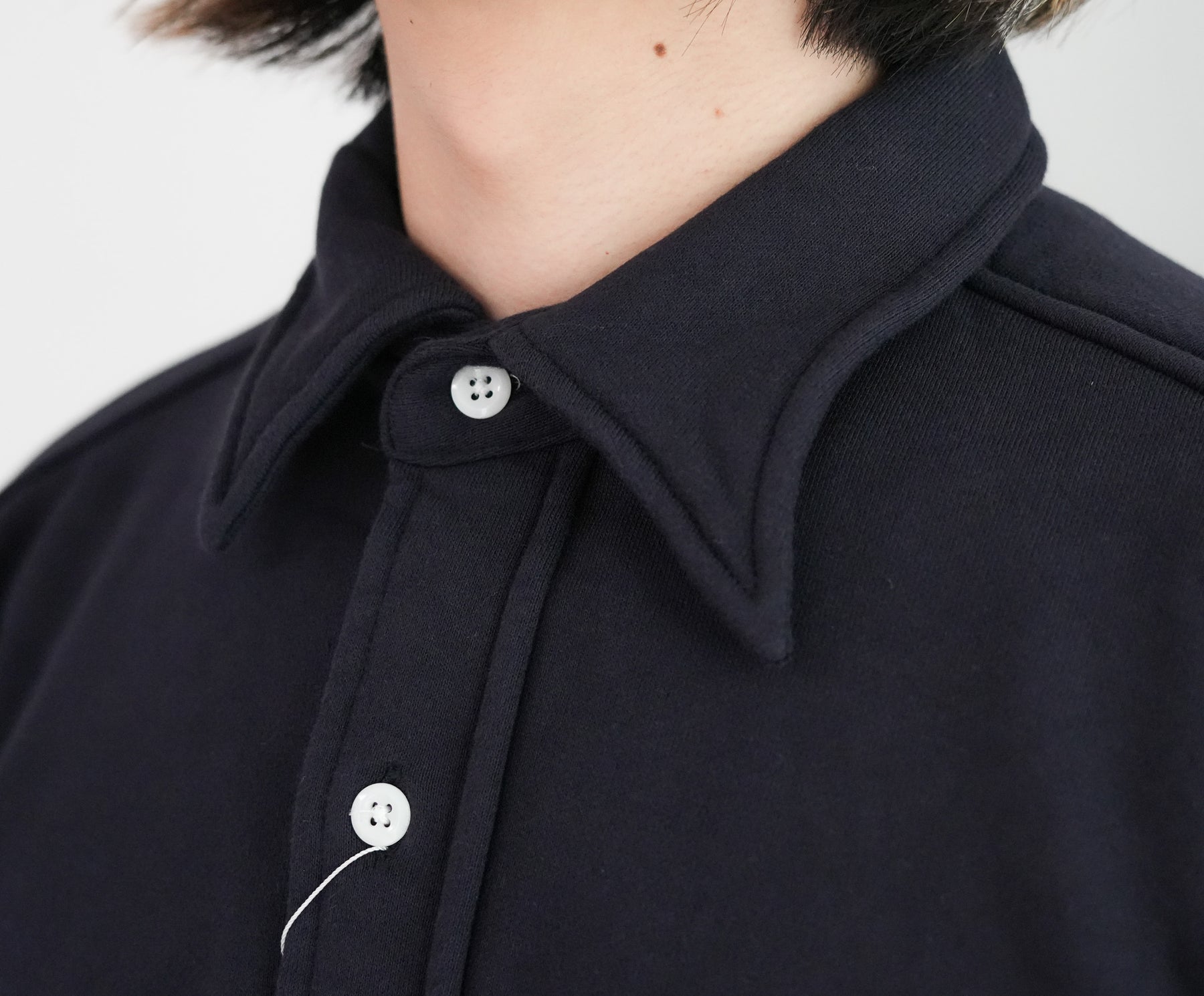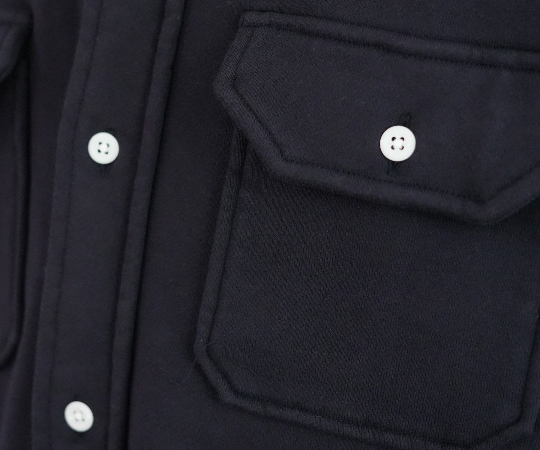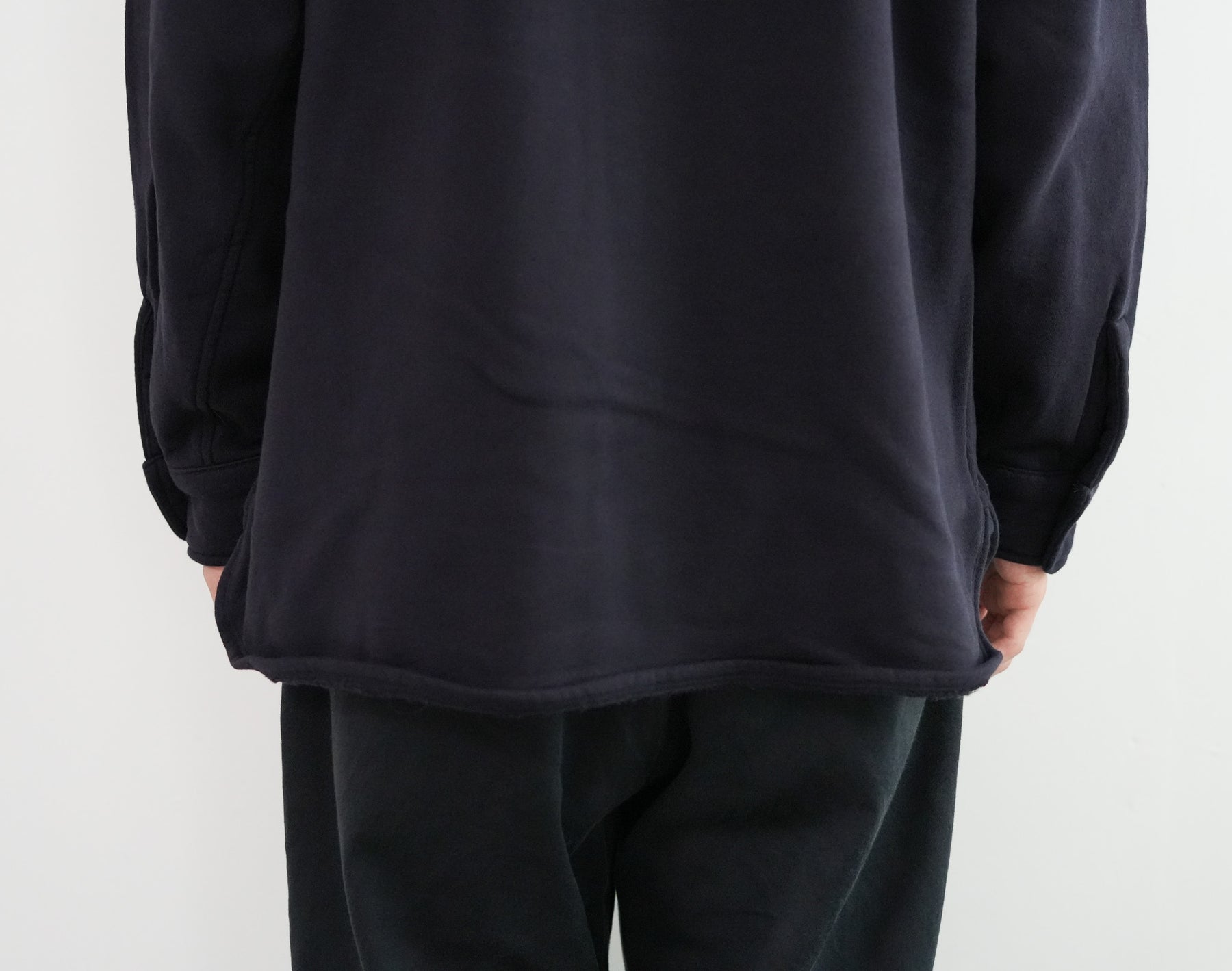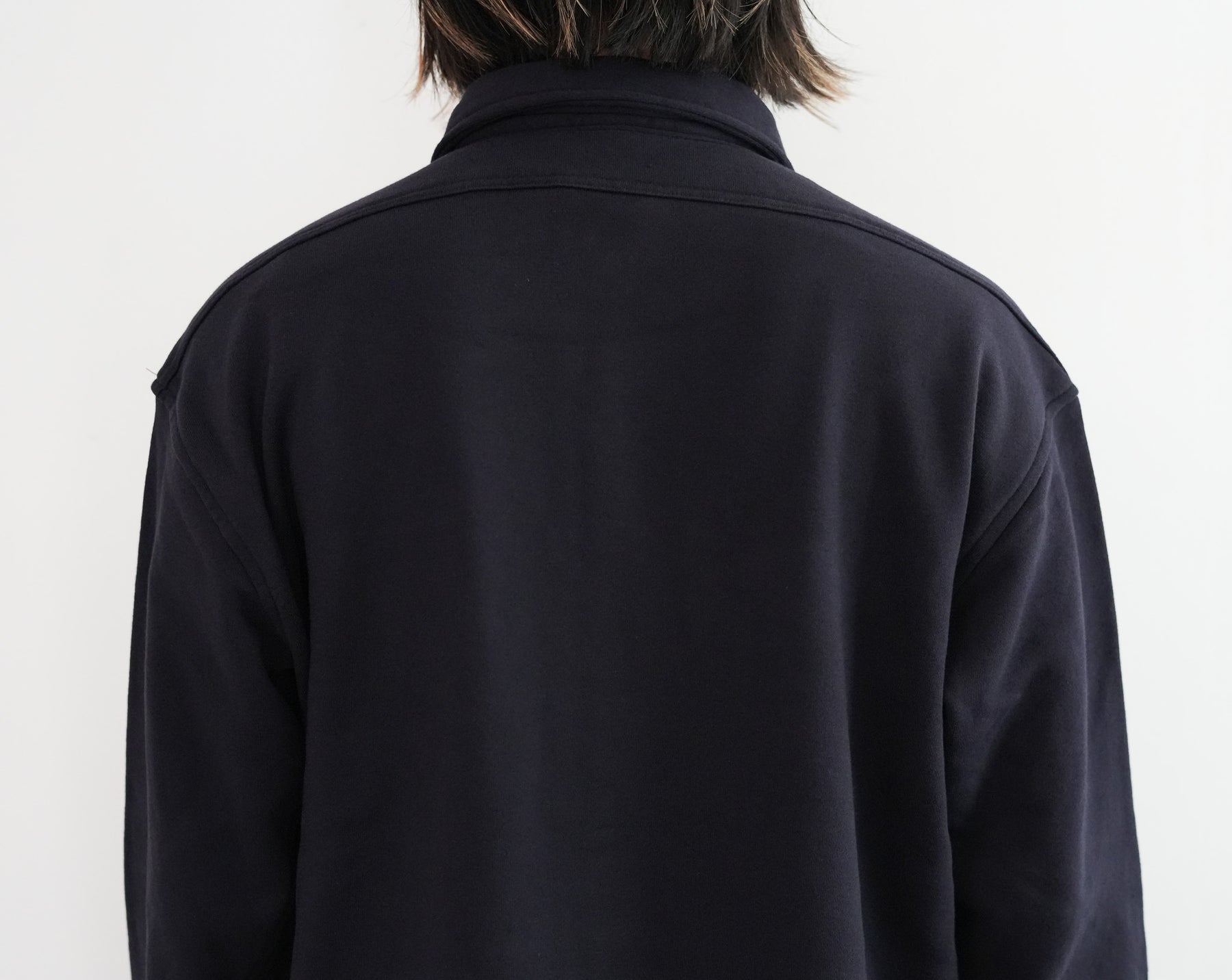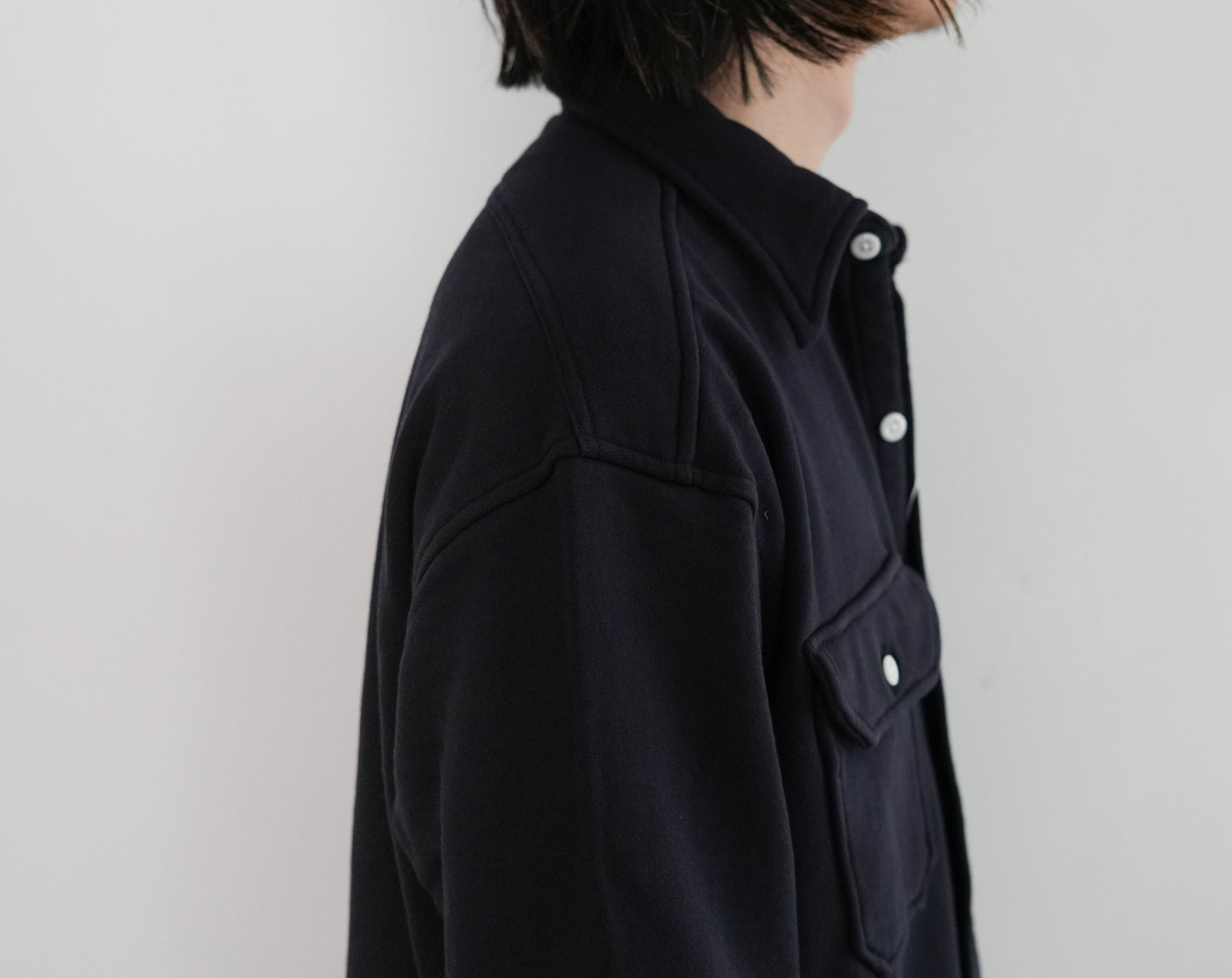 このシャツのリファレンスになったのは、1950年代のチェックのネルシャツ。すごく厚手の生地に、ステッチがグッと食い込み、ふっくらと立体感のある縫製仕様が特徴的でした。その雰囲気をだしたくてアイデアを練った結果、スエット生地でワークシャツをつくろうと思い当たりました。