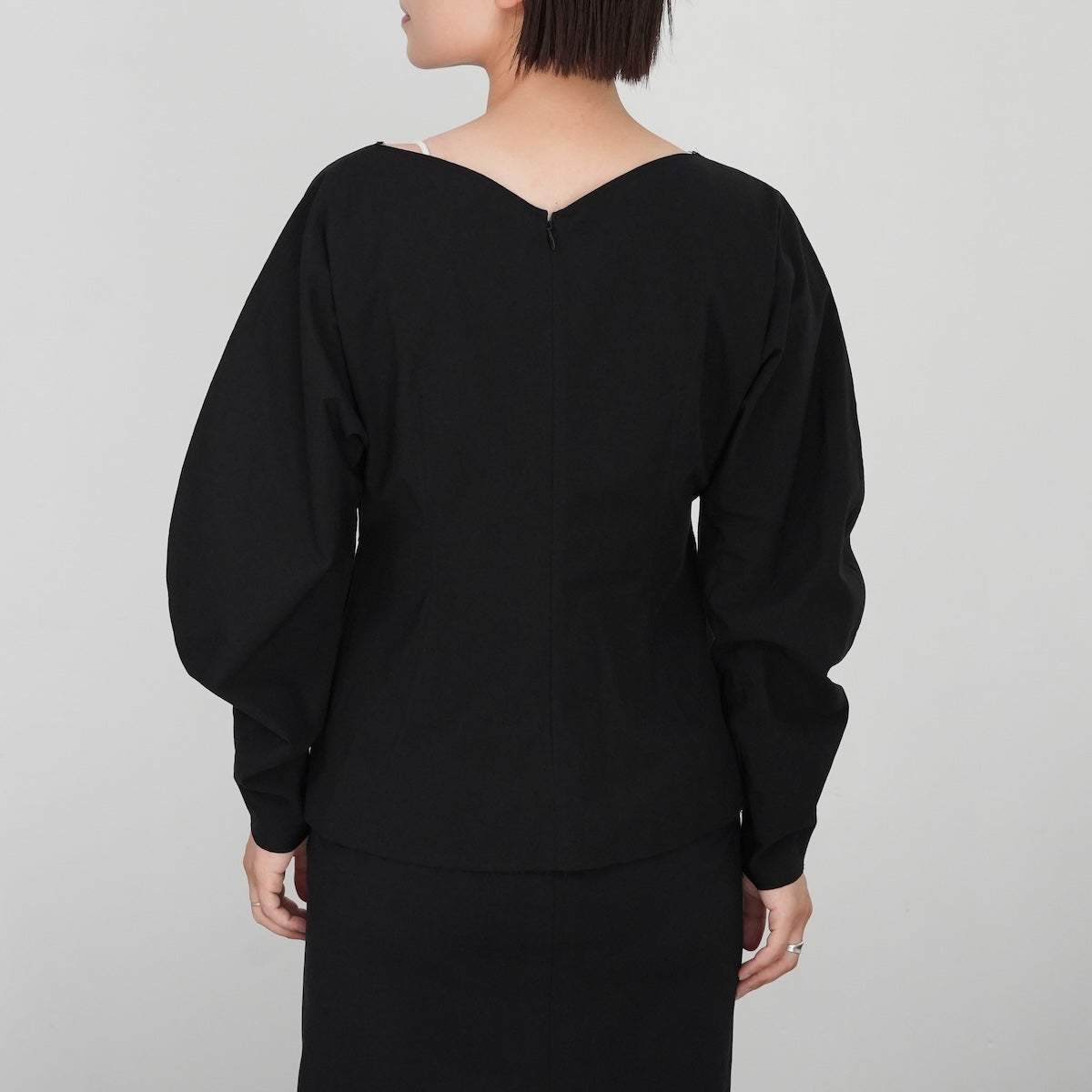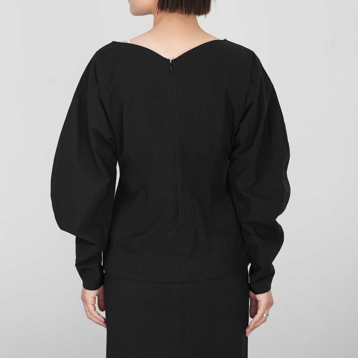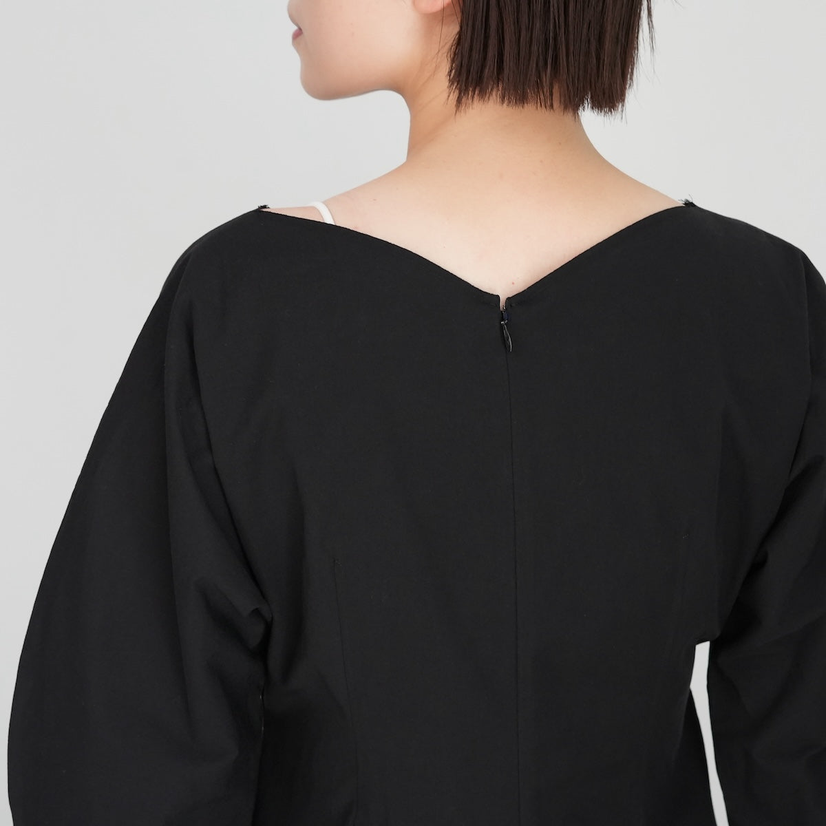 肩周りやアームホールはゆったりと、袖口に向かってキュッと細くなるデザインは