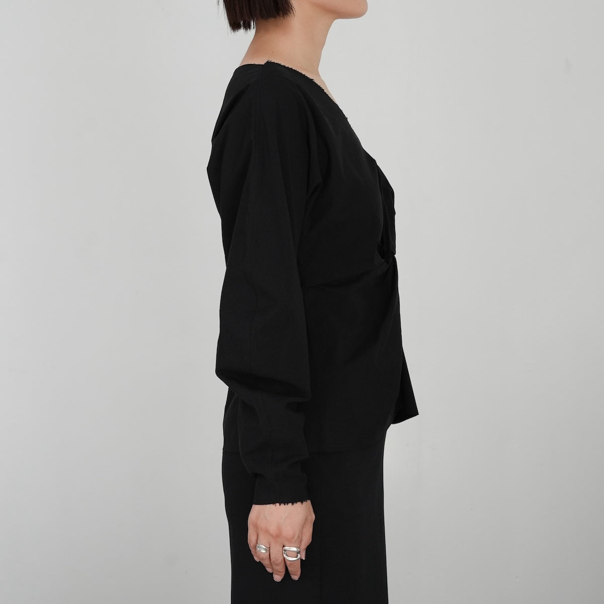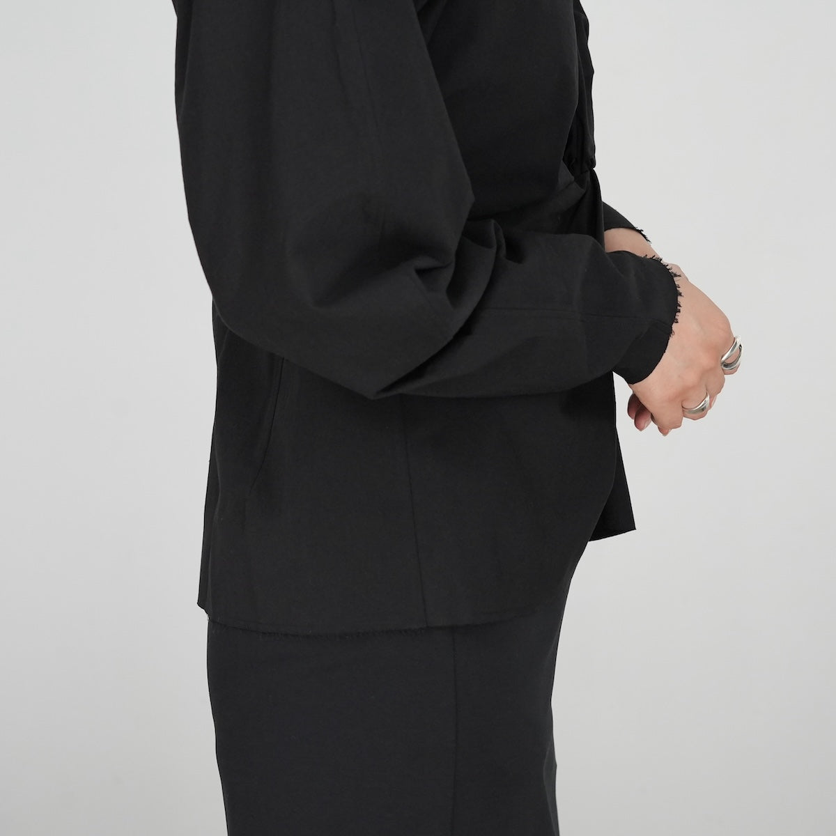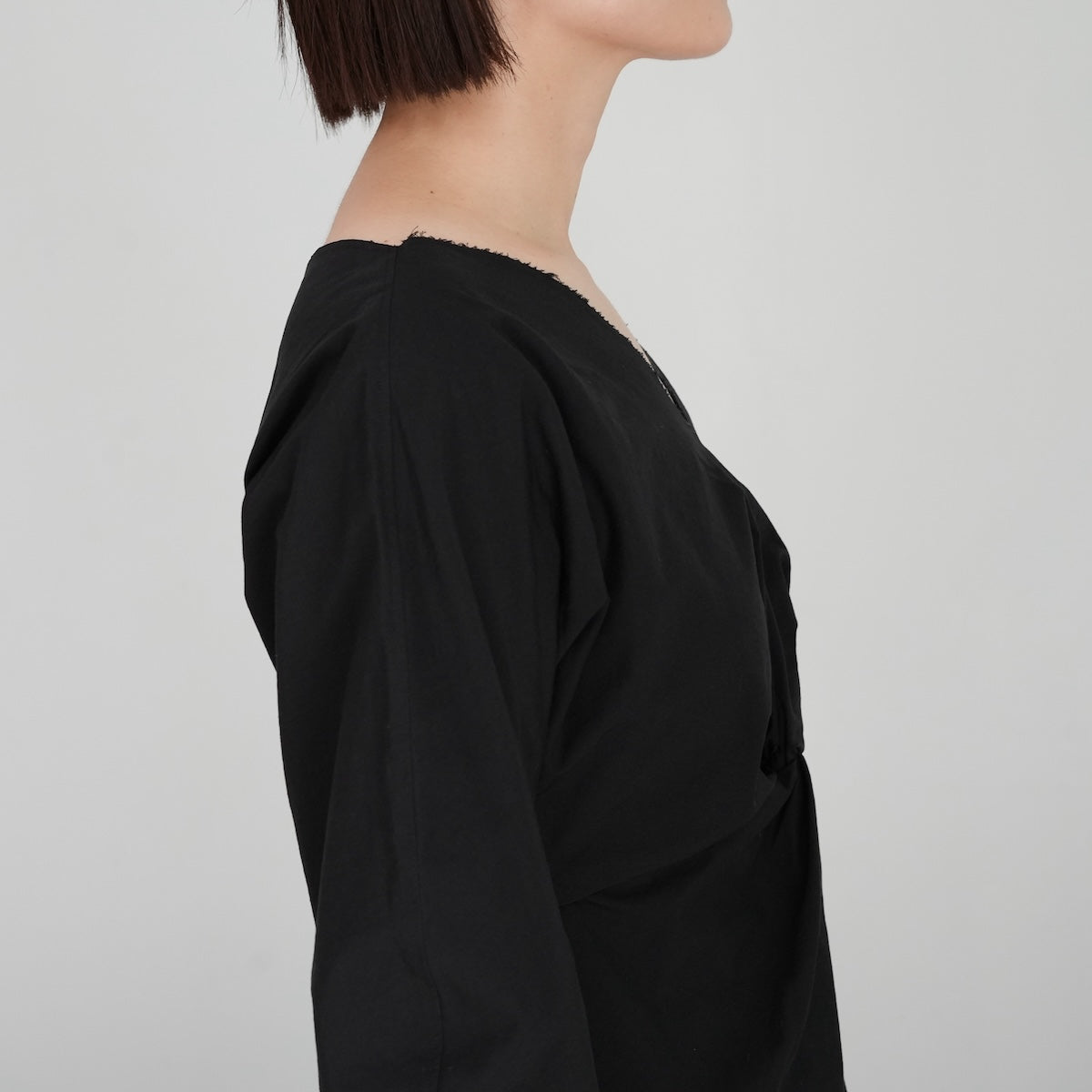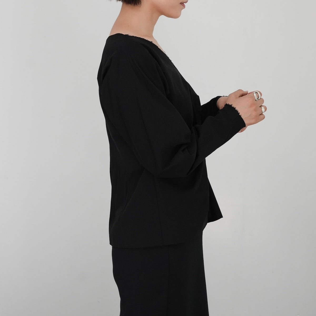 肩周りやアームホールはゆったりと、袖口に向かってキュッと細くなるデザインは