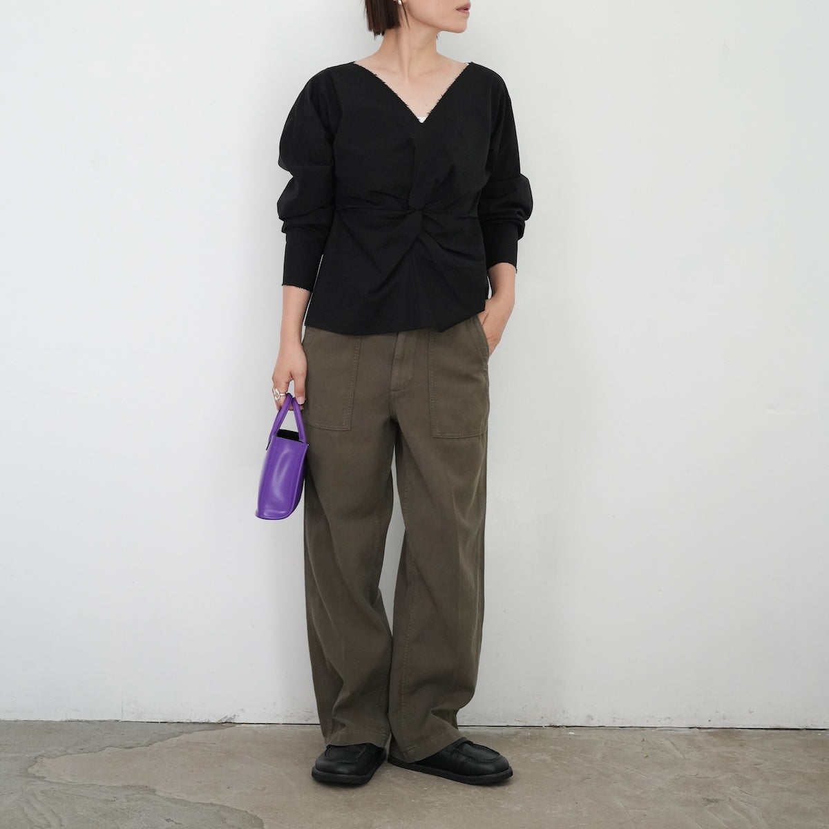 素材は、特殊な加工によって綿本来の質感を残しつつ、張り感のあるヴィンテージのようなこなれた風合いが特徴です。