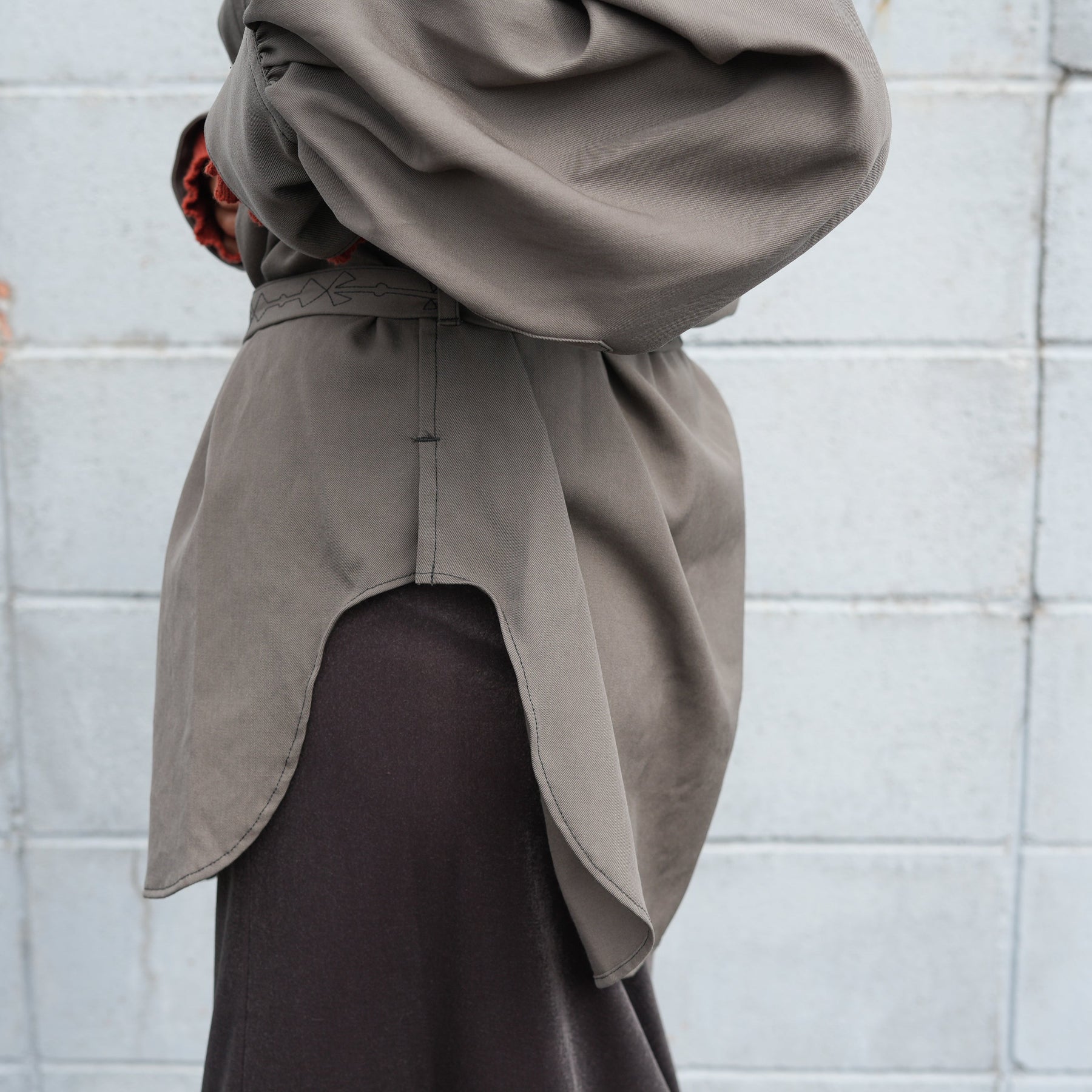 共布のベルトが付属しており、様々な着方を楽しむことができるのは