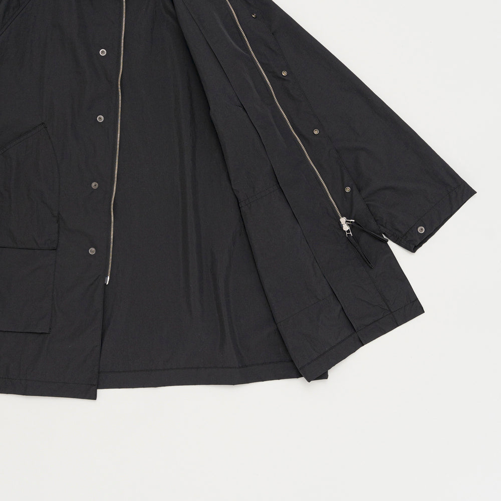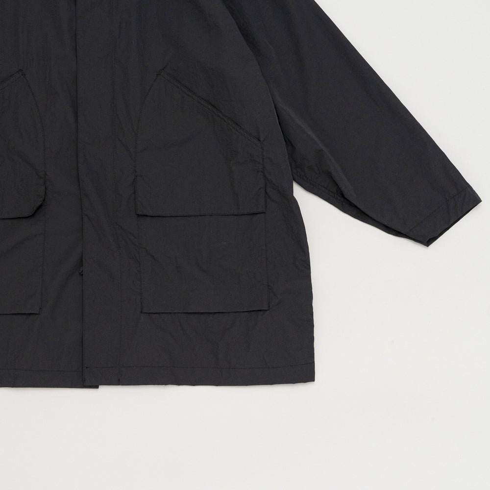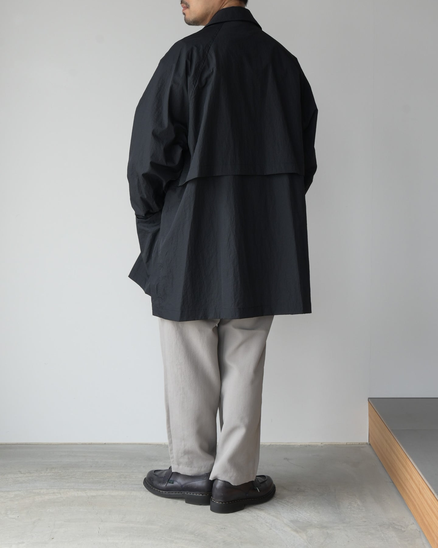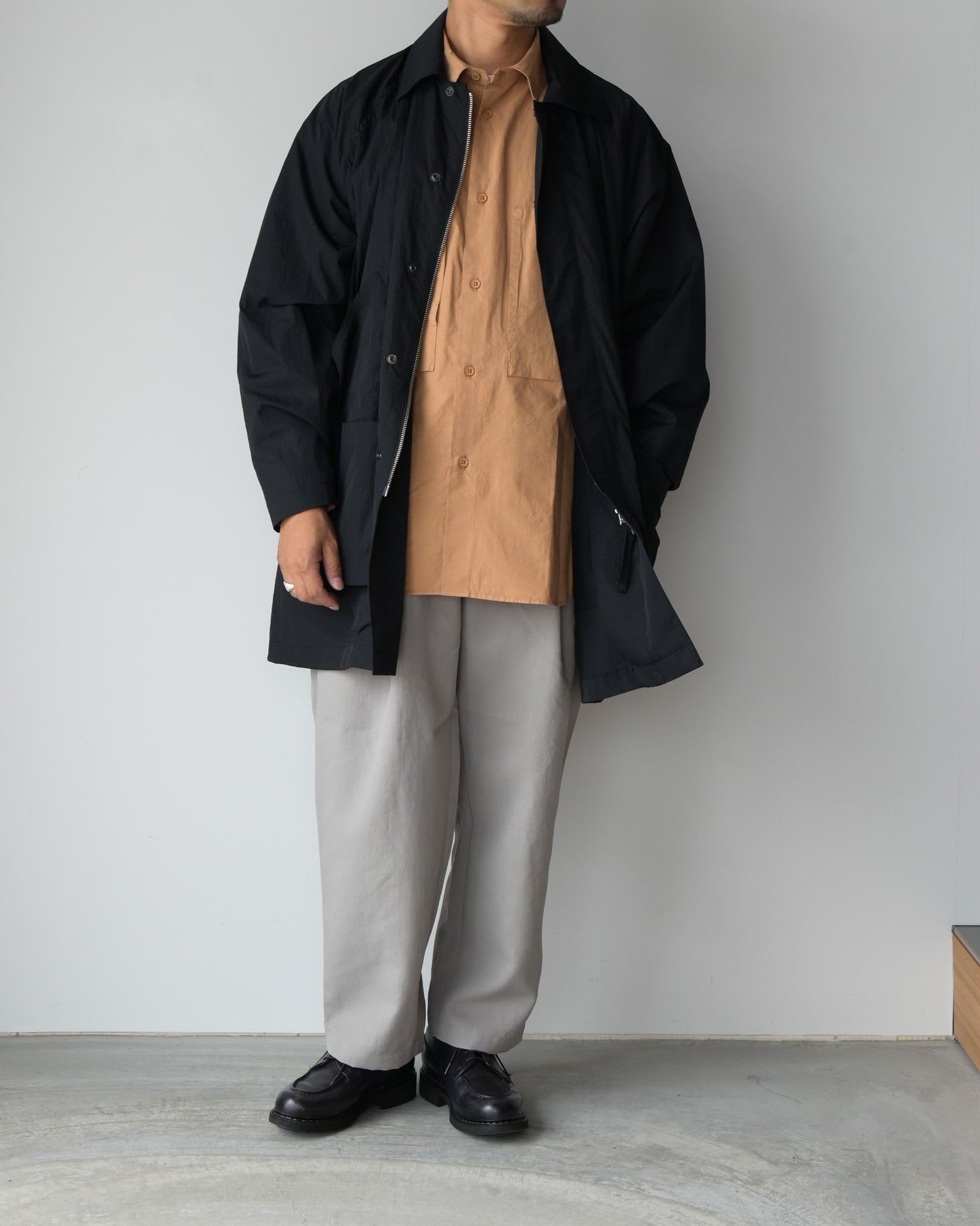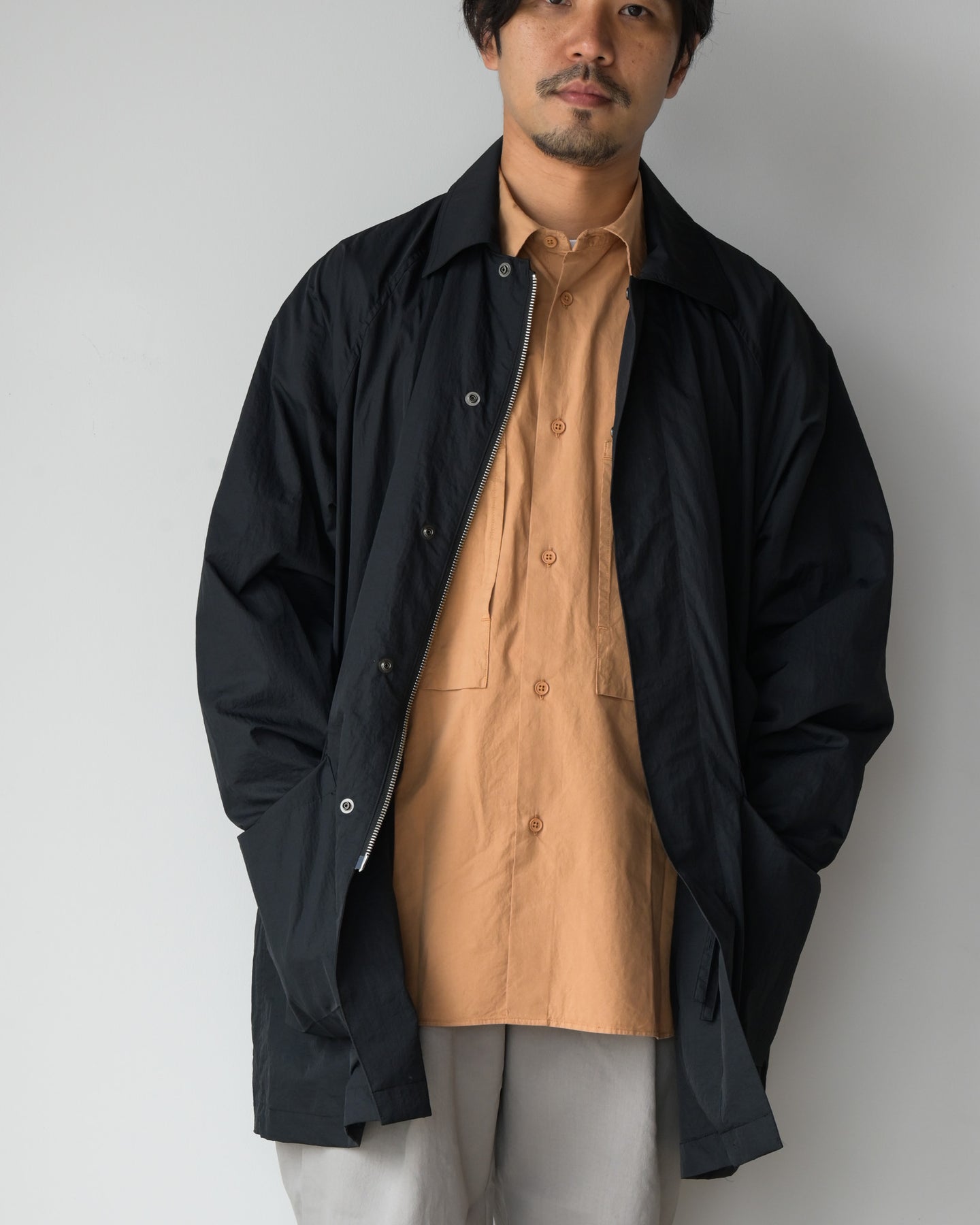 クリスピーなタッチとワッシャー感が特徴のナイロンを使用し一重のコートを作成しました。