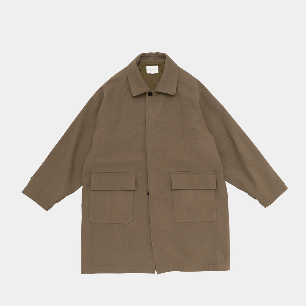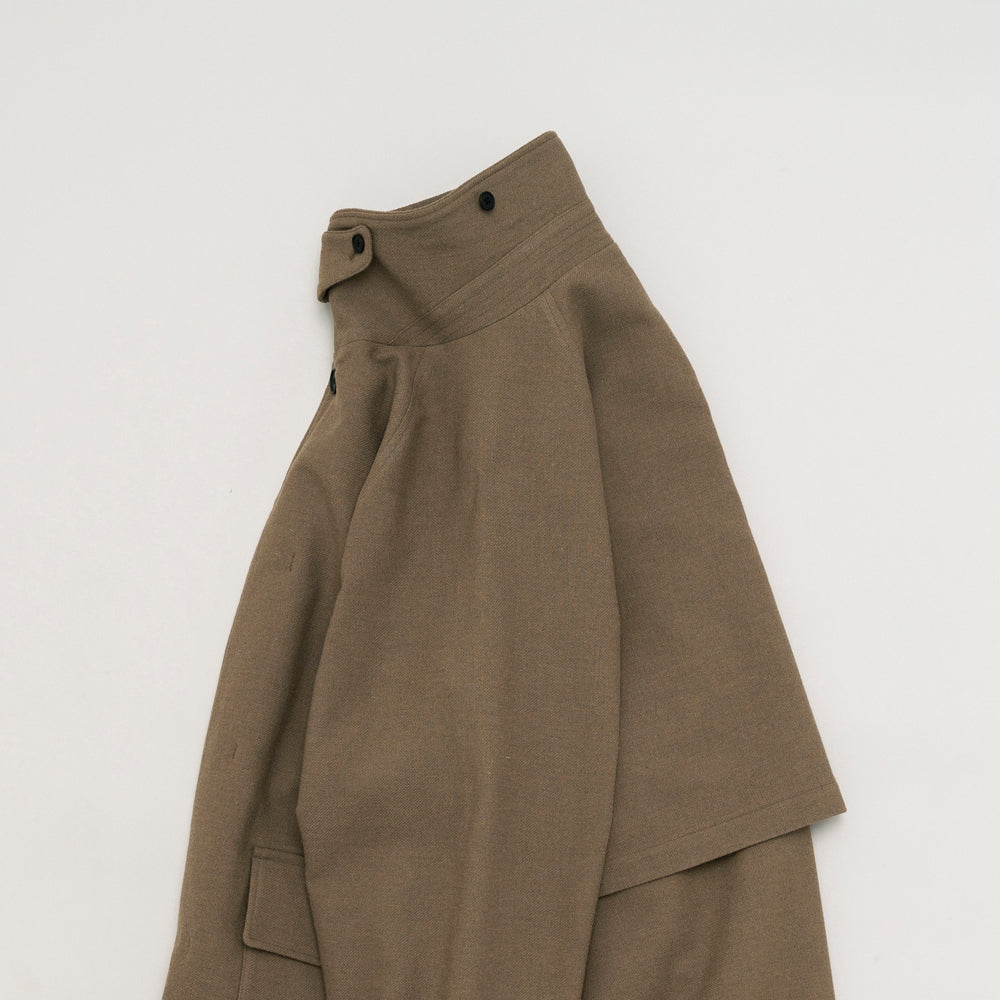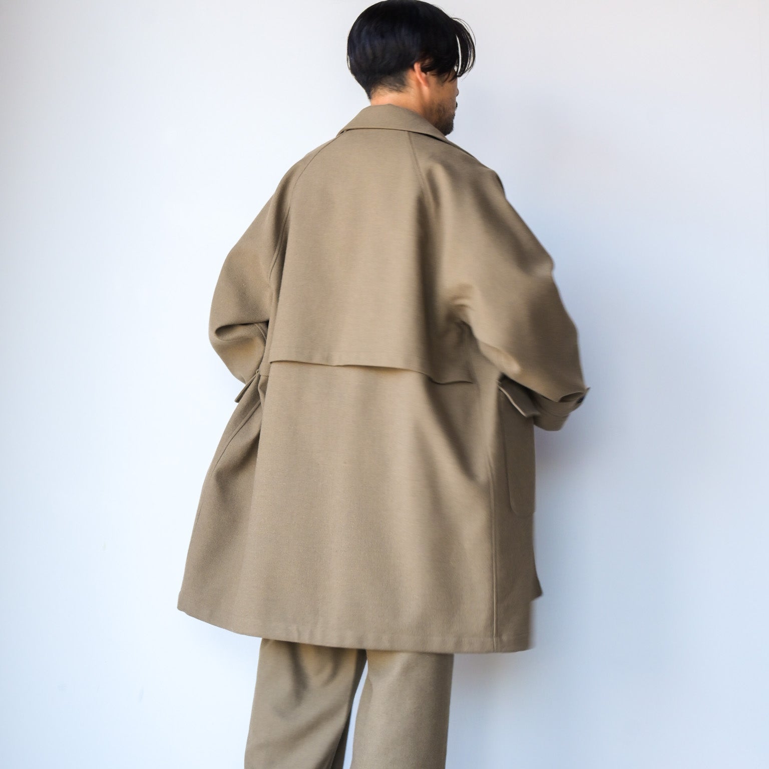 コートの生地はドライな風合いが特徴です。