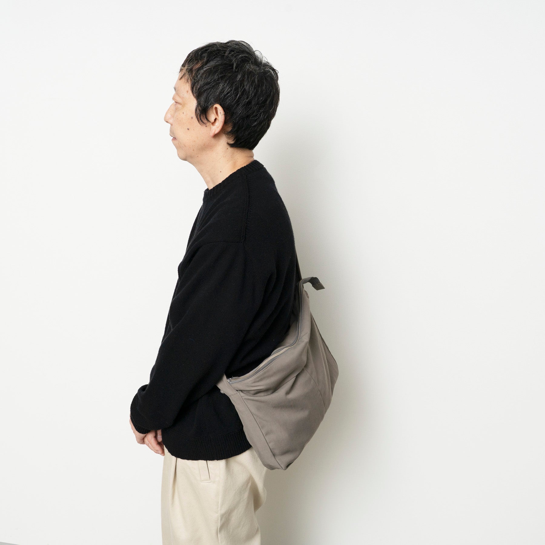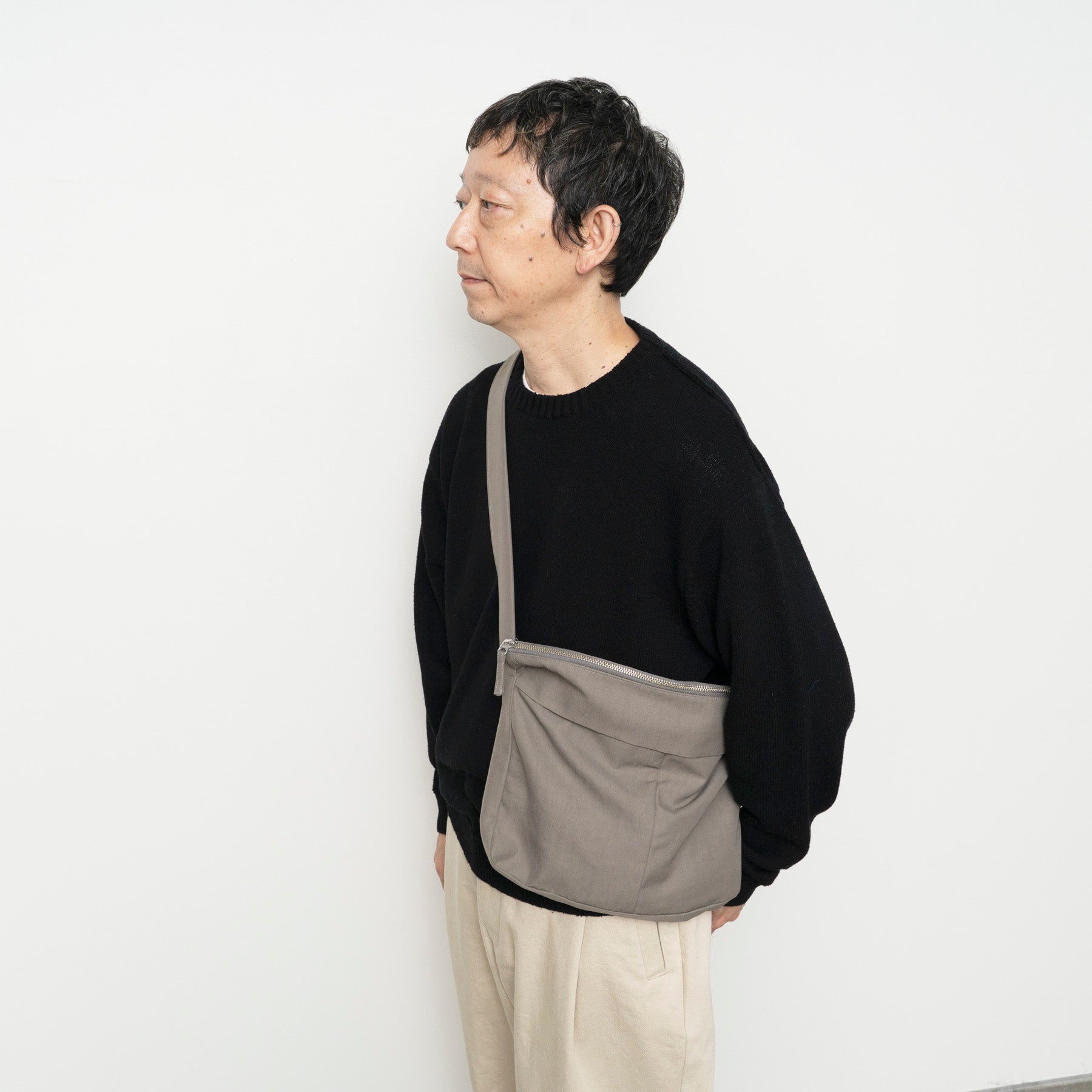 旅に行くときに持ちたくなる。そんなイメージでデザインしました。ハリがあって、撥水素材でジップ付き。