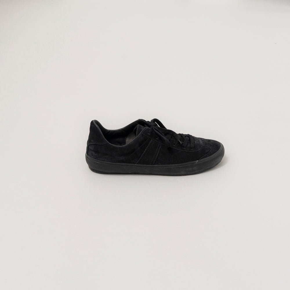 ジャーマントレーナーをベースに定番のガムソールではなく、アッパーと同色のゴム製ソールをヴァルカナイズ製法で装着しています。