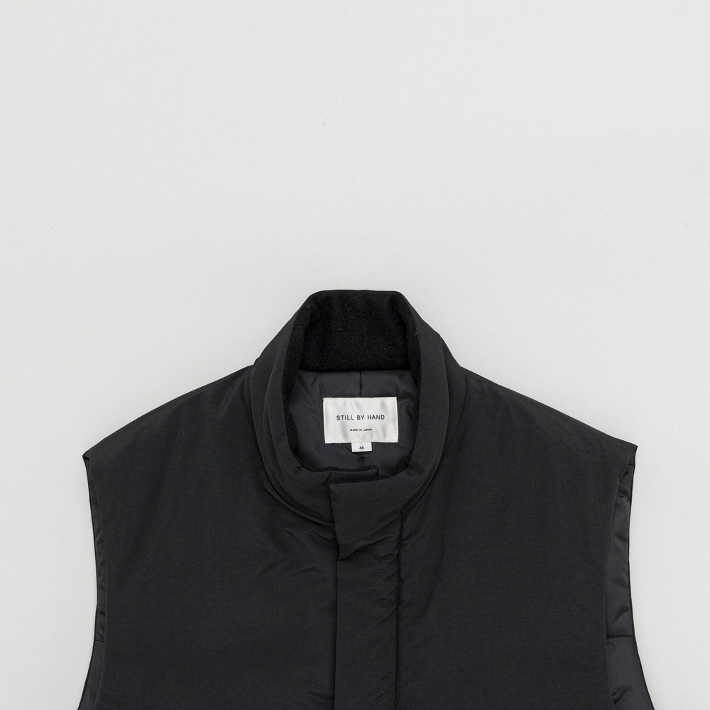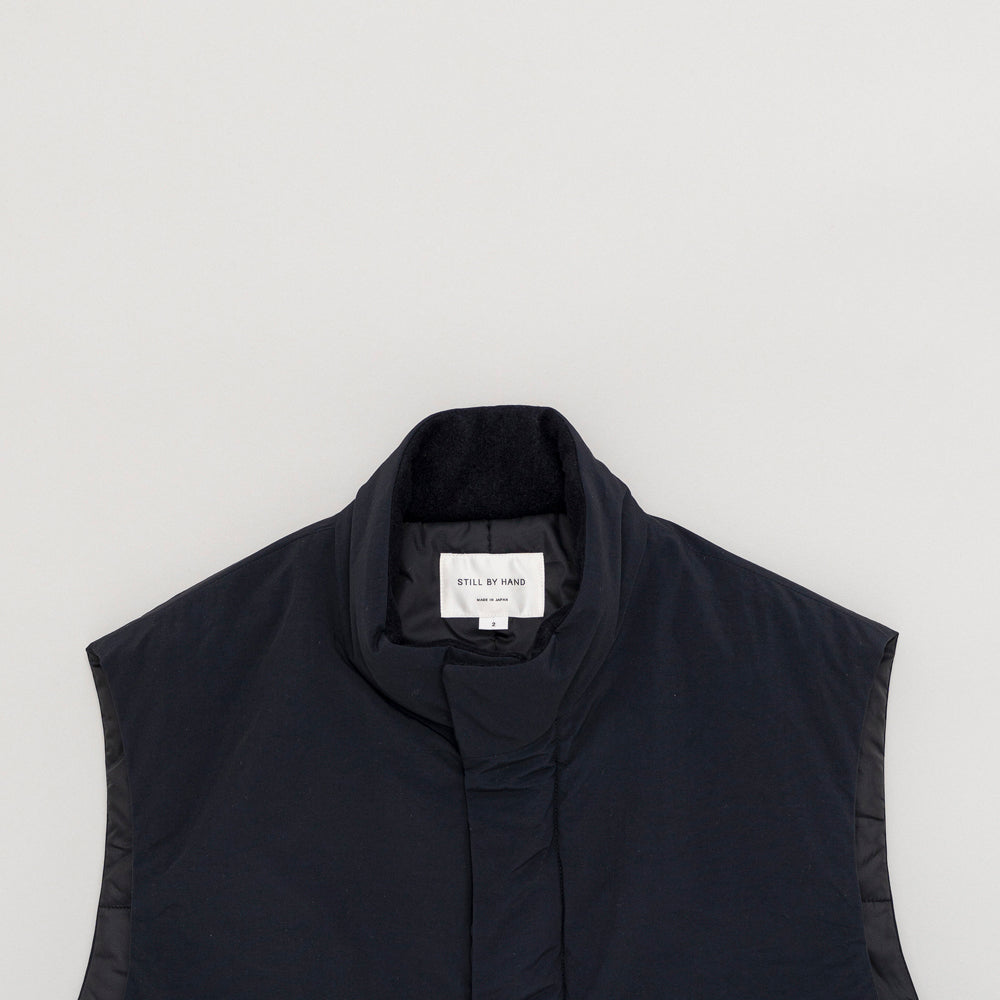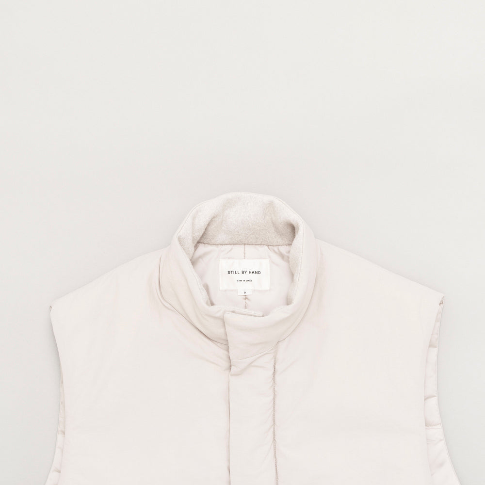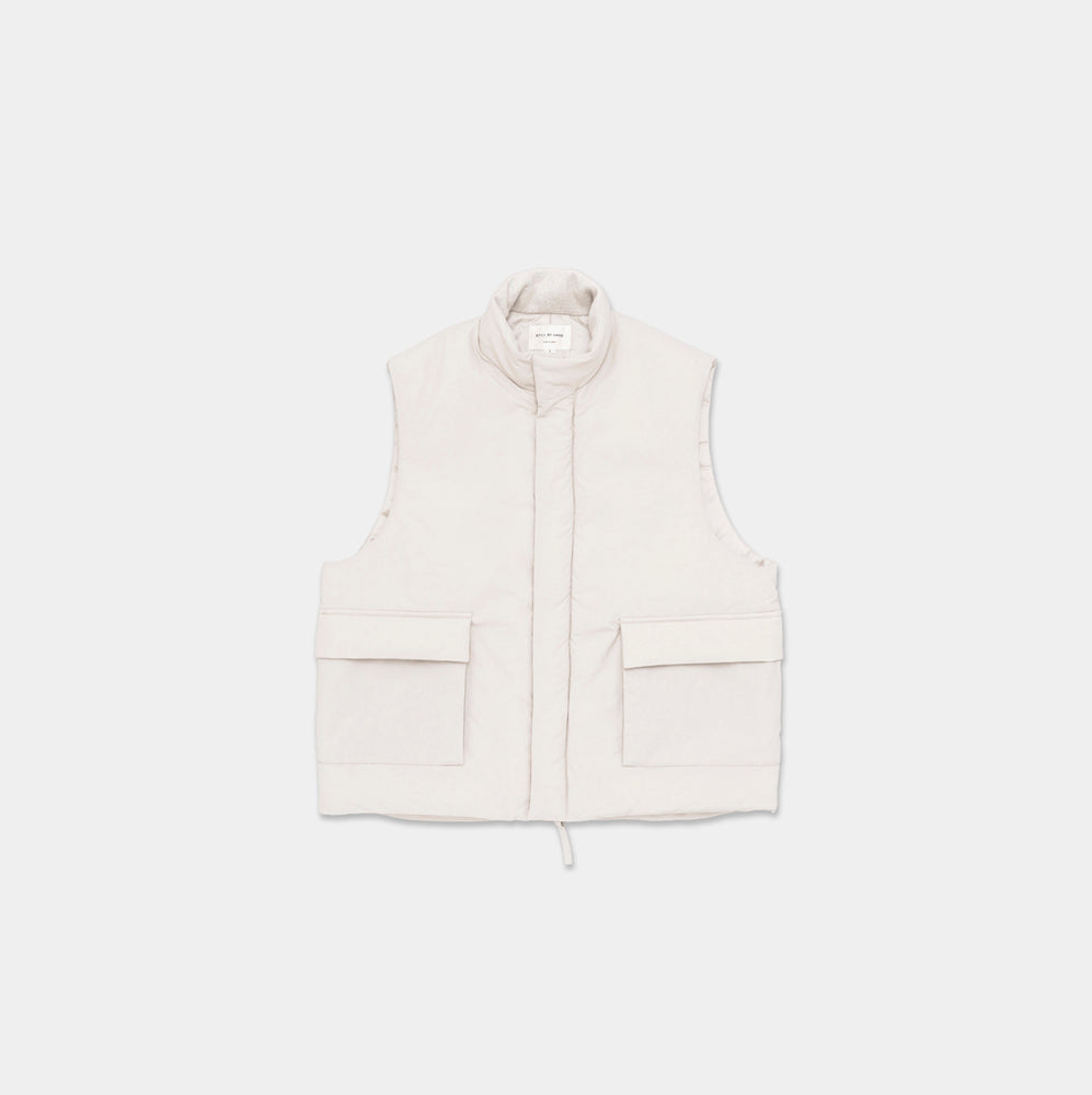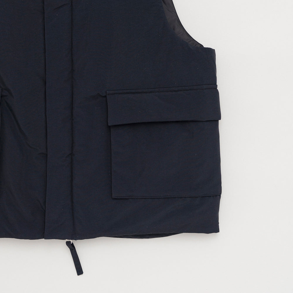 表地は表情のあるナイロン素材を採用し、スポーツ感を抑えた機能性中綿入りのアウターベスト。