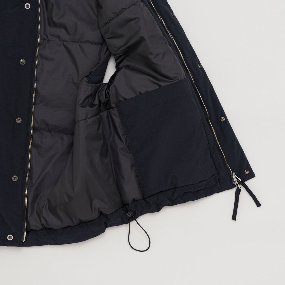 | 素材 | 表地:Nylon 100% 裏地:Polyester 100% 中綿:Polyester 100% 別布:Wool 65% Nylon 35% |