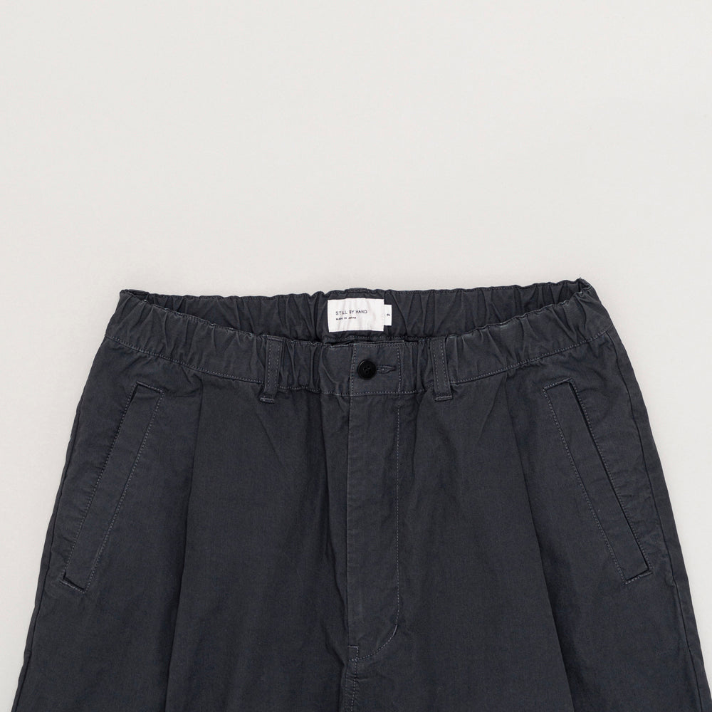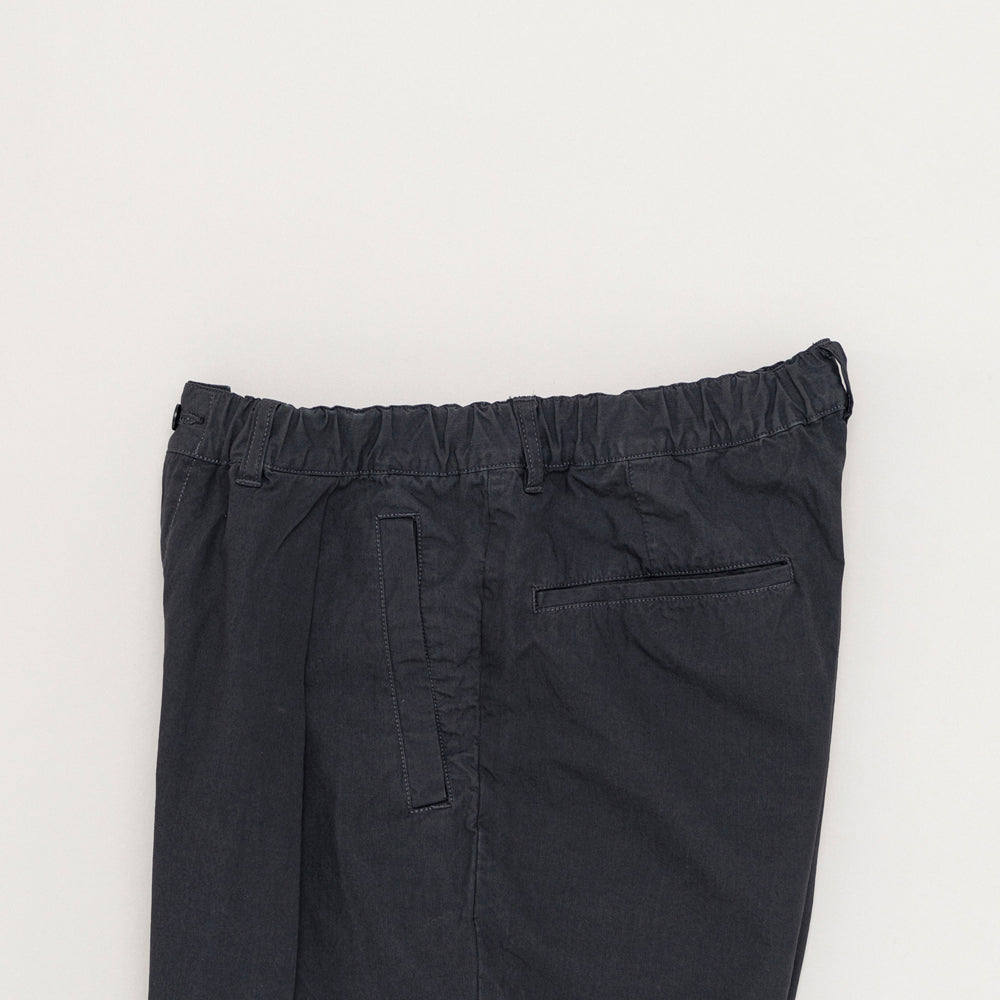 製品染ならではの色合いとタックに合わせた玉縁ポケットが特徴です。