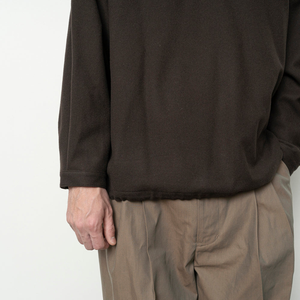 ラムウールを原料に使用しており軽く、柔らかい素材感が特徴のプルオーバーシャツ。