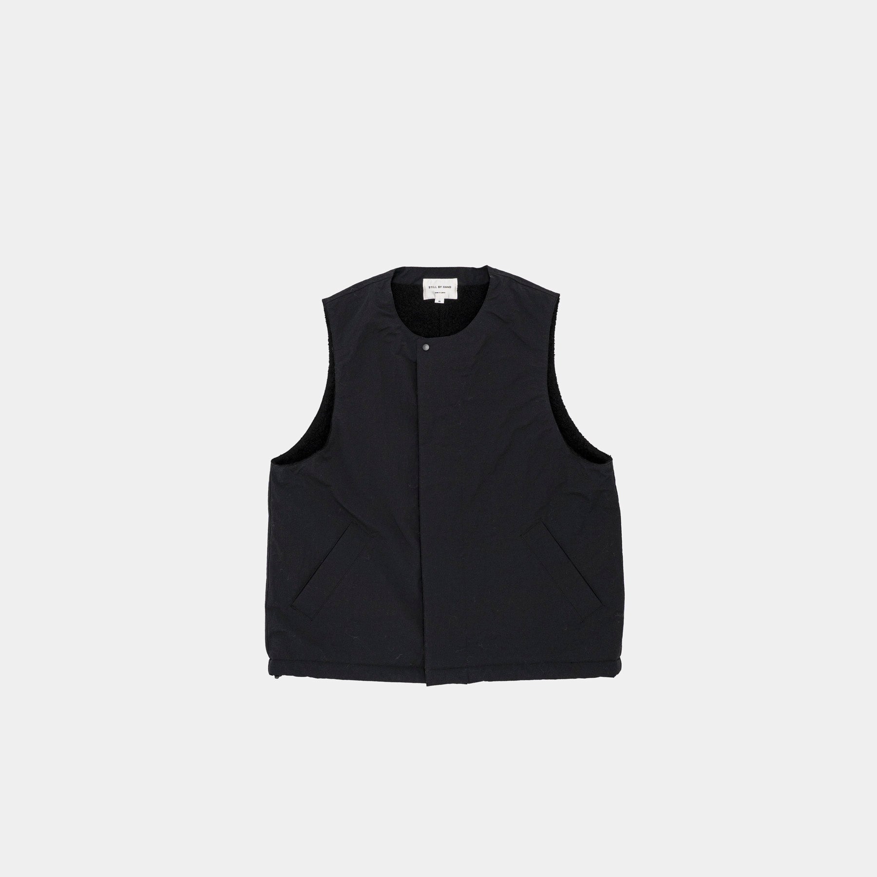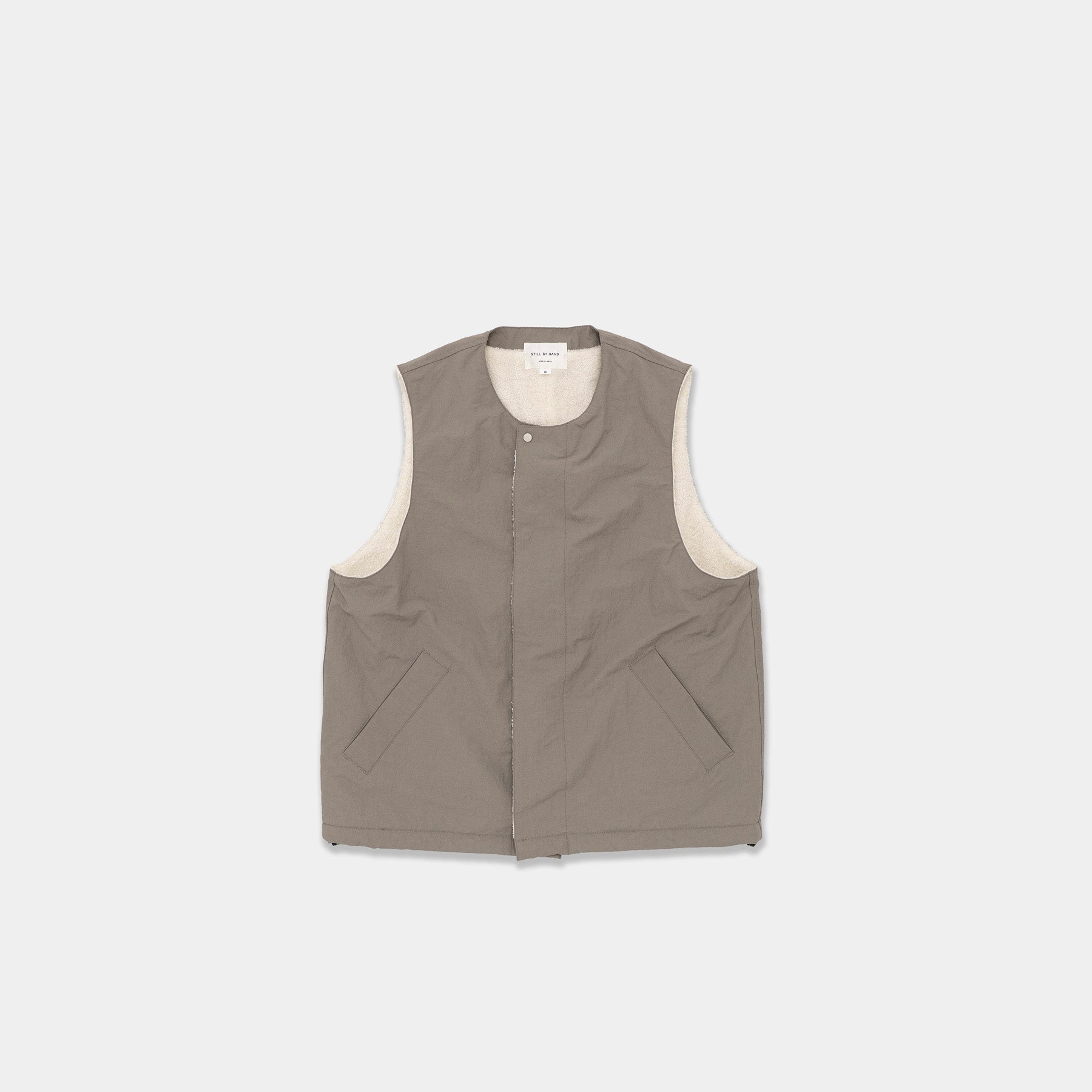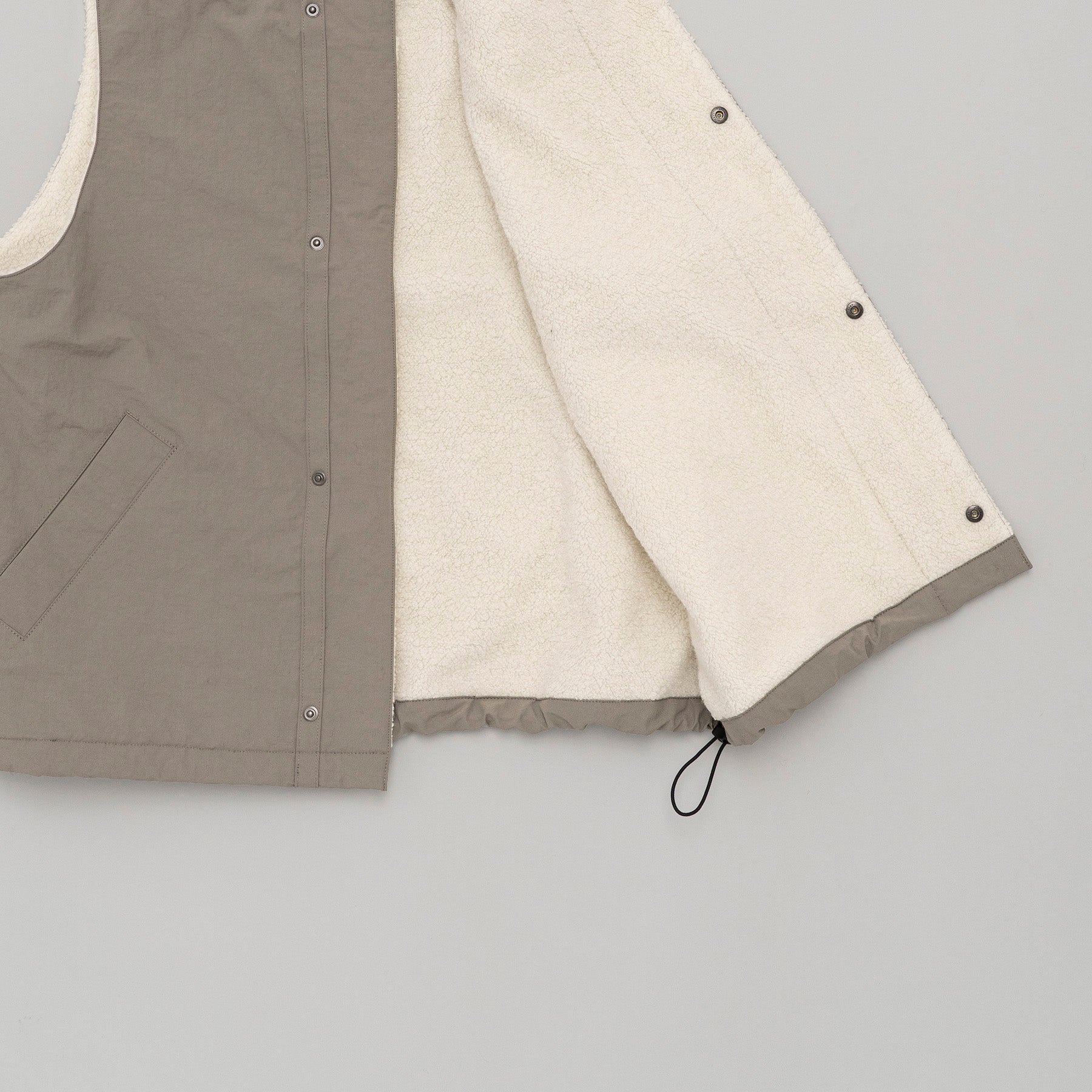 表地に撥水性のあるナイロン素材を使用したボアベスト。