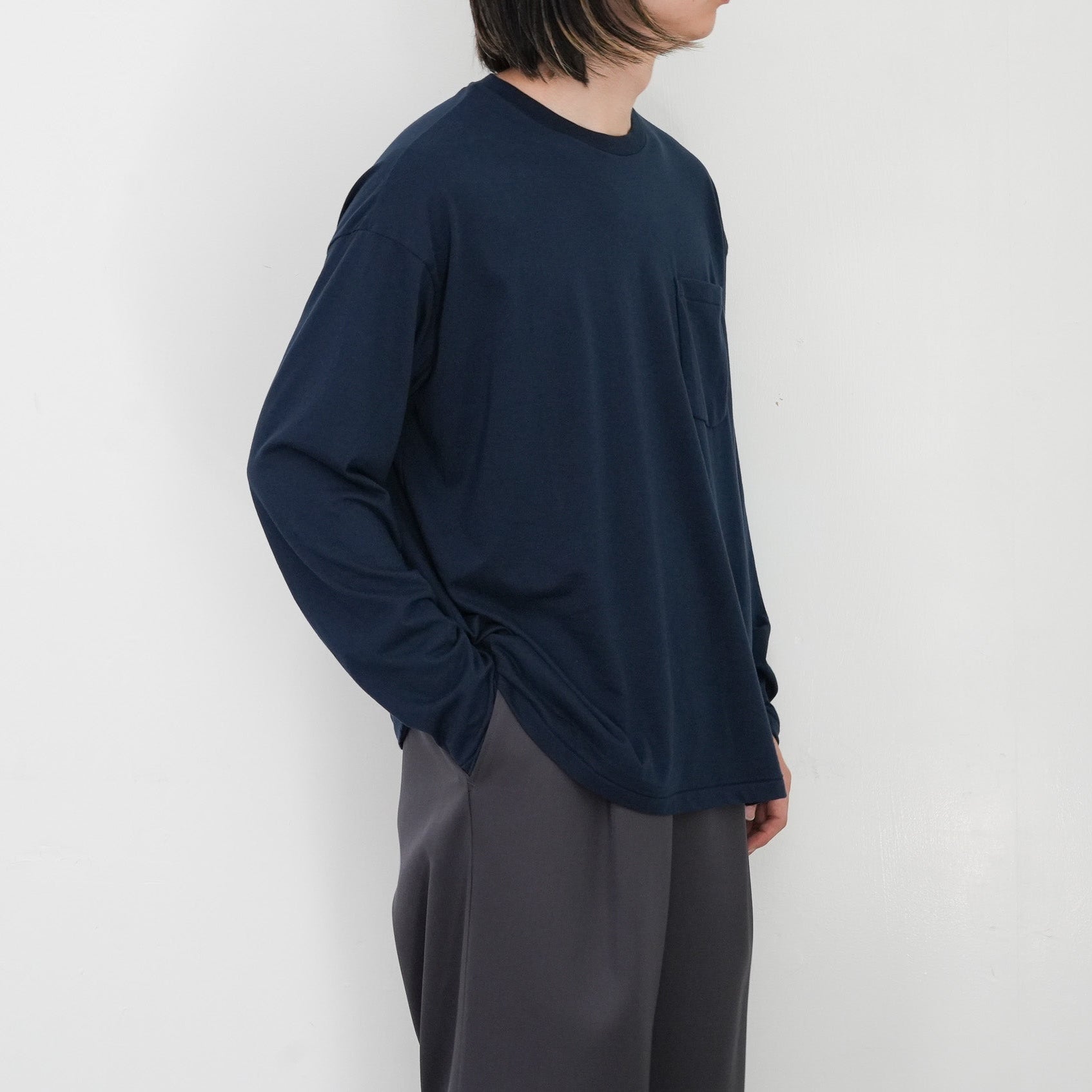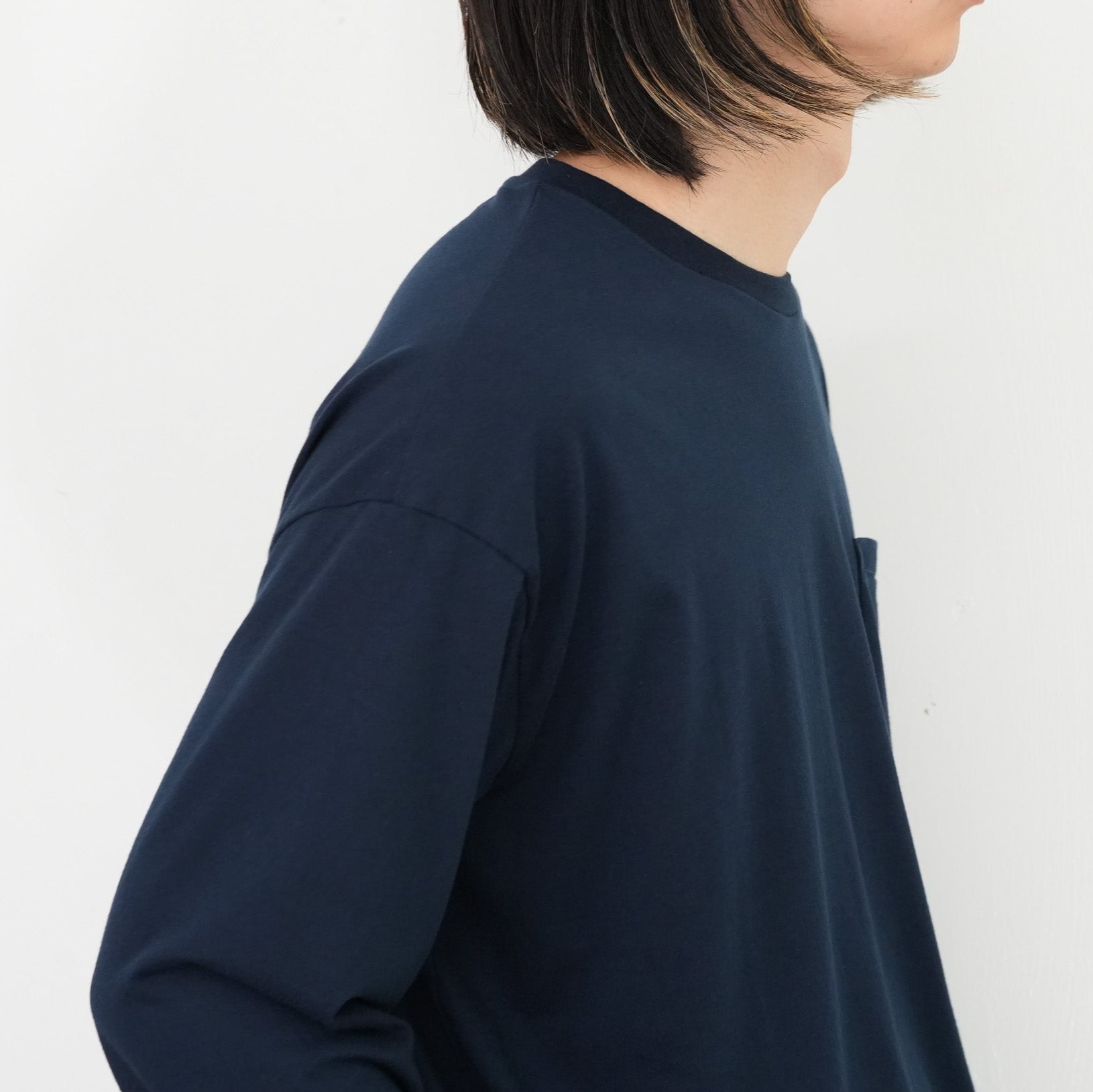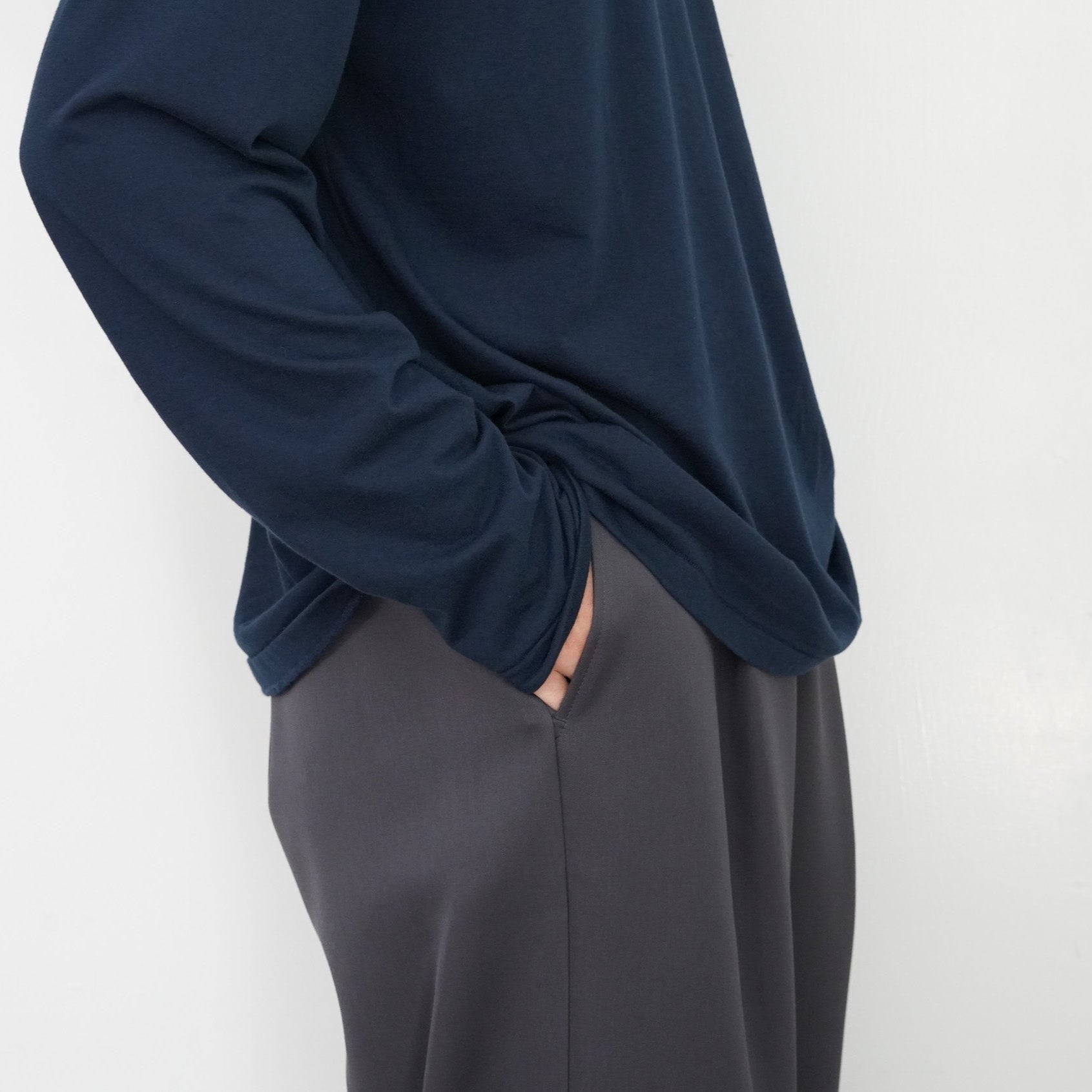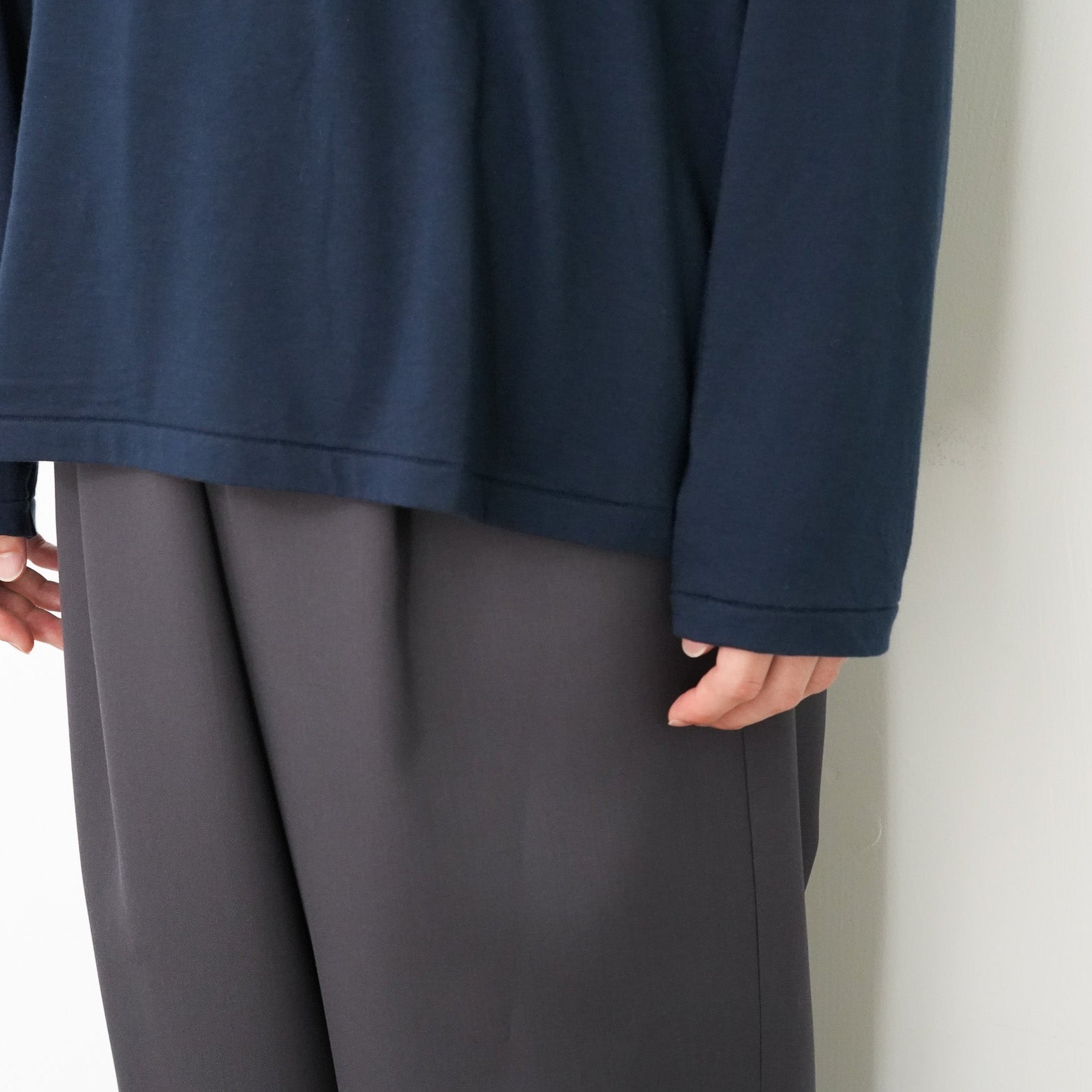 インナーとしても大活躍で、ニットと合わせたときに少しだけ見える首の詰まり具合もちょうどいい。さらには肌触りもよく、着ていて本当に気持ちがよかった。そんなアイテムを長袖にアレンジして、秋冬でも着られる1着にしました。