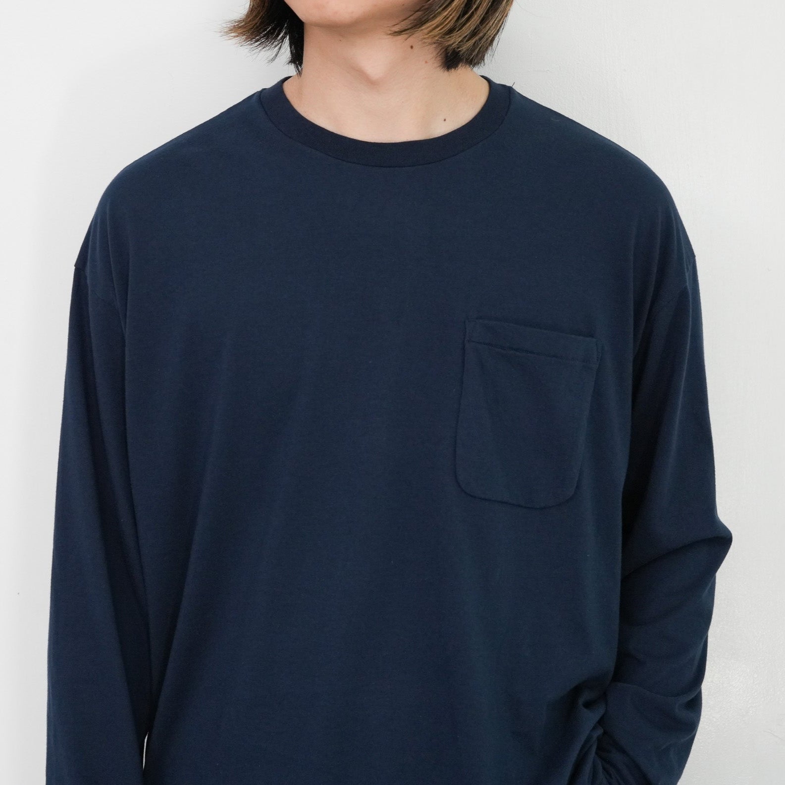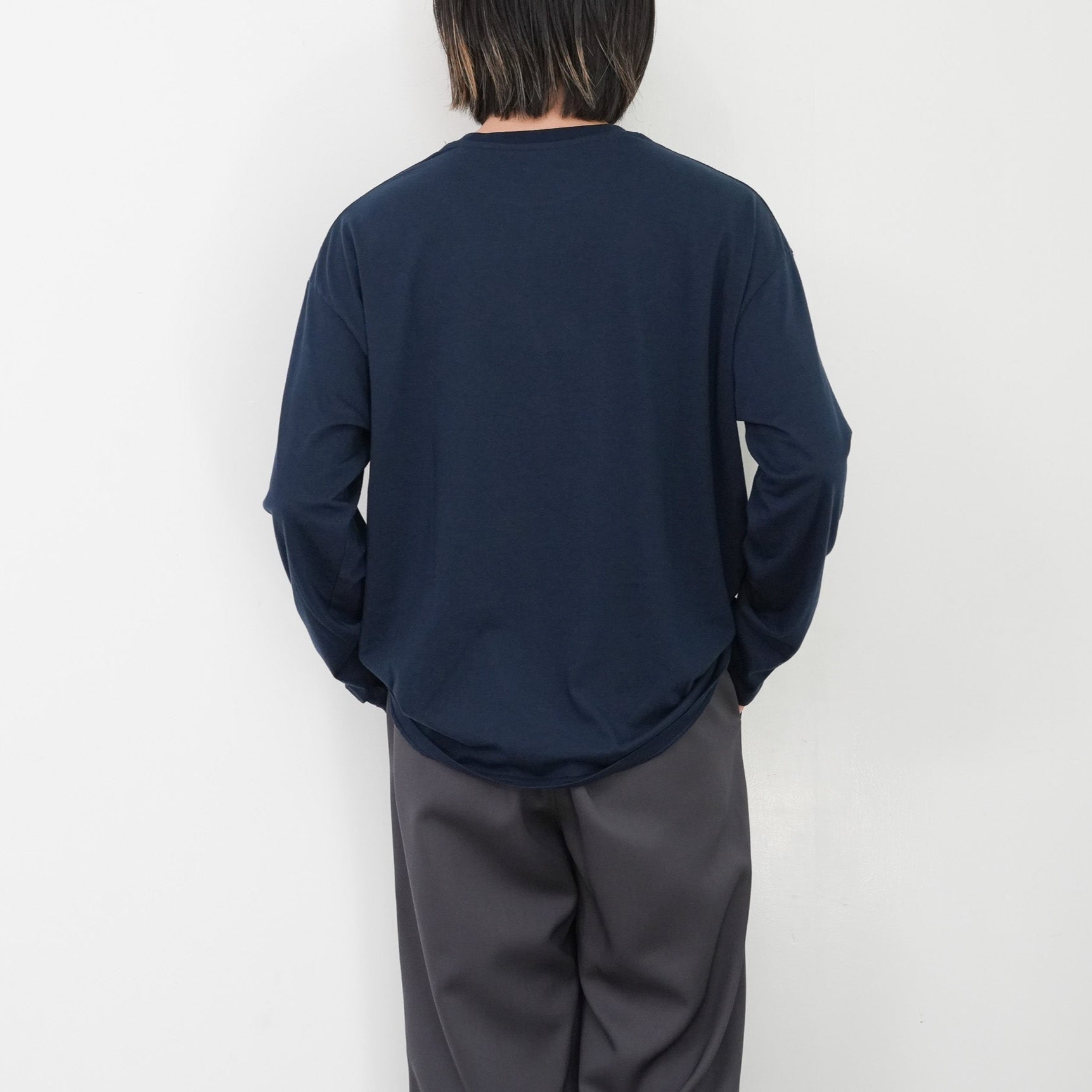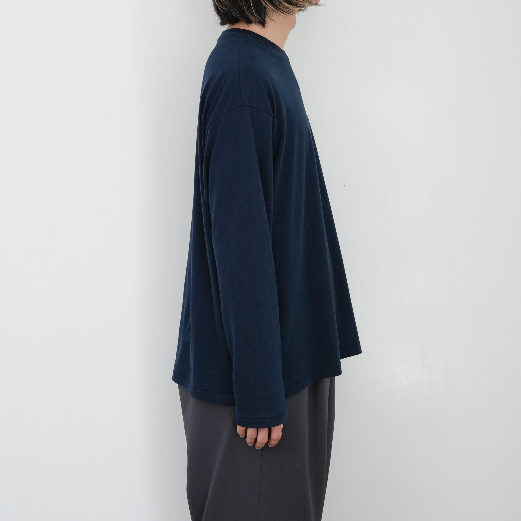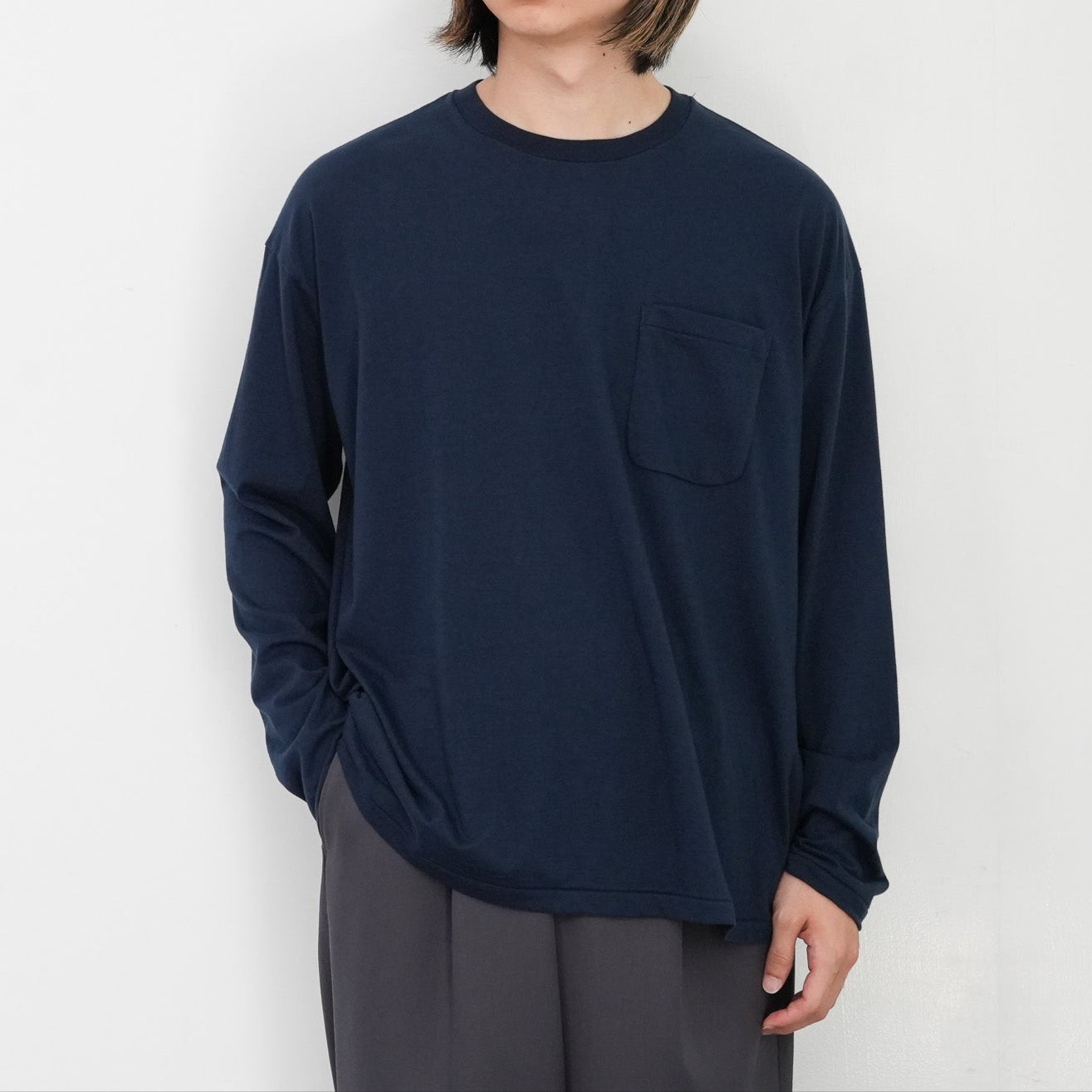 インナーとしても大活躍で、ニットと合わせたときに少しだけ見える首の詰まり具合もちょうどいい。さらには肌触りもよく、着ていて本当に気持ちがよかった。そんなアイテムを長袖にアレンジして、秋冬でも着られる1着にしました。