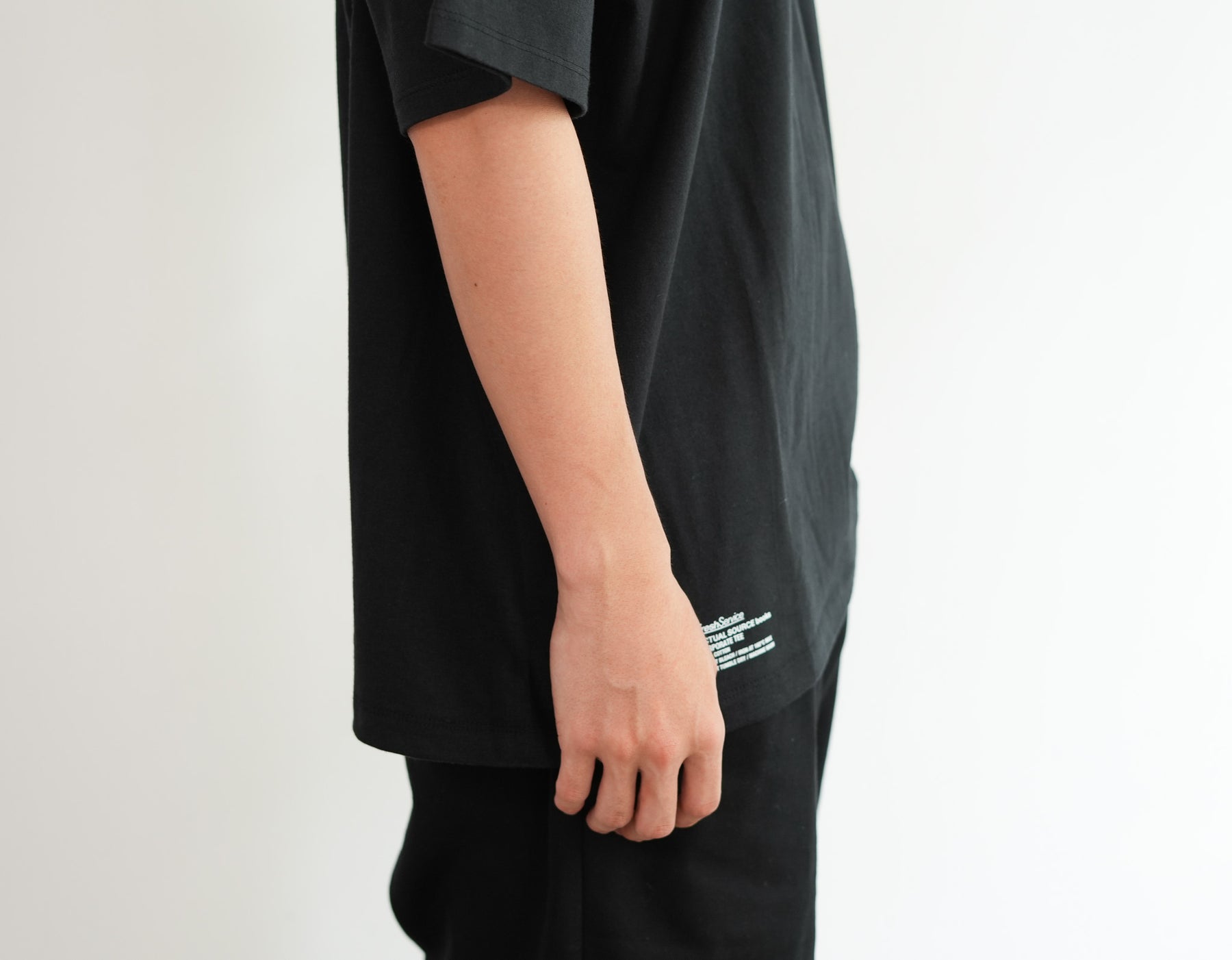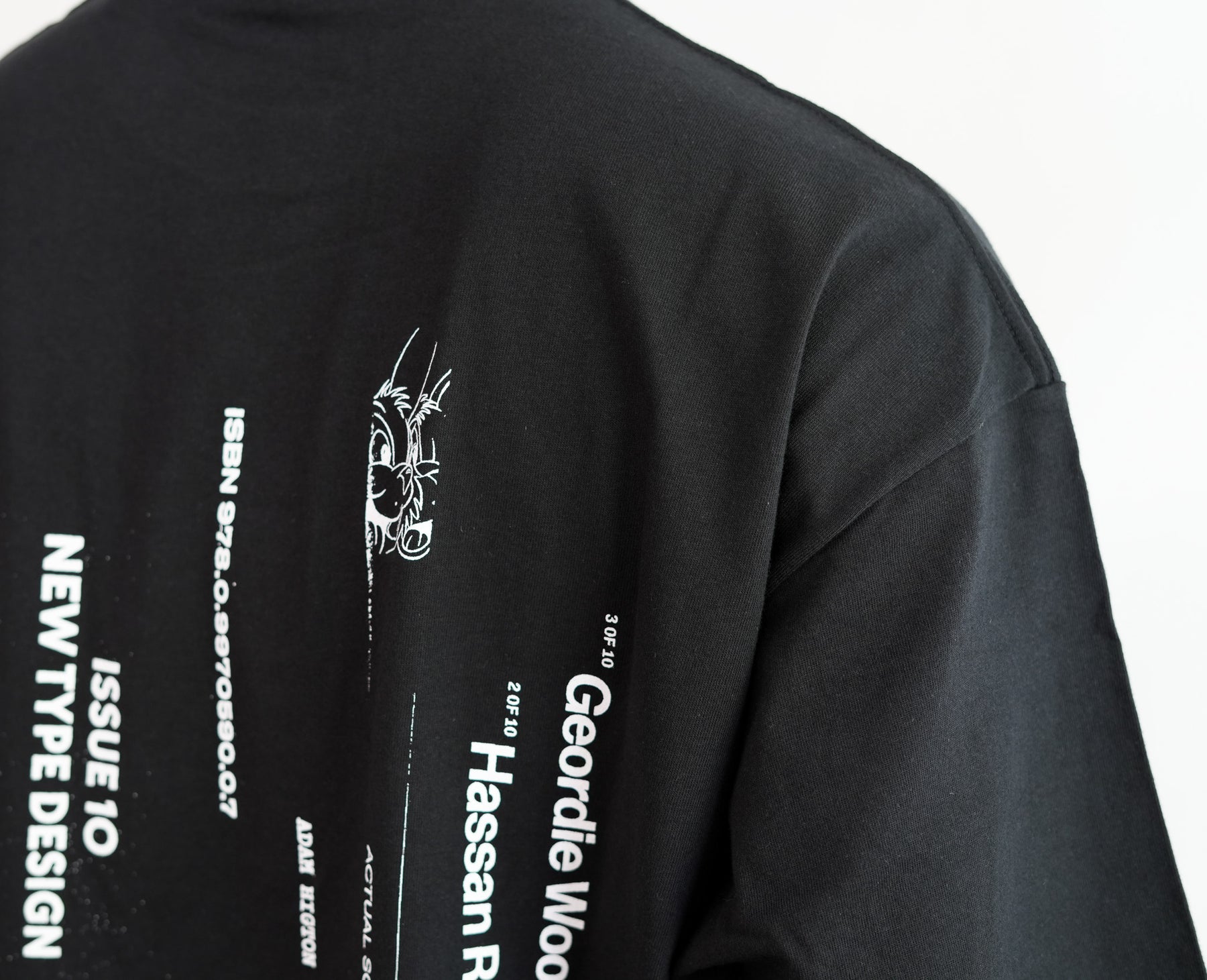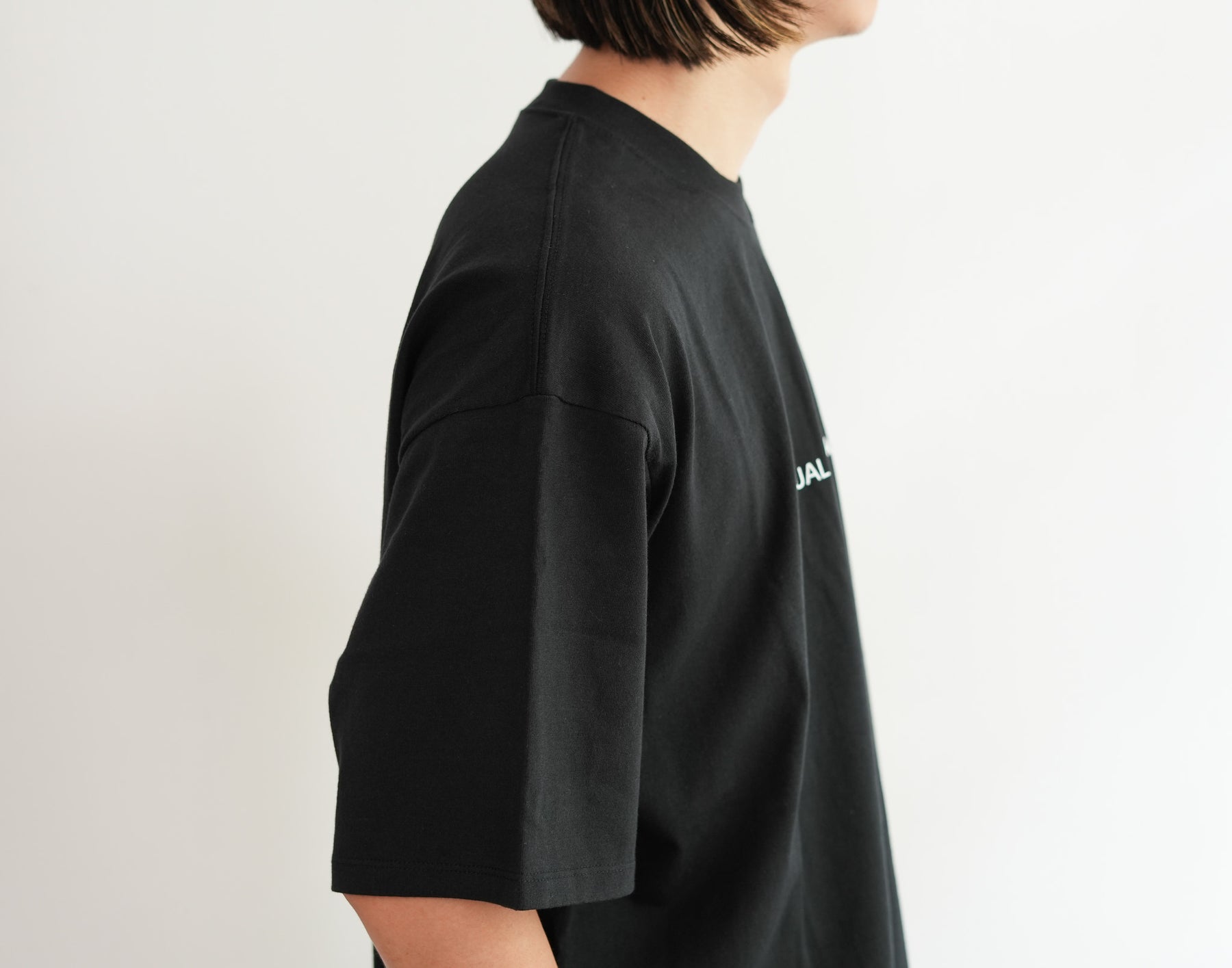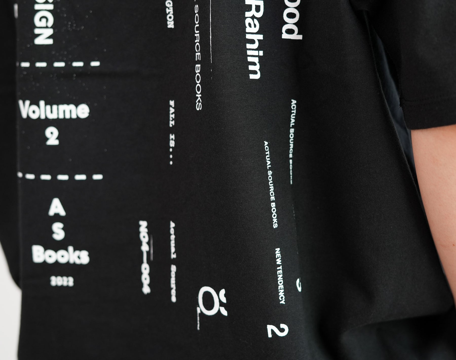 出版やアート、アパレルまで横断的に活動するデザインスタジオ『Actual Source』とのコラボレーションによるカプセルコレクション。彼らのルーツである出版カルチャーを象徴するグラフィックを背面にプリントしました。書籍の背表紙や刊行情報を積み重ねたようなレイアウトは、まさに“BOOK STACK”を思わせるデザイン。タイポグラフィと記号を組み合わせた独特の構図は、シンプルなホワイトTシャツに知的でアートフルなニュアンスを与えています。ドロップショルダーによるオーバーサイズシルエットで、リラックス感のある着心地。1枚で主役としても、ジャケットやシャツのインナーとしてもスタイリングを引き立てる一着です。