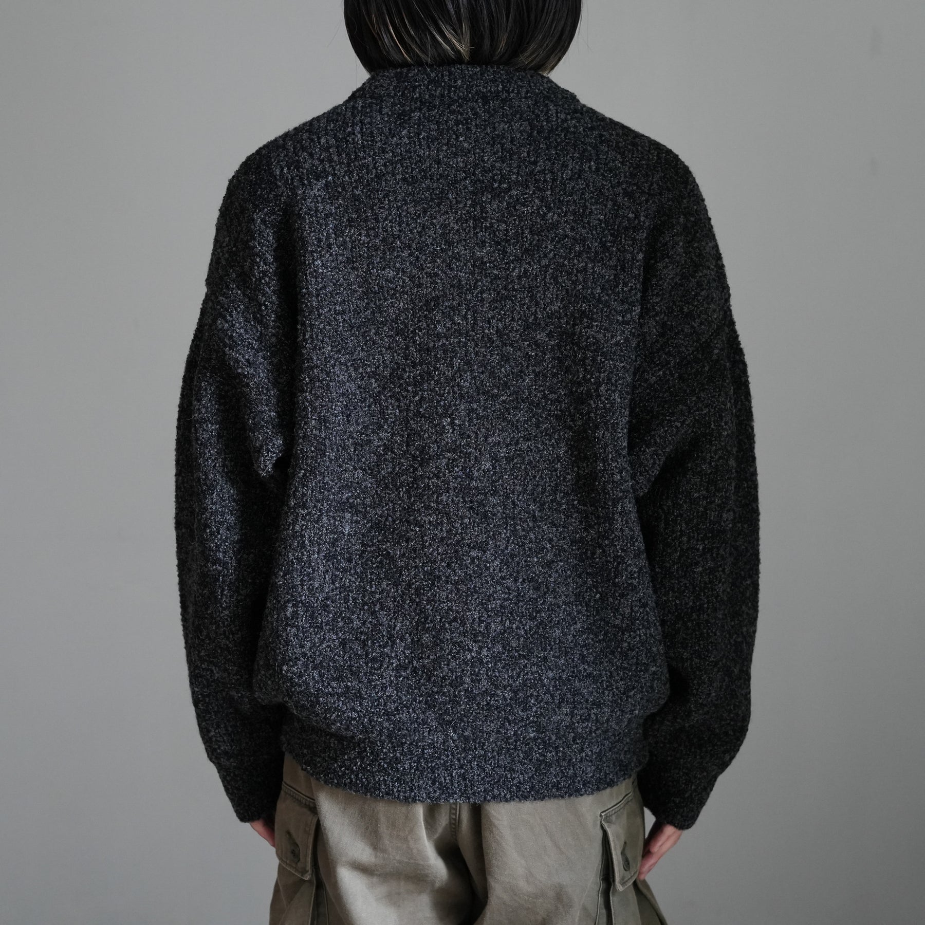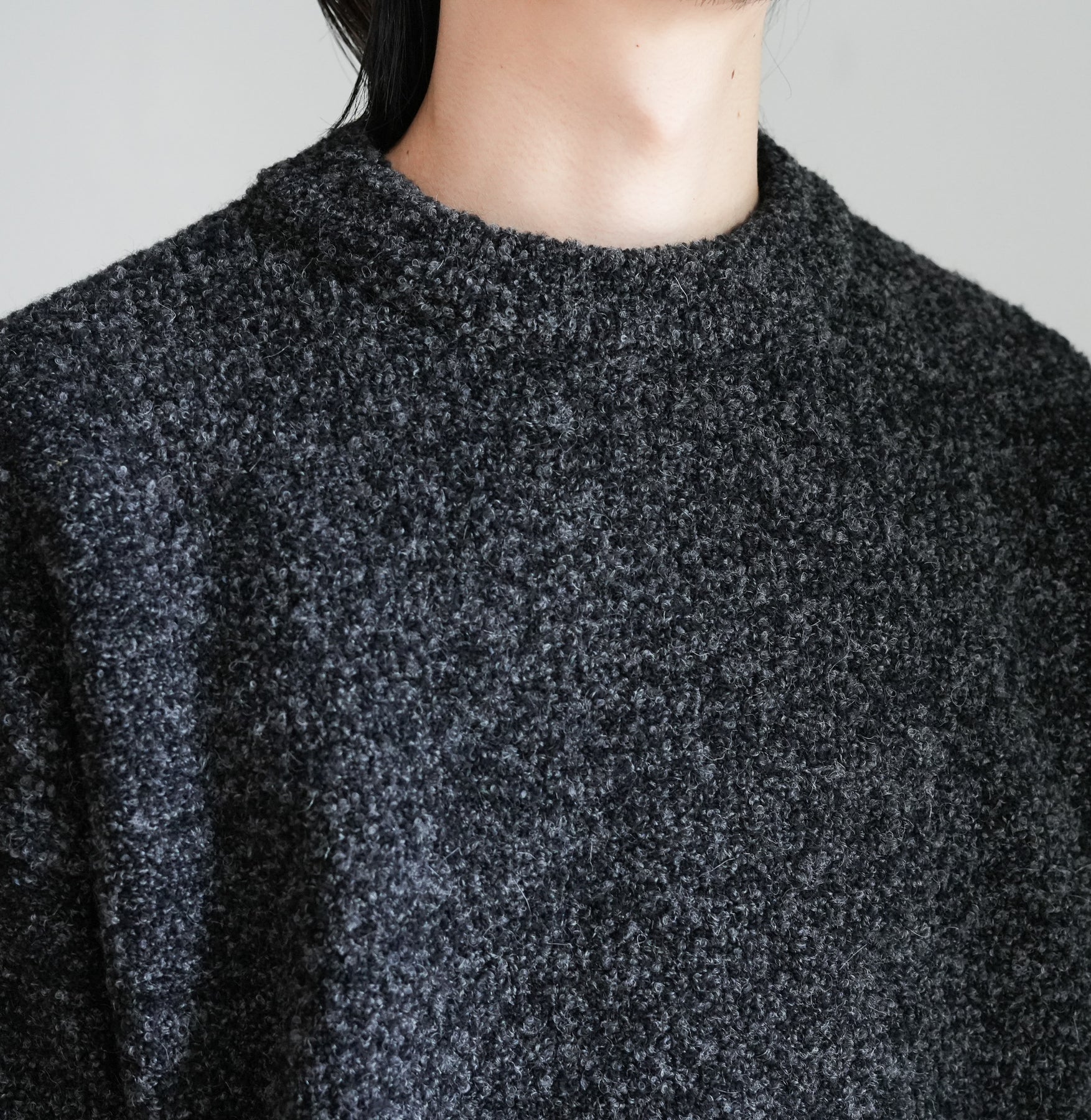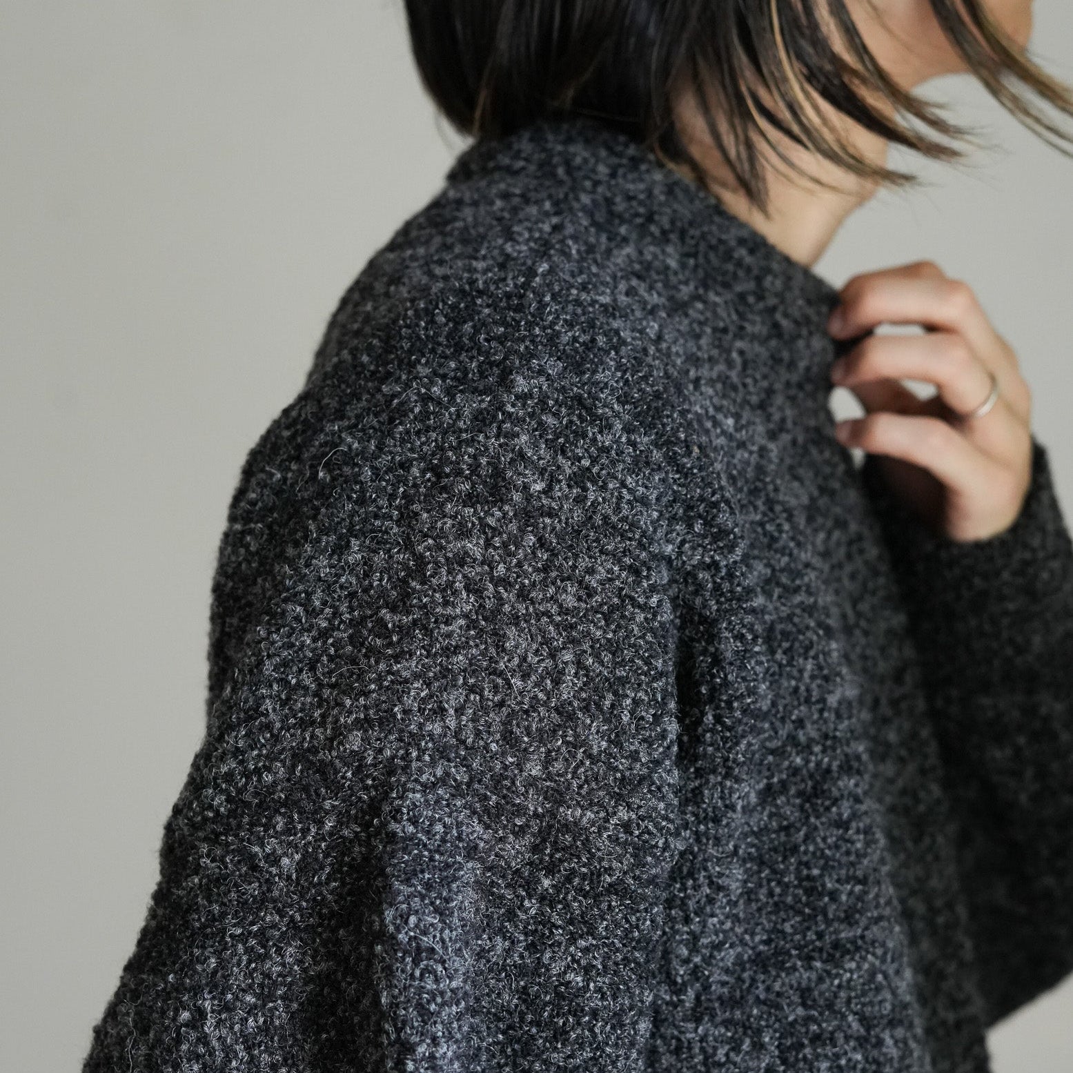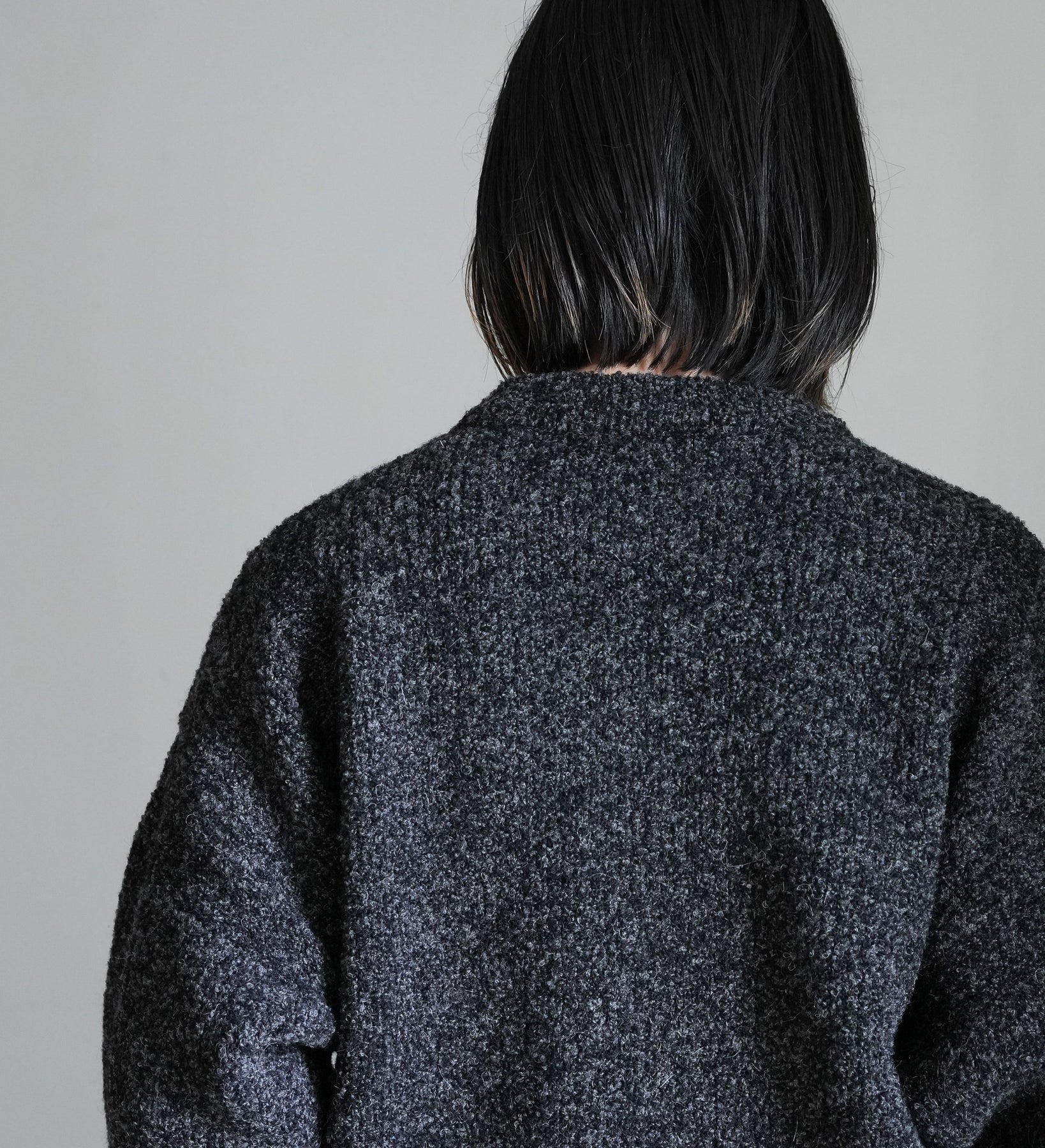 ペルーのファインアルパカと南米ウールを使用しループ状にした弾力性と軽さのあるブークレー糸を使用。2色の糸を使用しまだら模様に仕上げています。