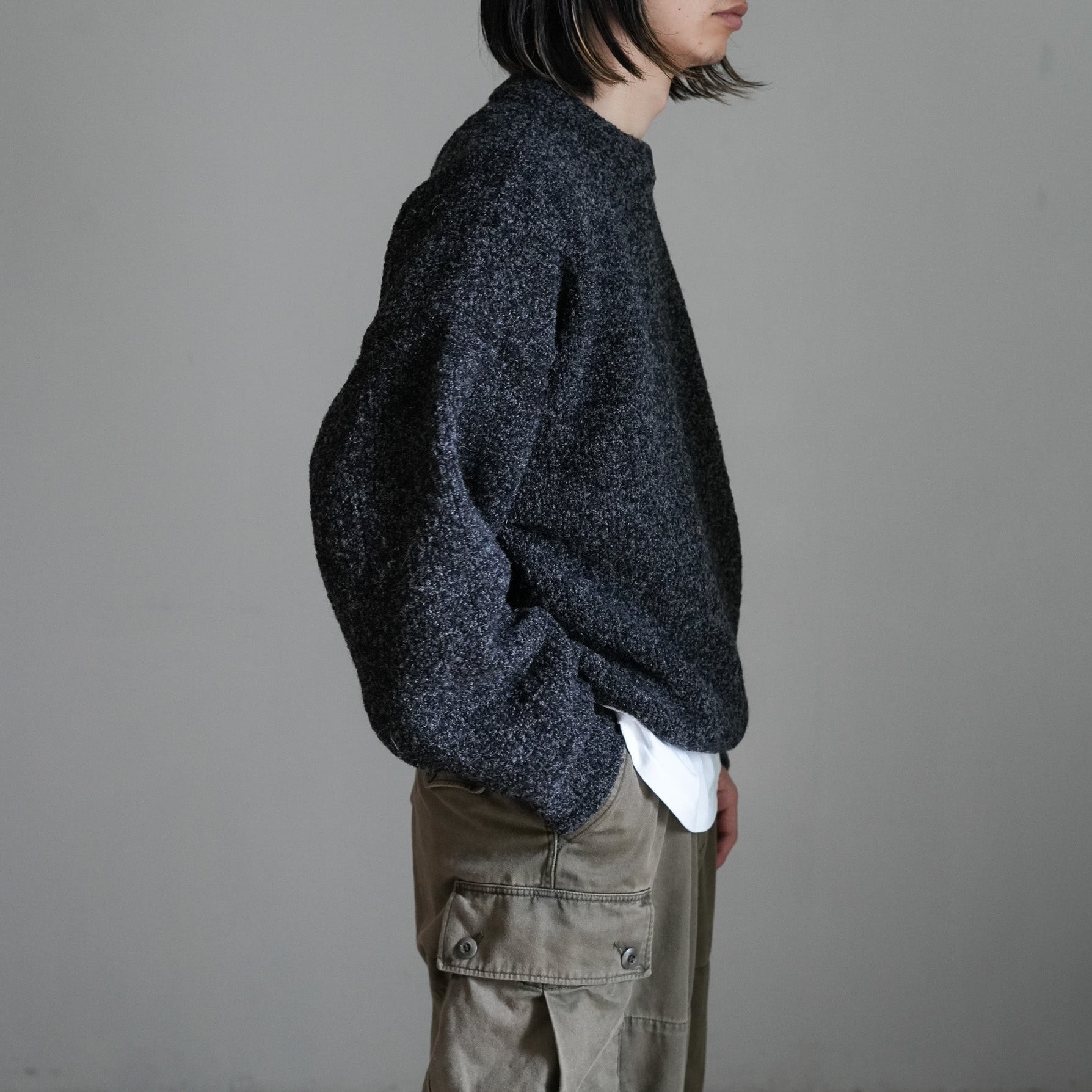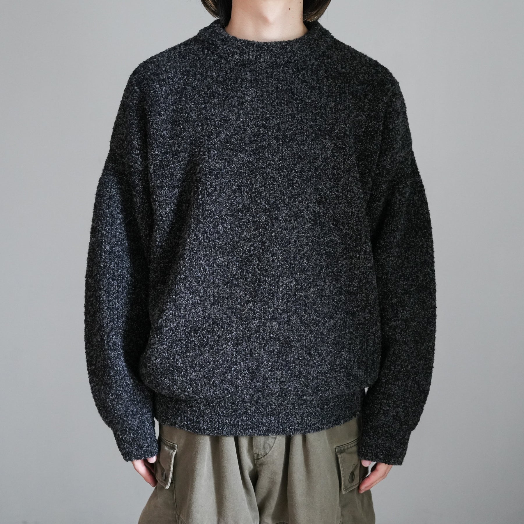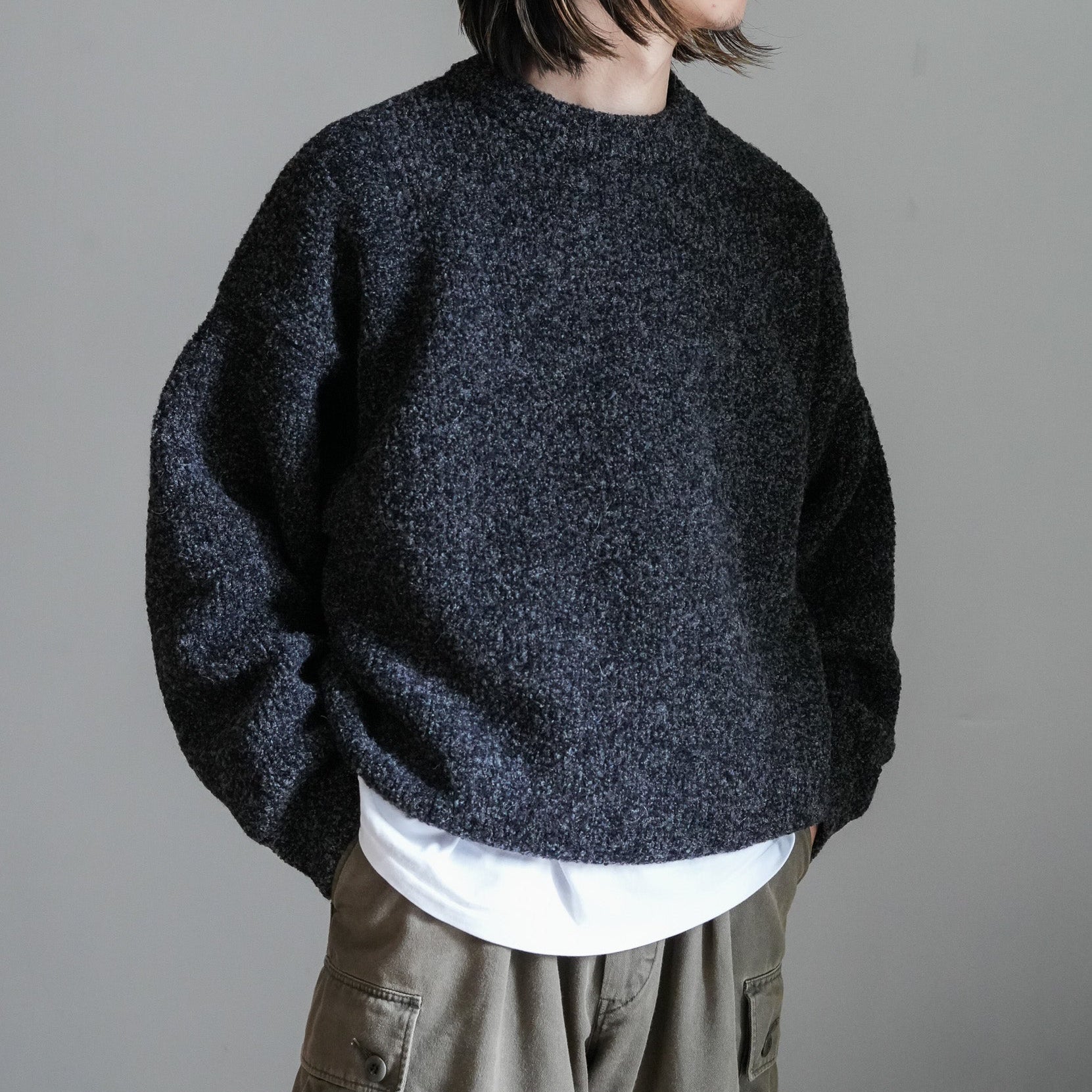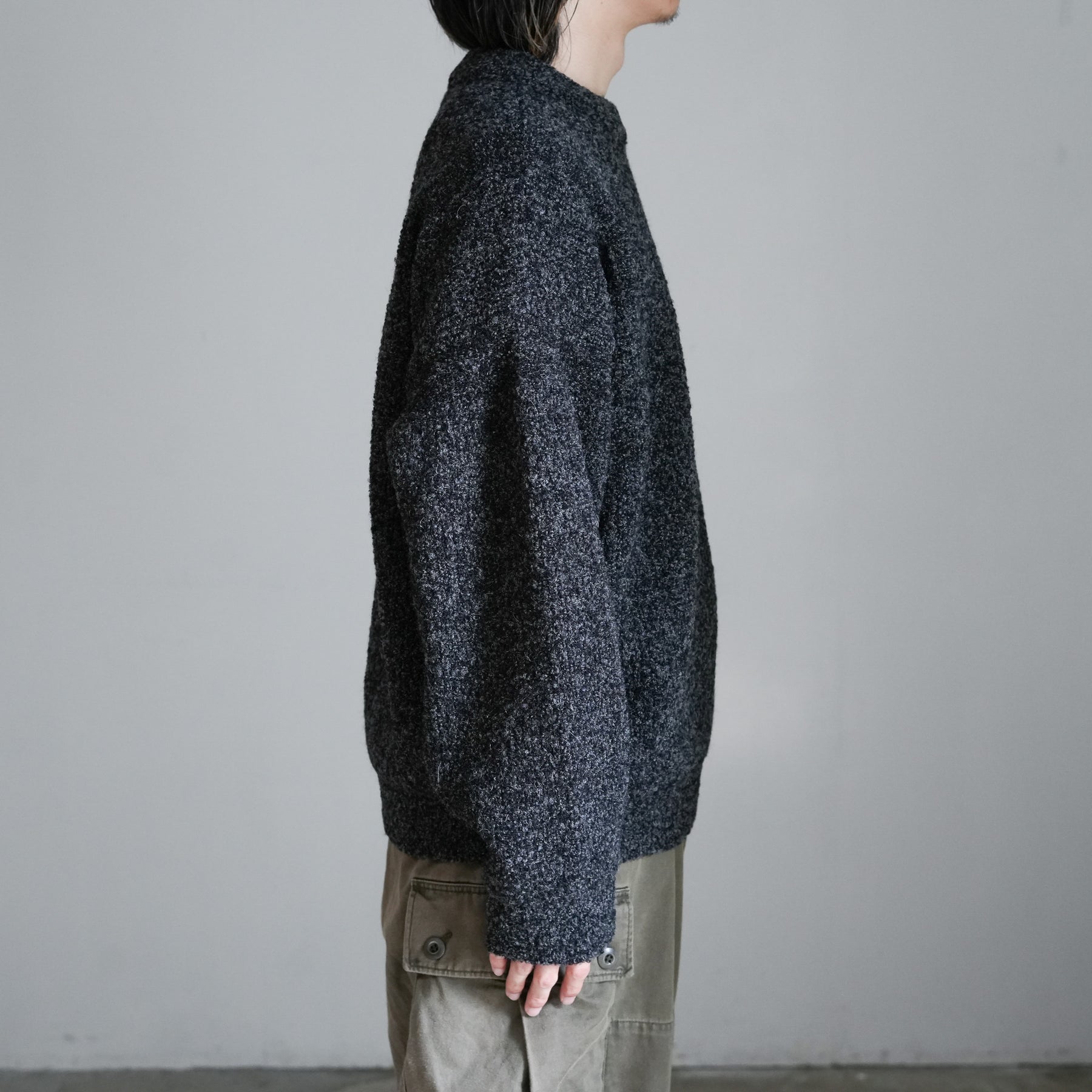 ペルーのファインアルパカと南米ウールを使用しループ状にした弾力性と軽さのあるブークレー糸を使用。2色の糸を使用しまだら模様に仕上げています。