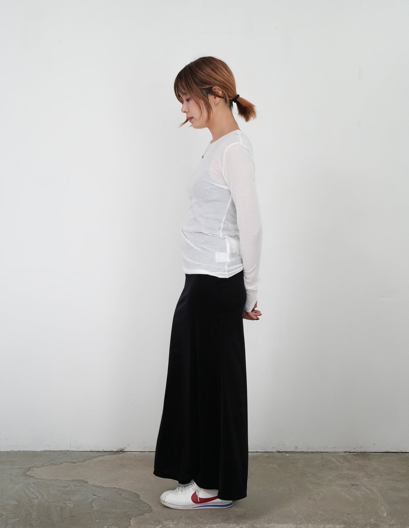 襟ぐりや袖口、裾が断ち切り始末で、シアーな生地感に対して重くならないようにしています。