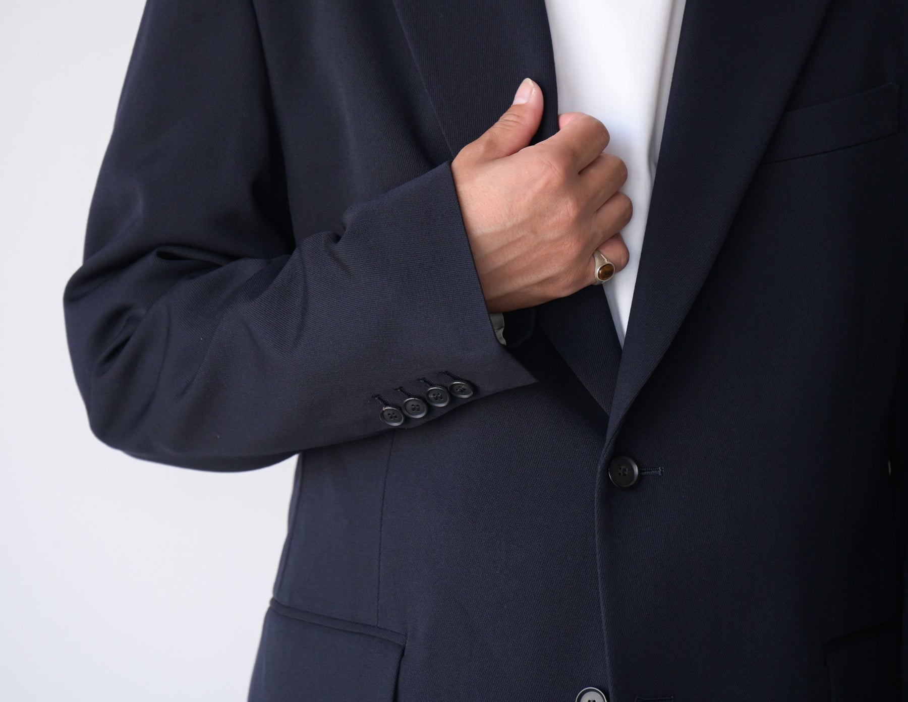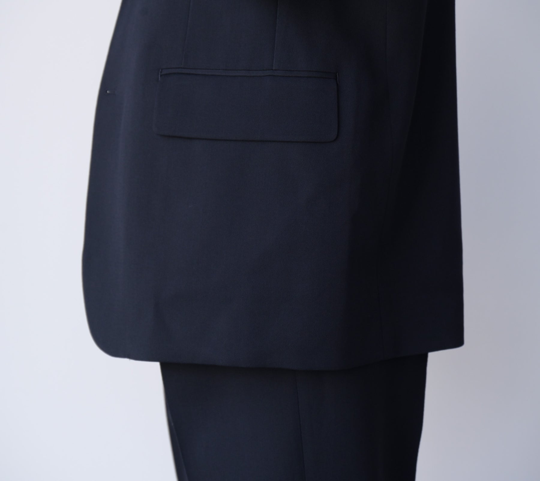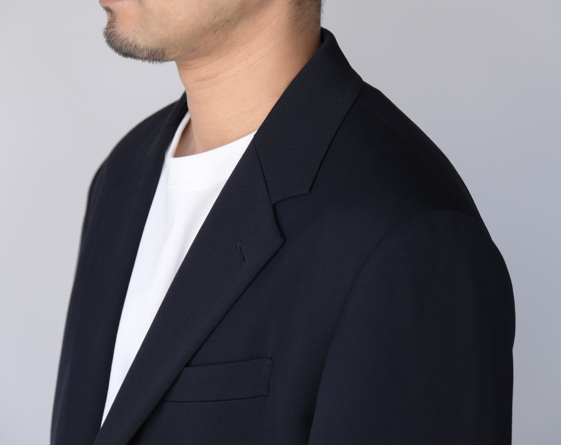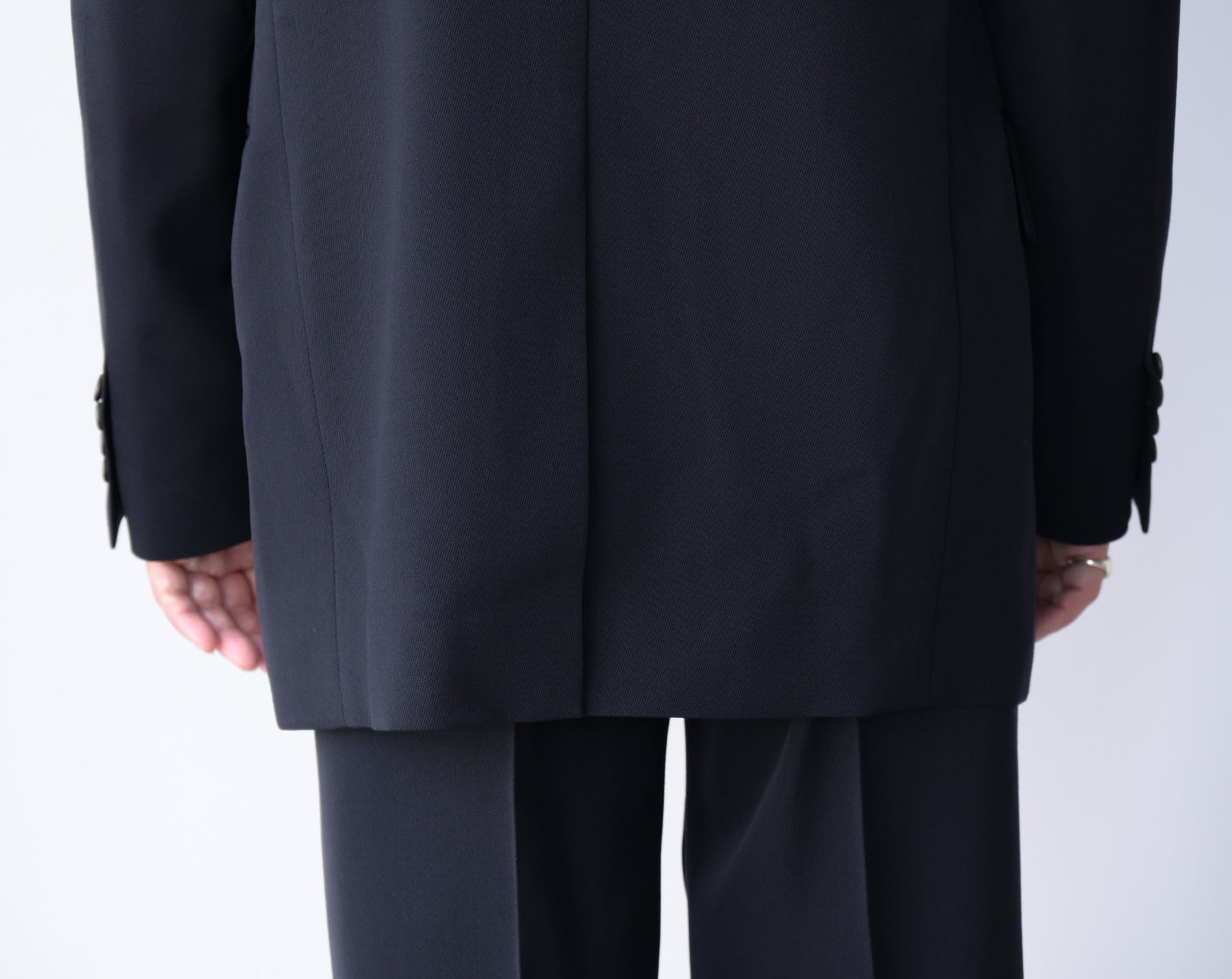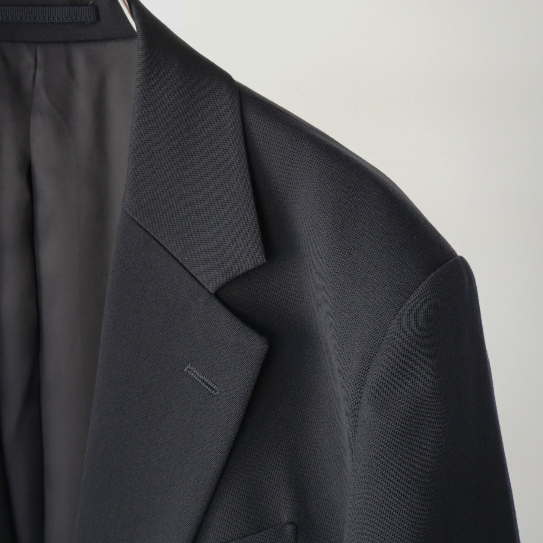 撚りを工夫した細番手のウールを綾目が太く丈夫なトリコチン組織にすることで、肉感がありながら落ち感のある素材に仕上げました。ゆったりしたシルエットのテーラードジャケットです。