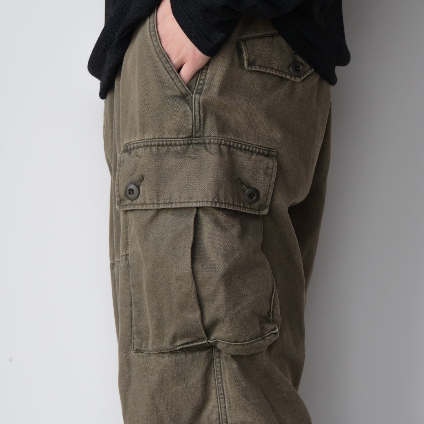 マチが広めに設計されているためカーゴポケットが特に印象的なカーゴパンツ。