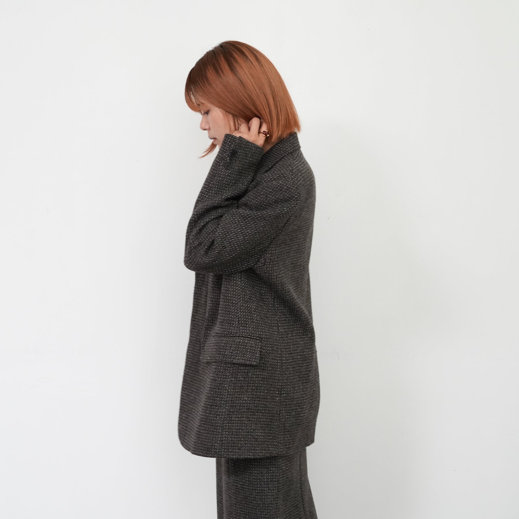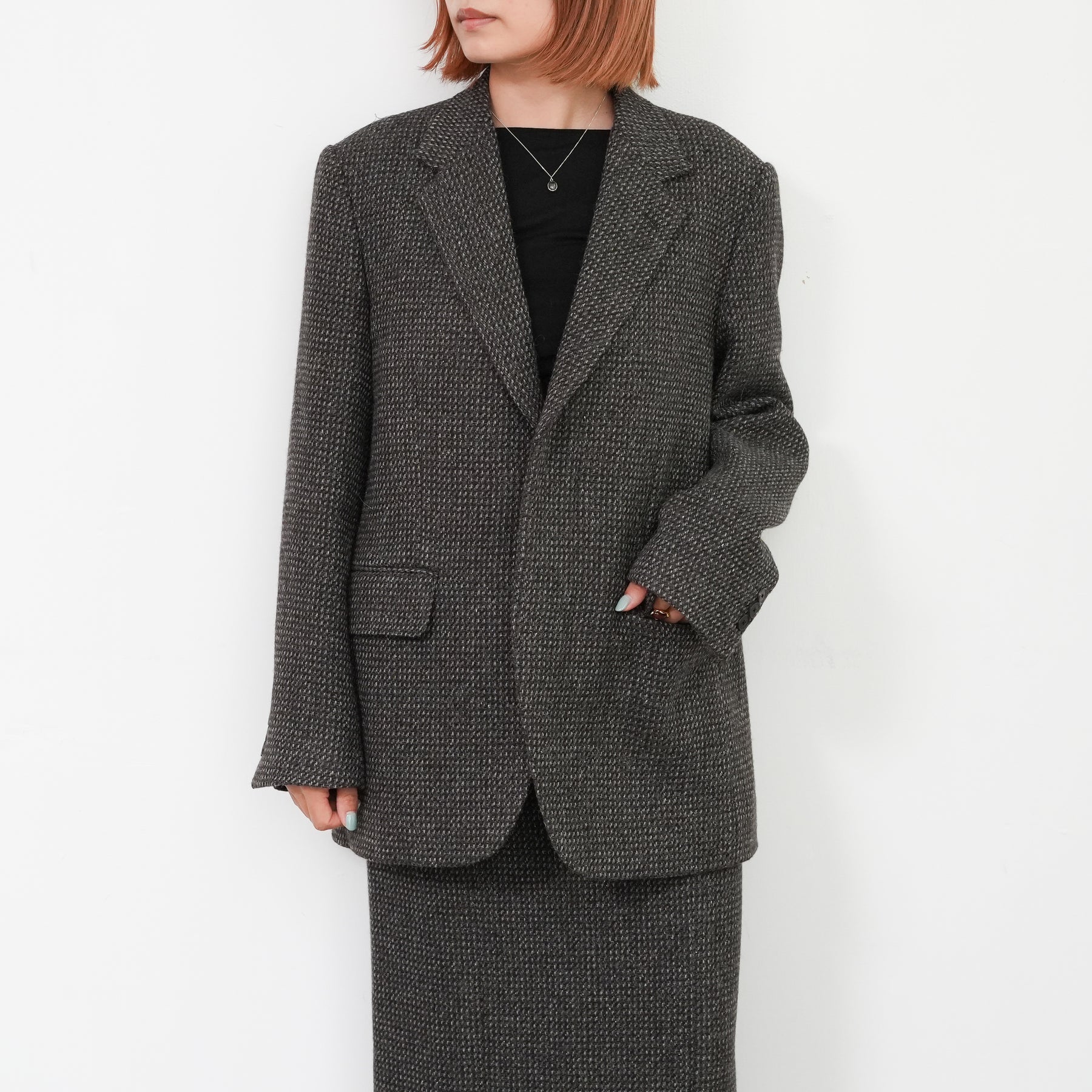 ツイード素材のジャケット。