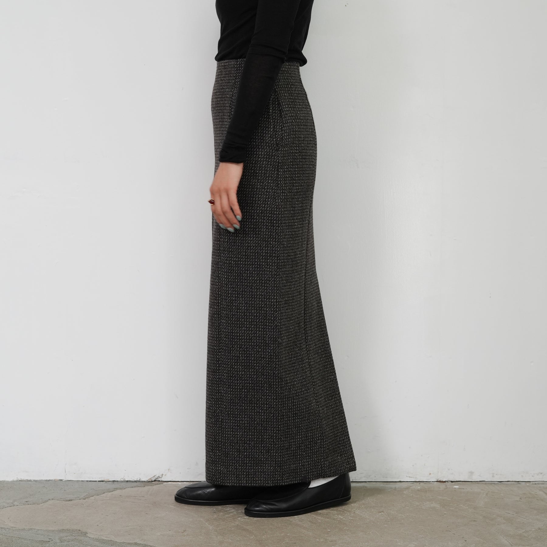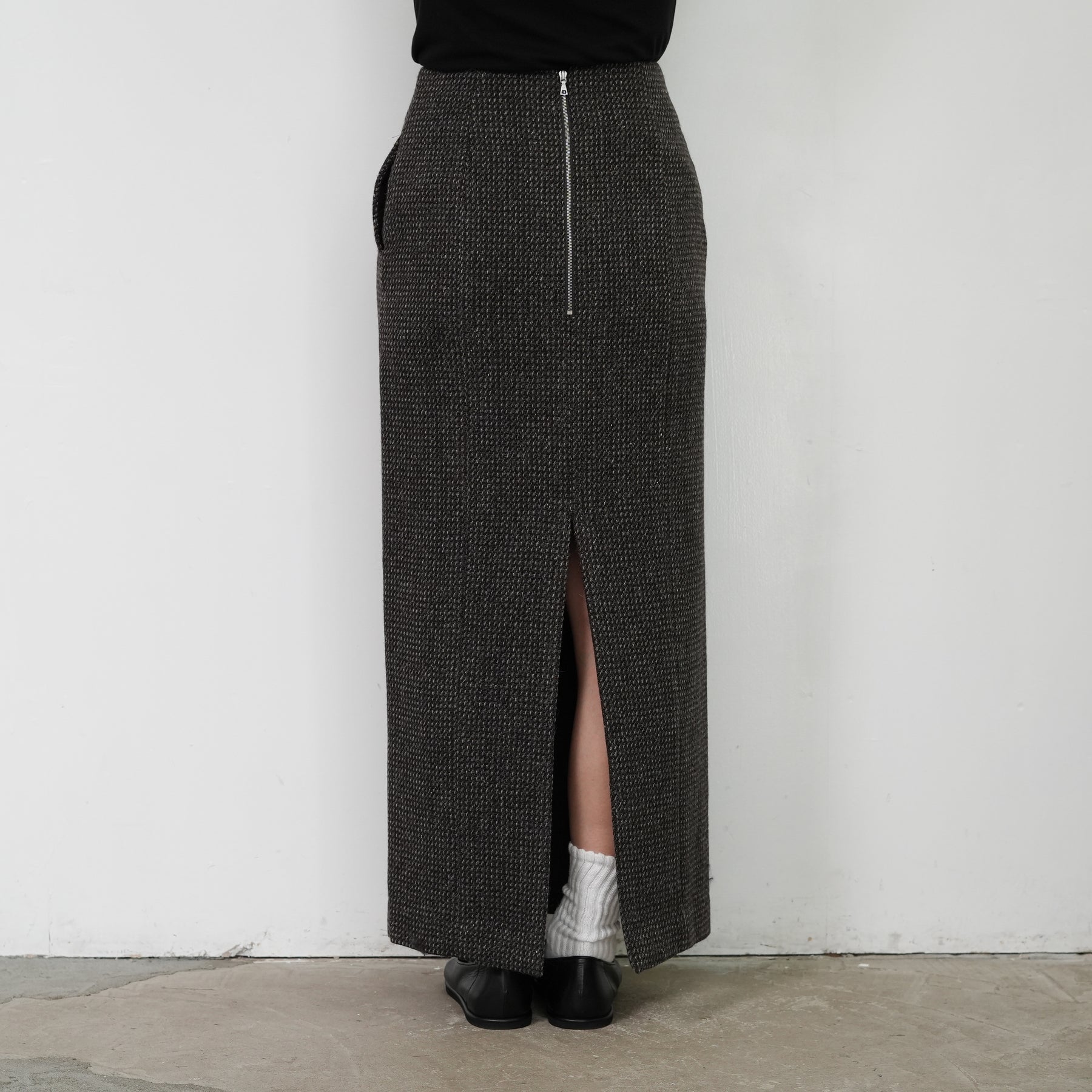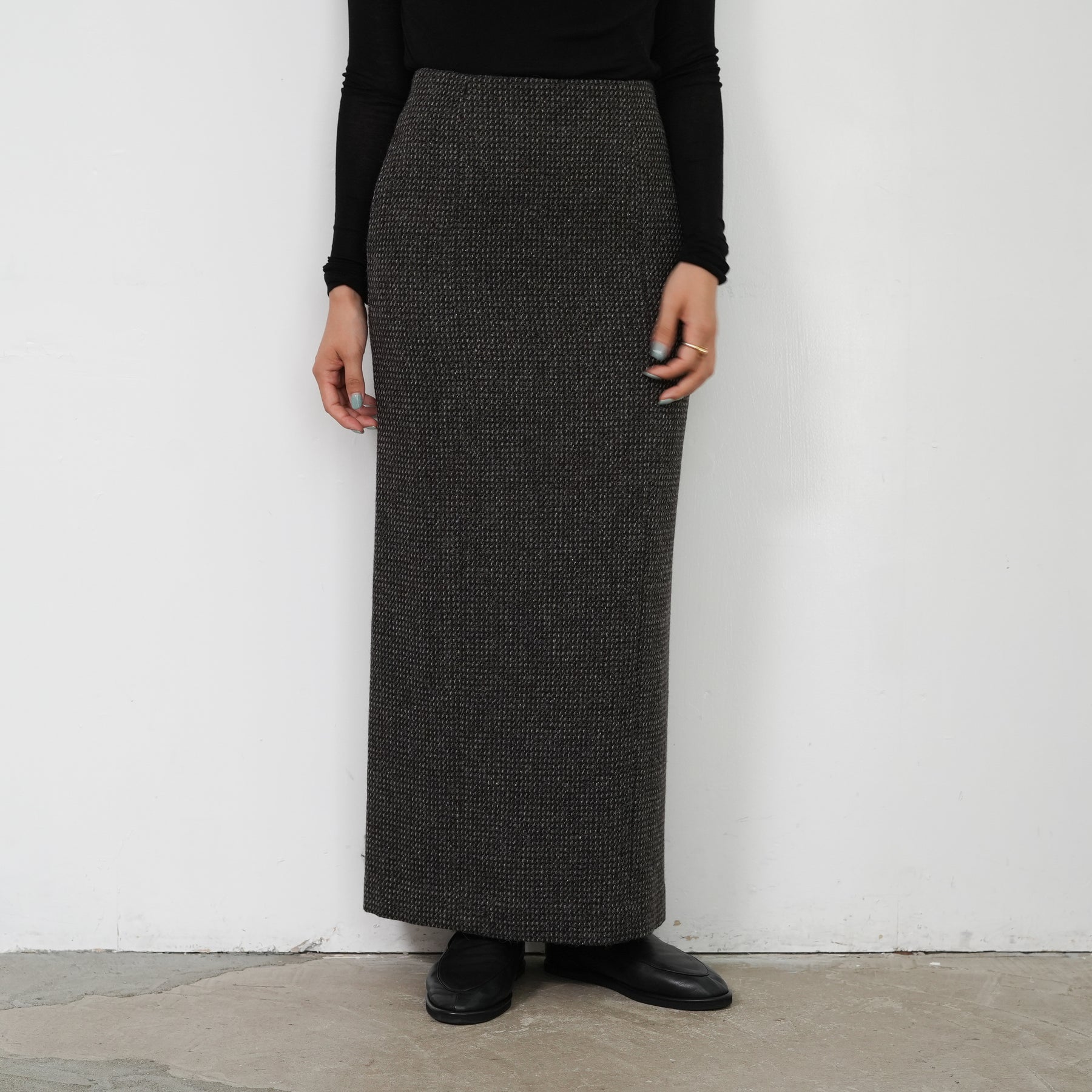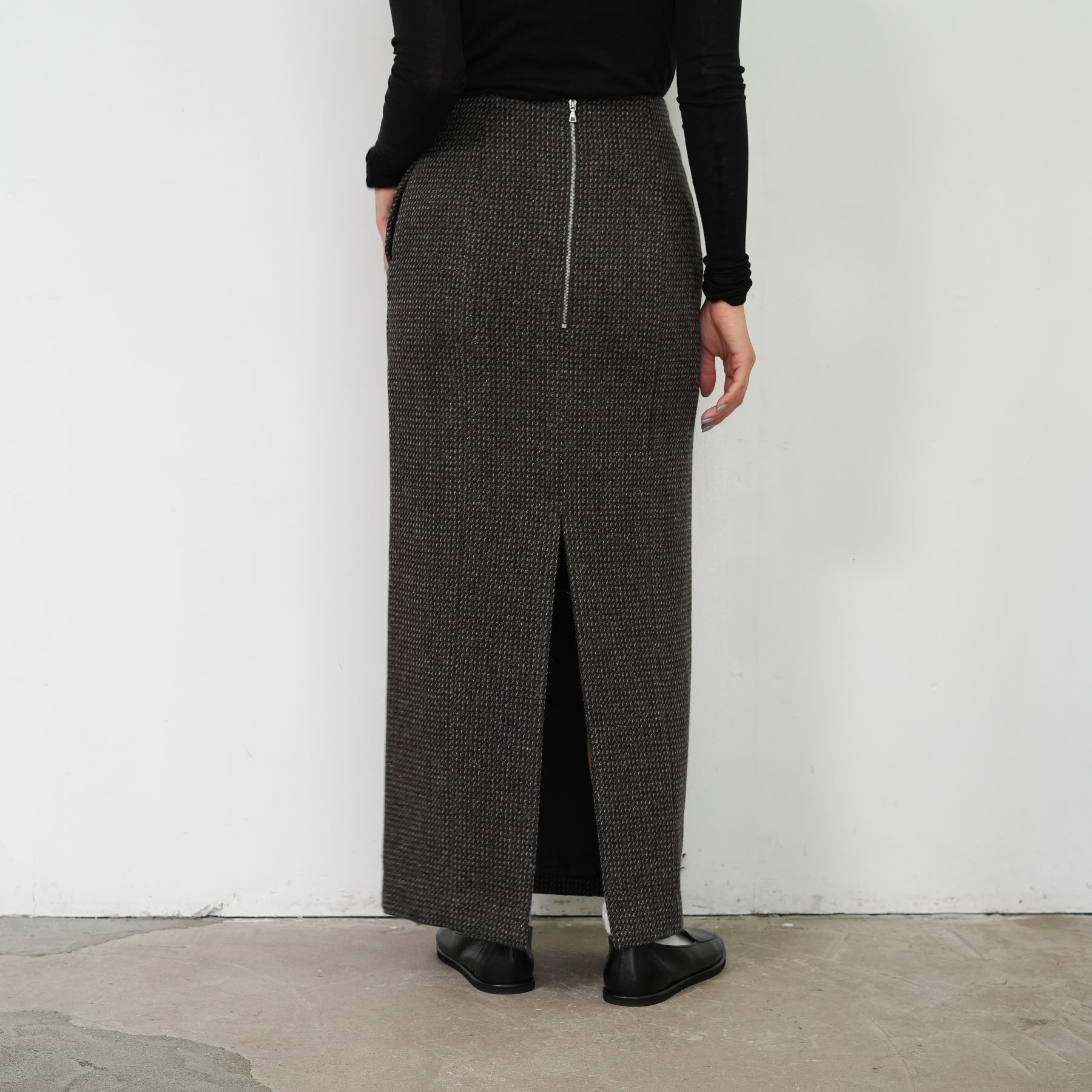 裾に向かってストンと落ちる洗練られたシルエットです。