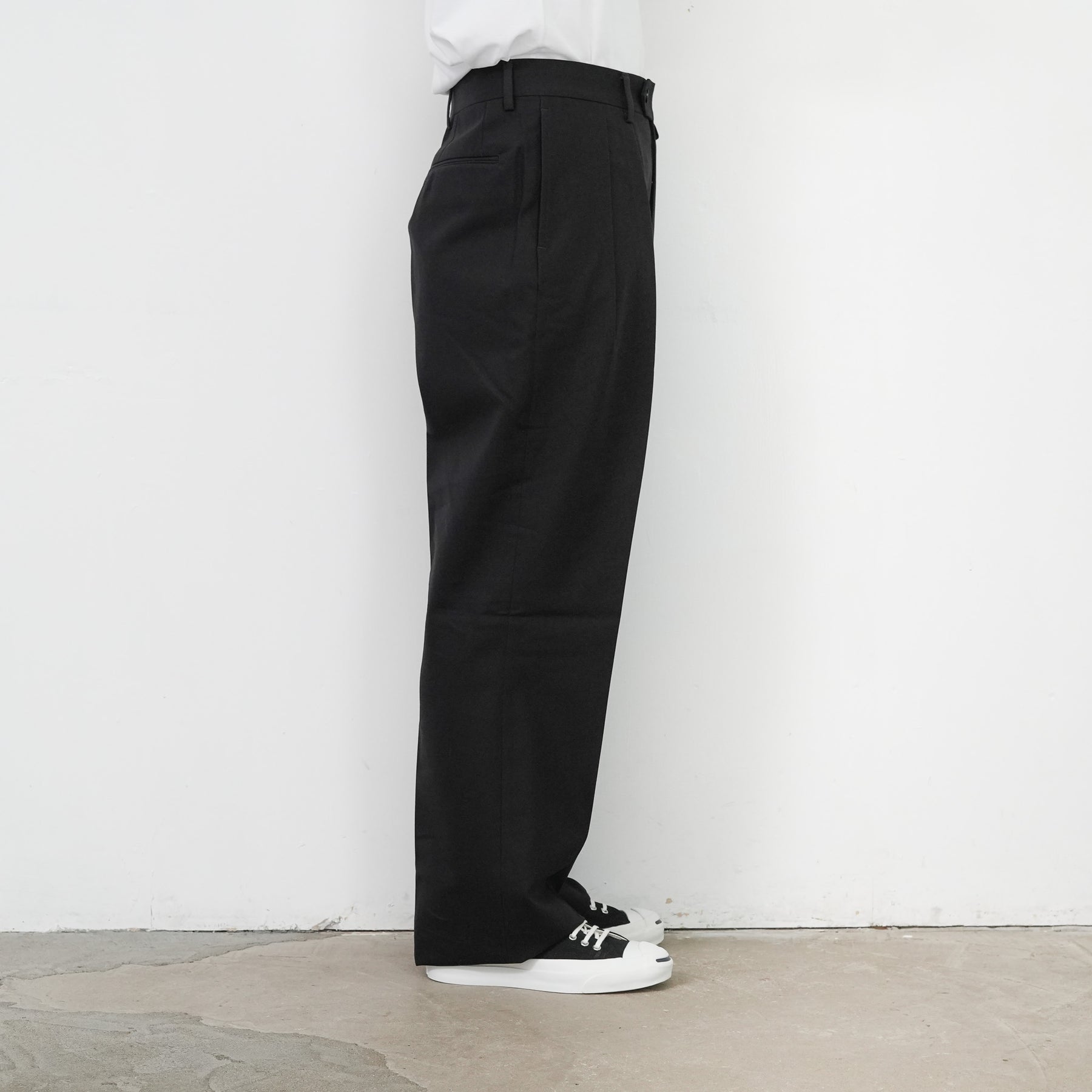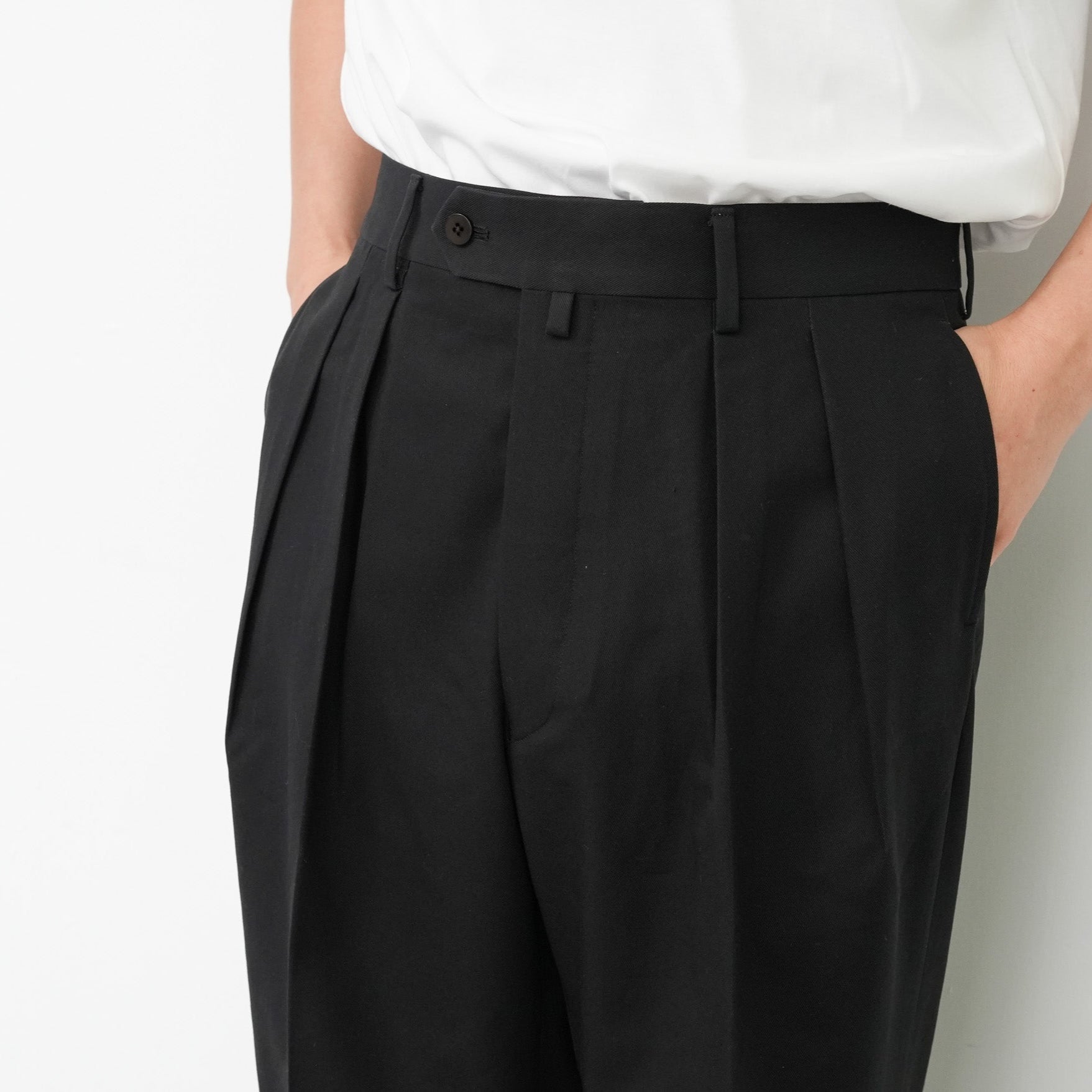 希少性の高い太番手の30/2の強撚糸をタテヨコにふんだんに使用した生地です。 強撚糸は毛羽感も少なく綺麗なものですが、その糸質の良さとシャリ感を最大限に引き出すために圧縮加工とシリコン反発剤を組み合わせております。 その結果、綿素材らしくないプリっとしつつもシャリ感を感じるタッチに仕上がっております。