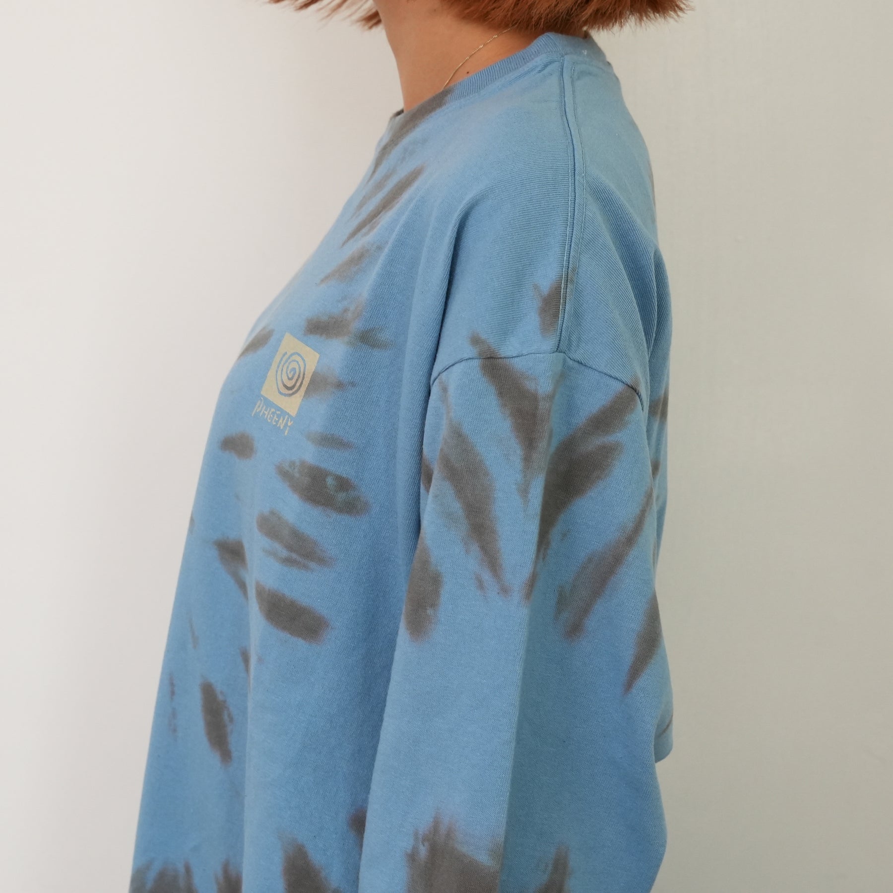 奄美大島での泥染め体験をもとに作成したタイダイ染めのロンT。