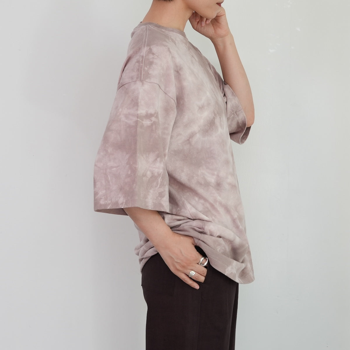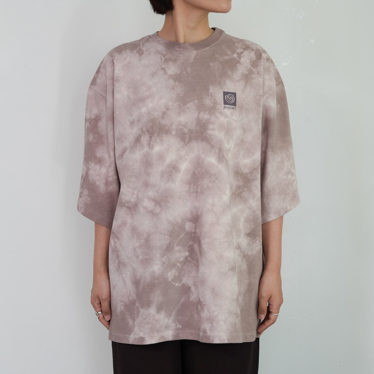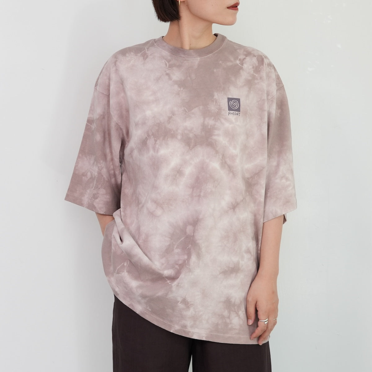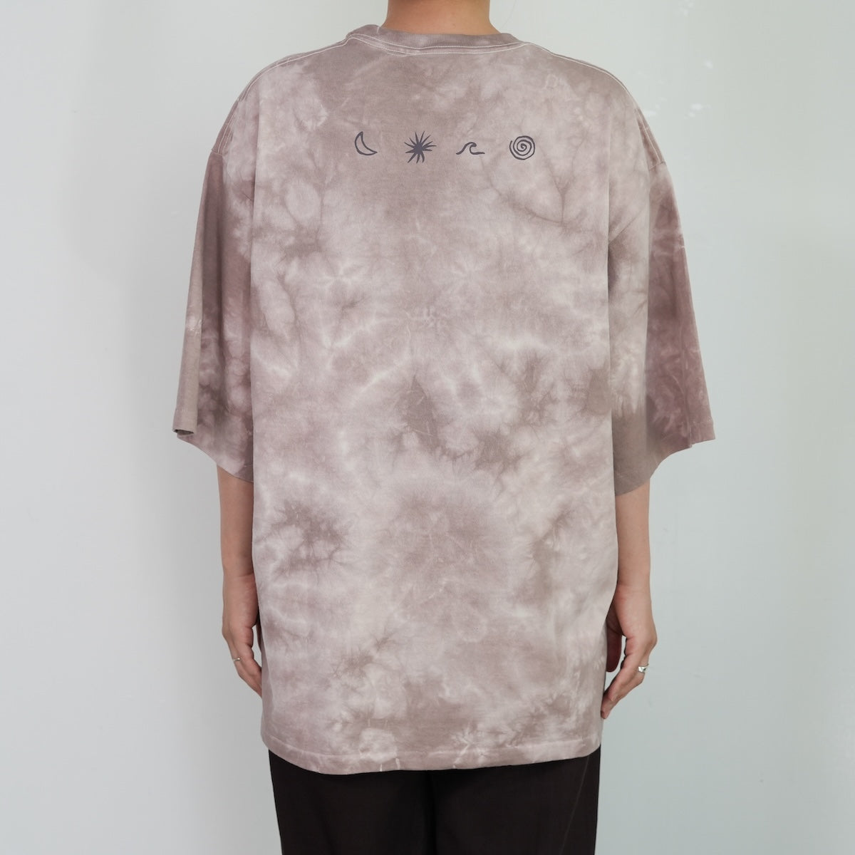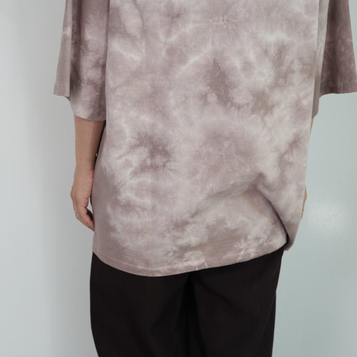 ブラウンはランダムな染め柄で、左胸と背中にワンポイントのプリントが施されています。