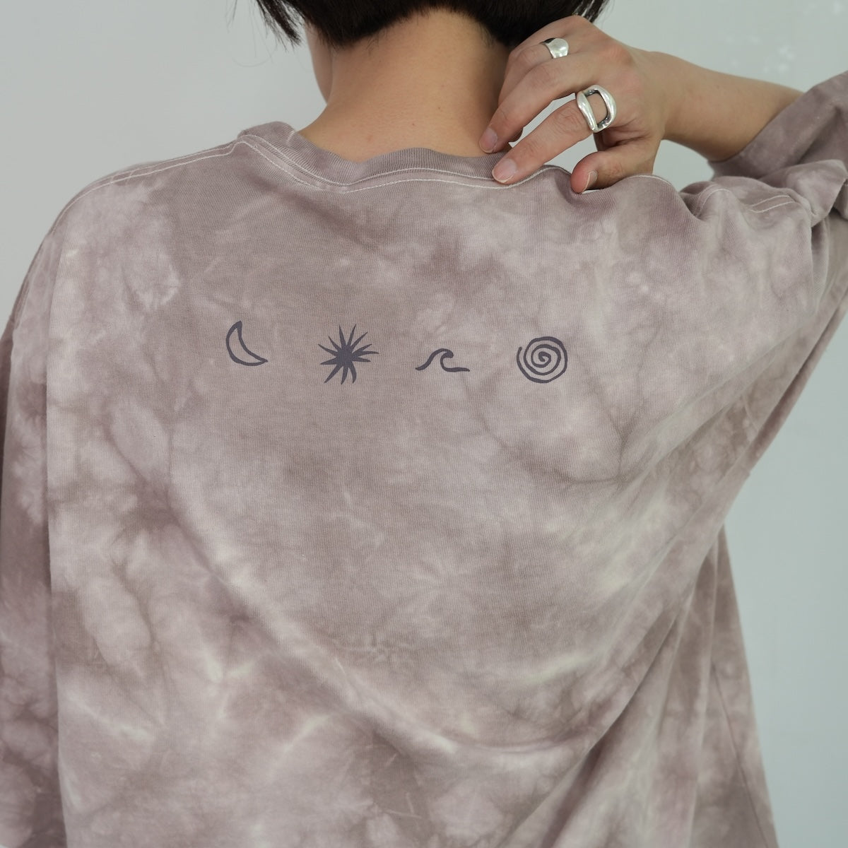 奄美大島での泥染め体験をもとに作成したタイダイ染めのロンT。