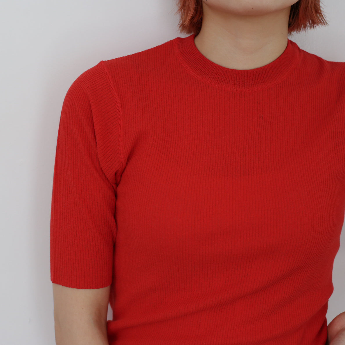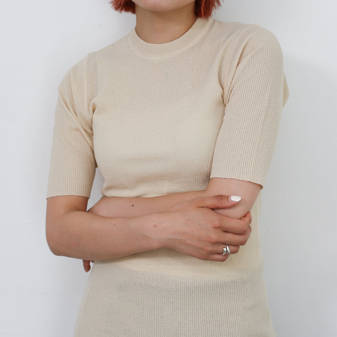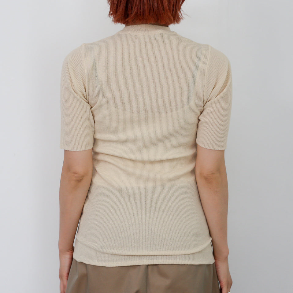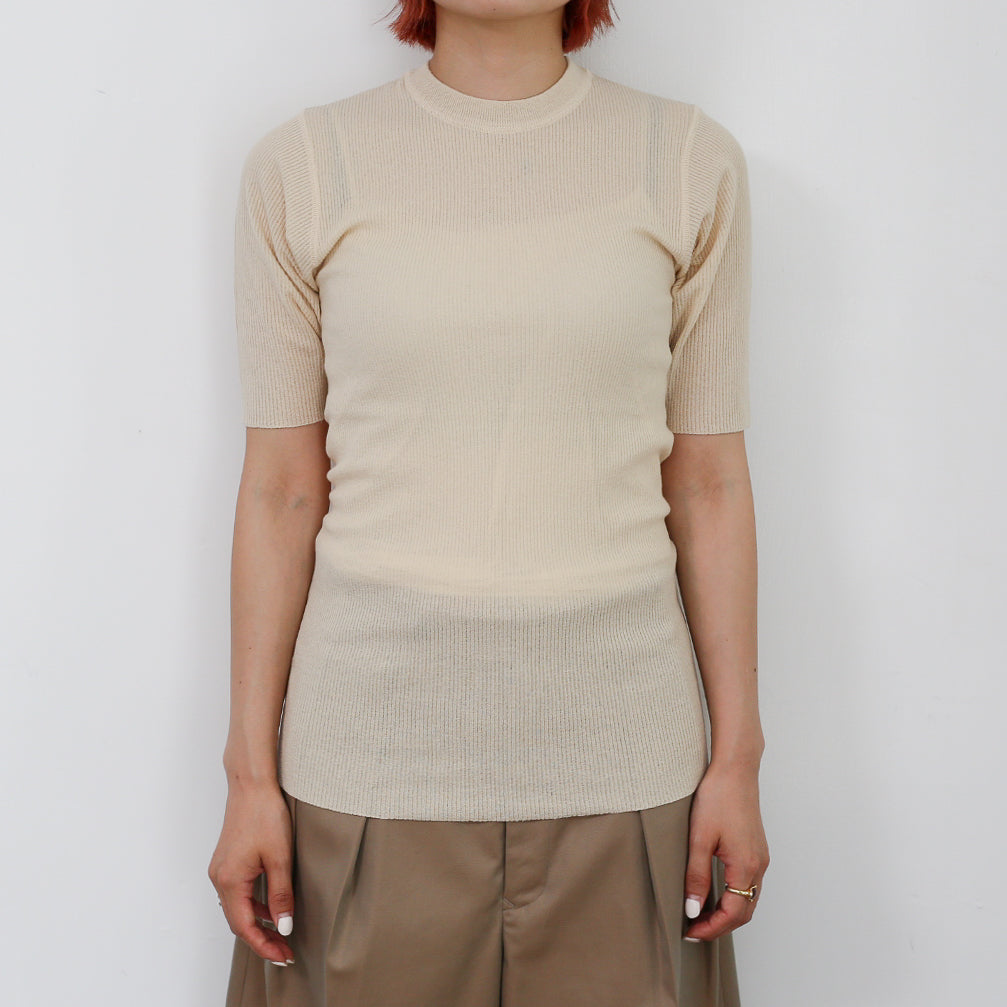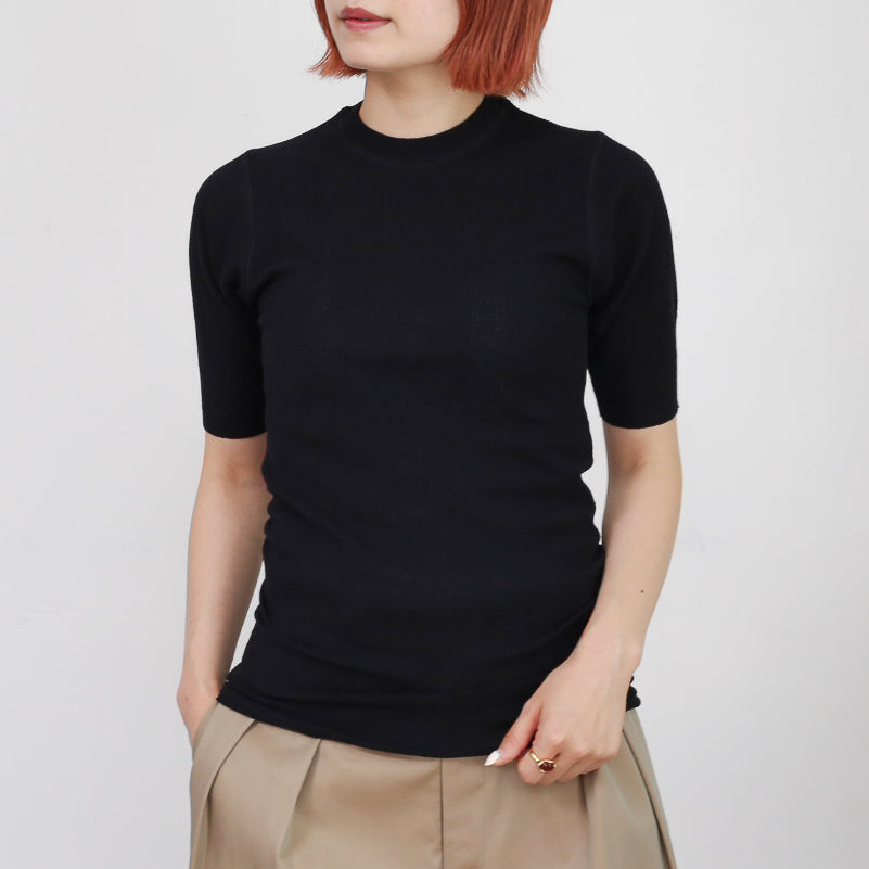 シアー感とフィット感が特徴のコンパクトなニットトップス。
