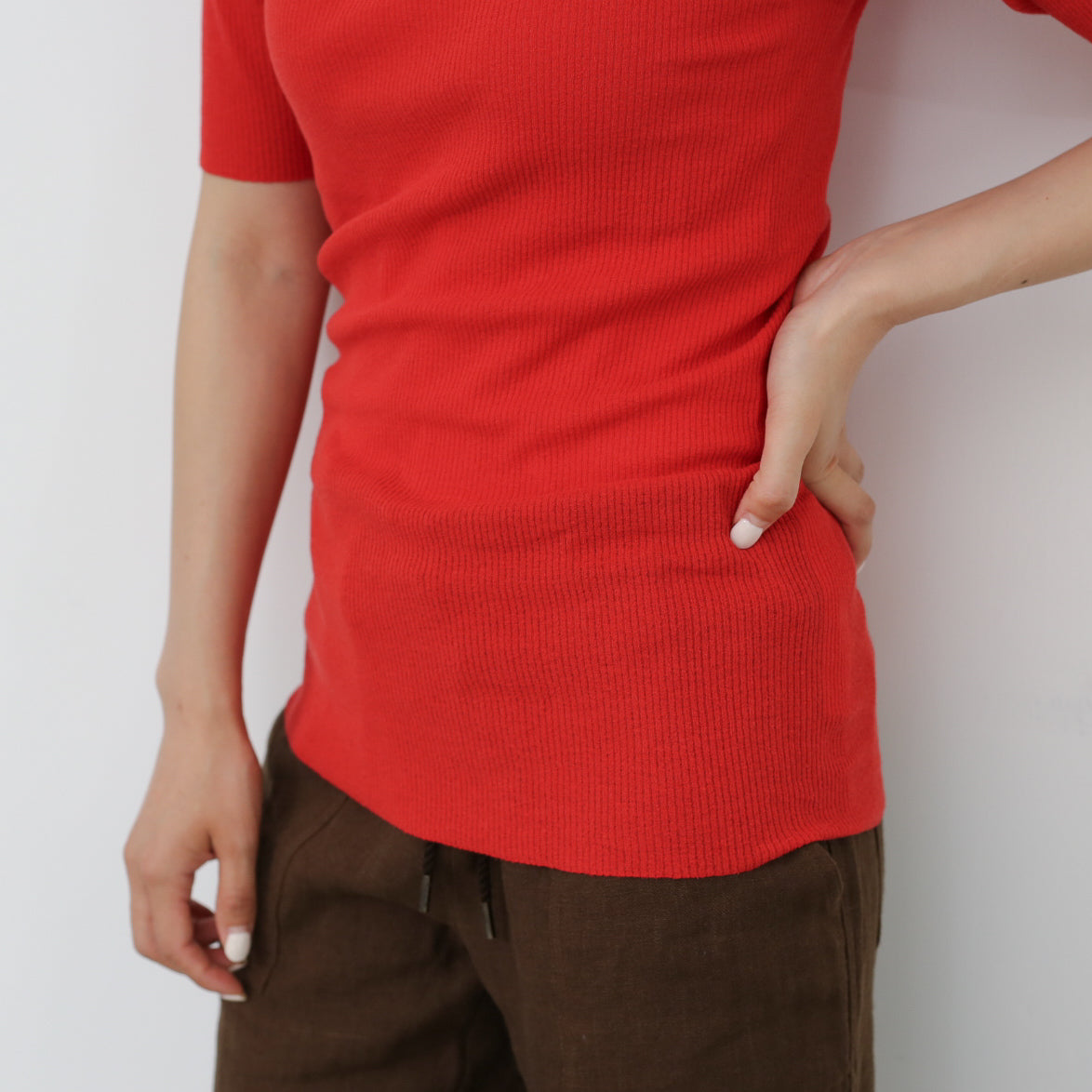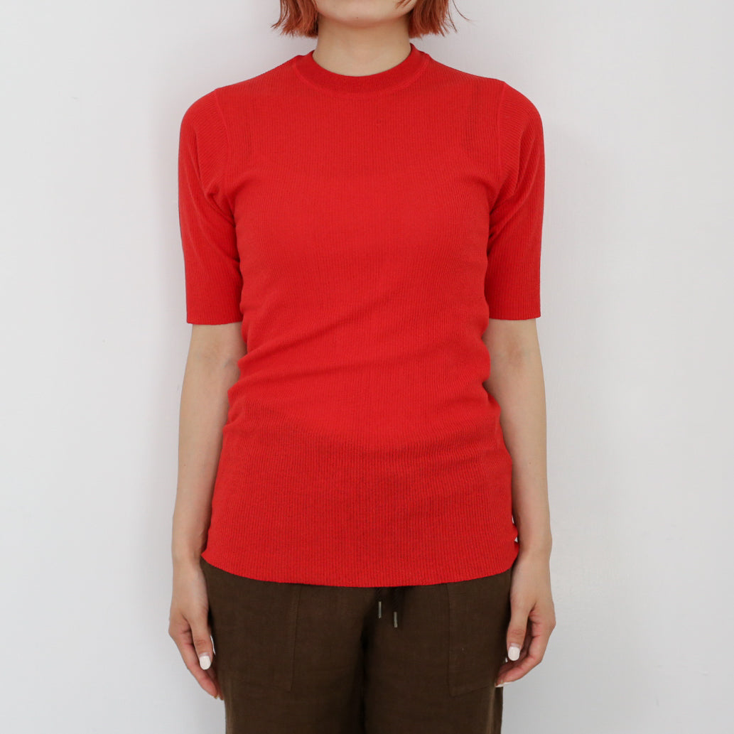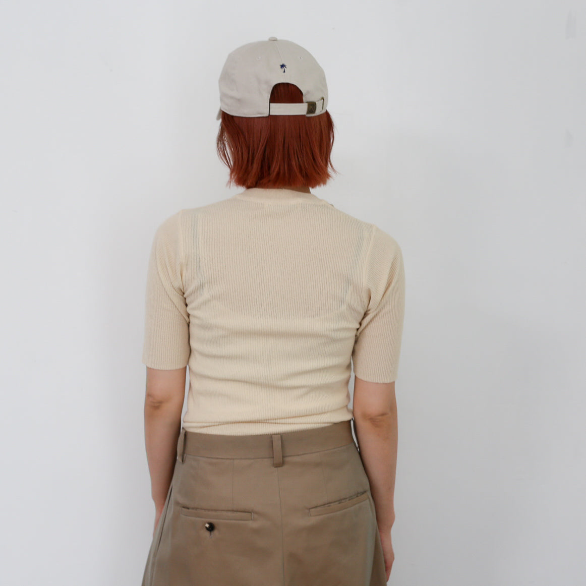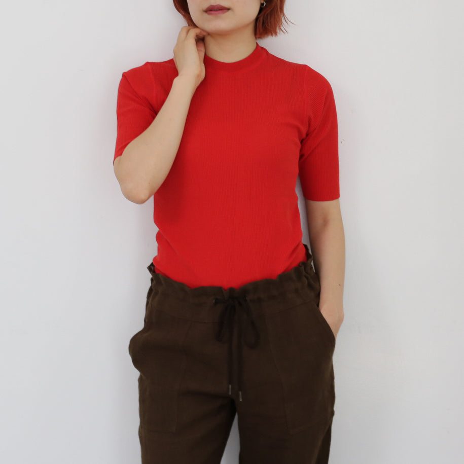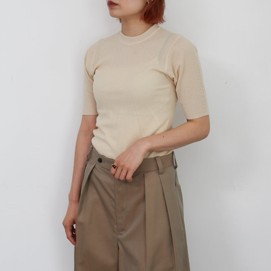 シアー感とフィット感が特徴のコンパクトなニットトップス。