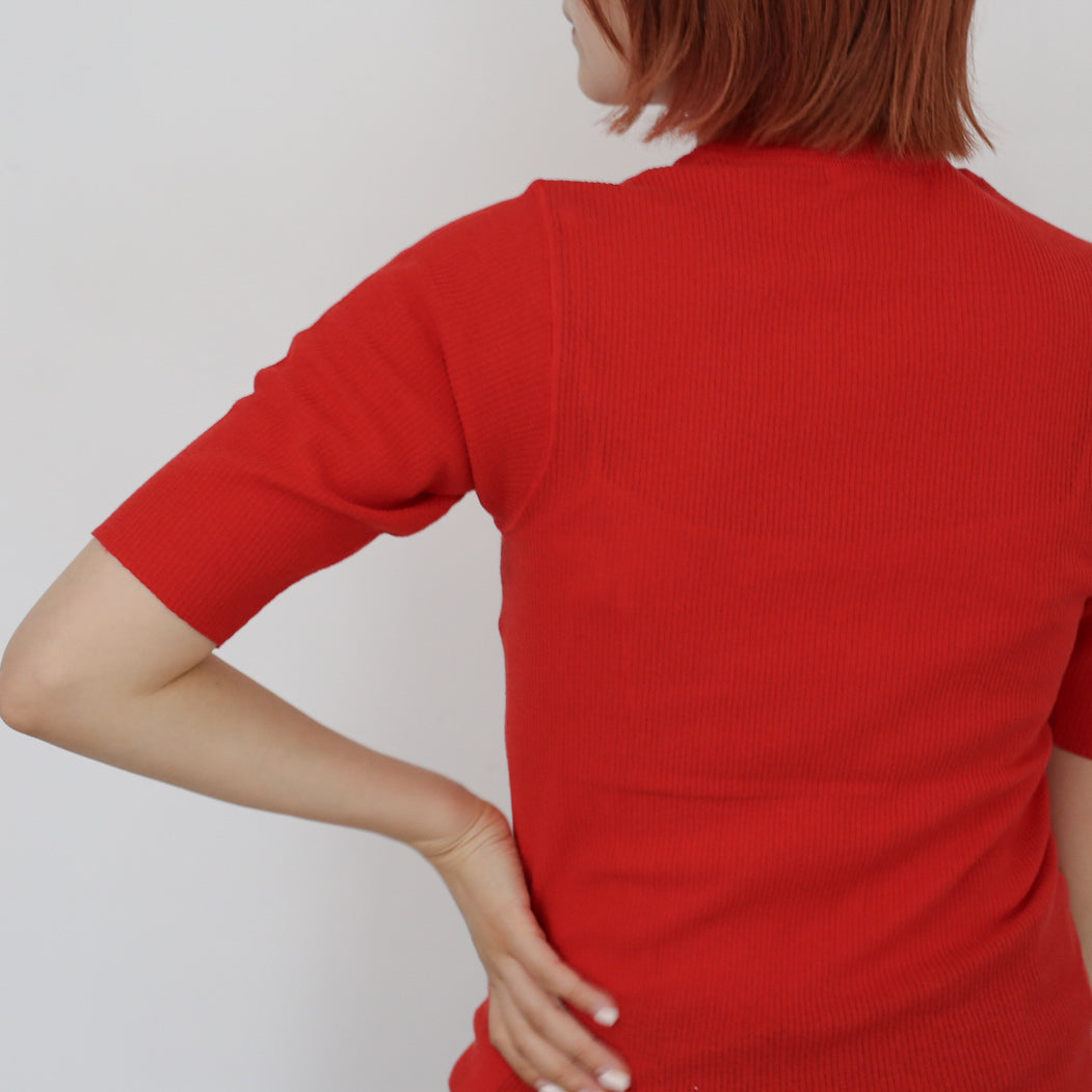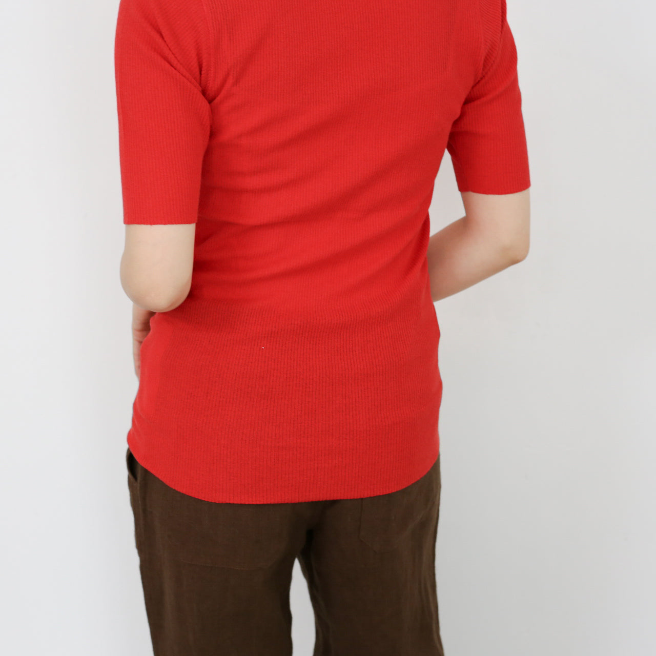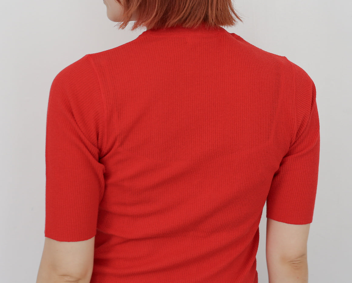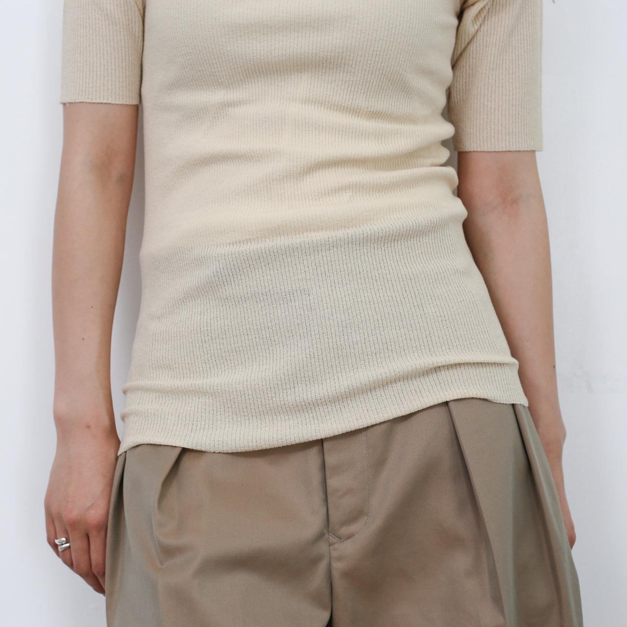 シアー感とフィット感が特徴のコンパクトなニットトップス。