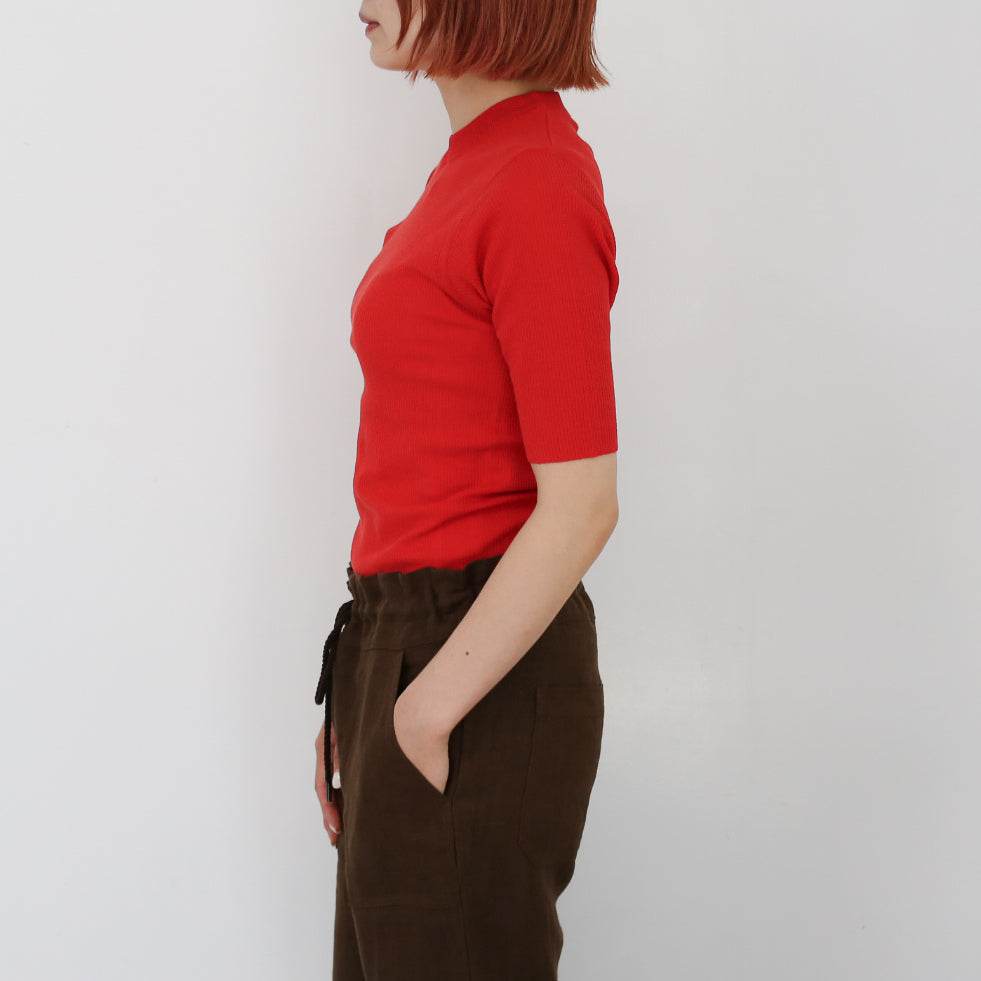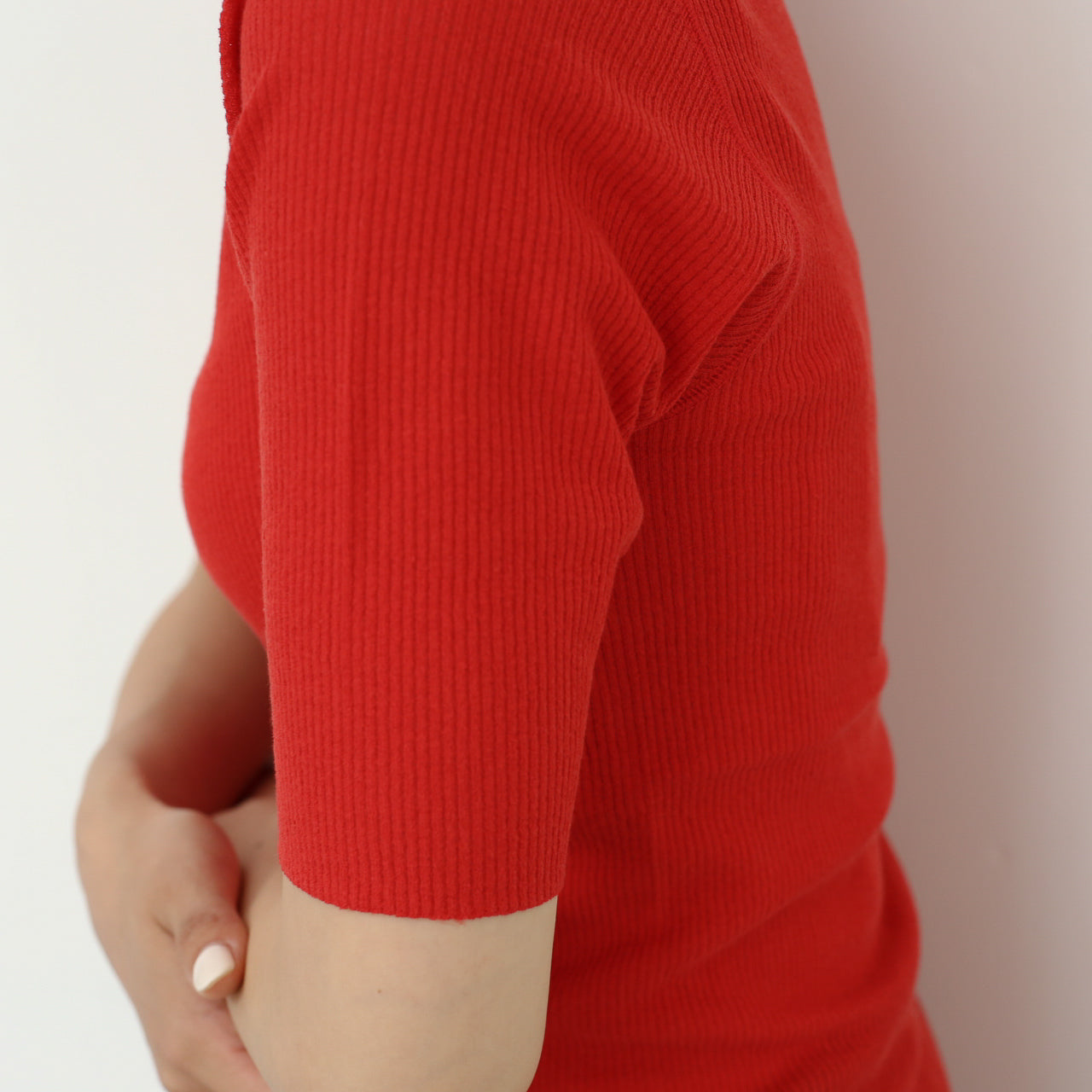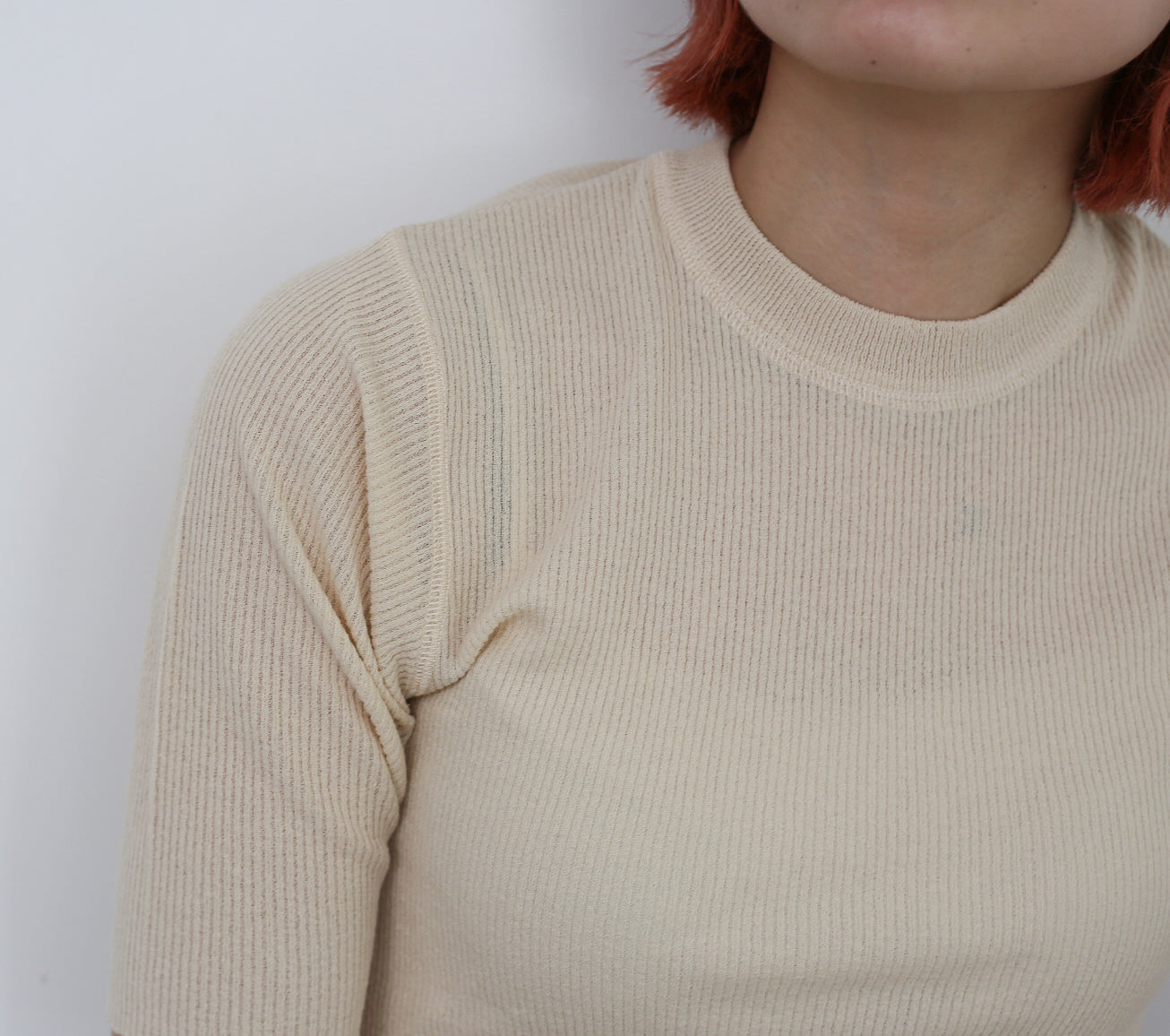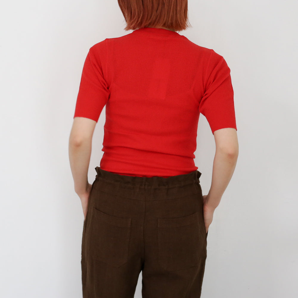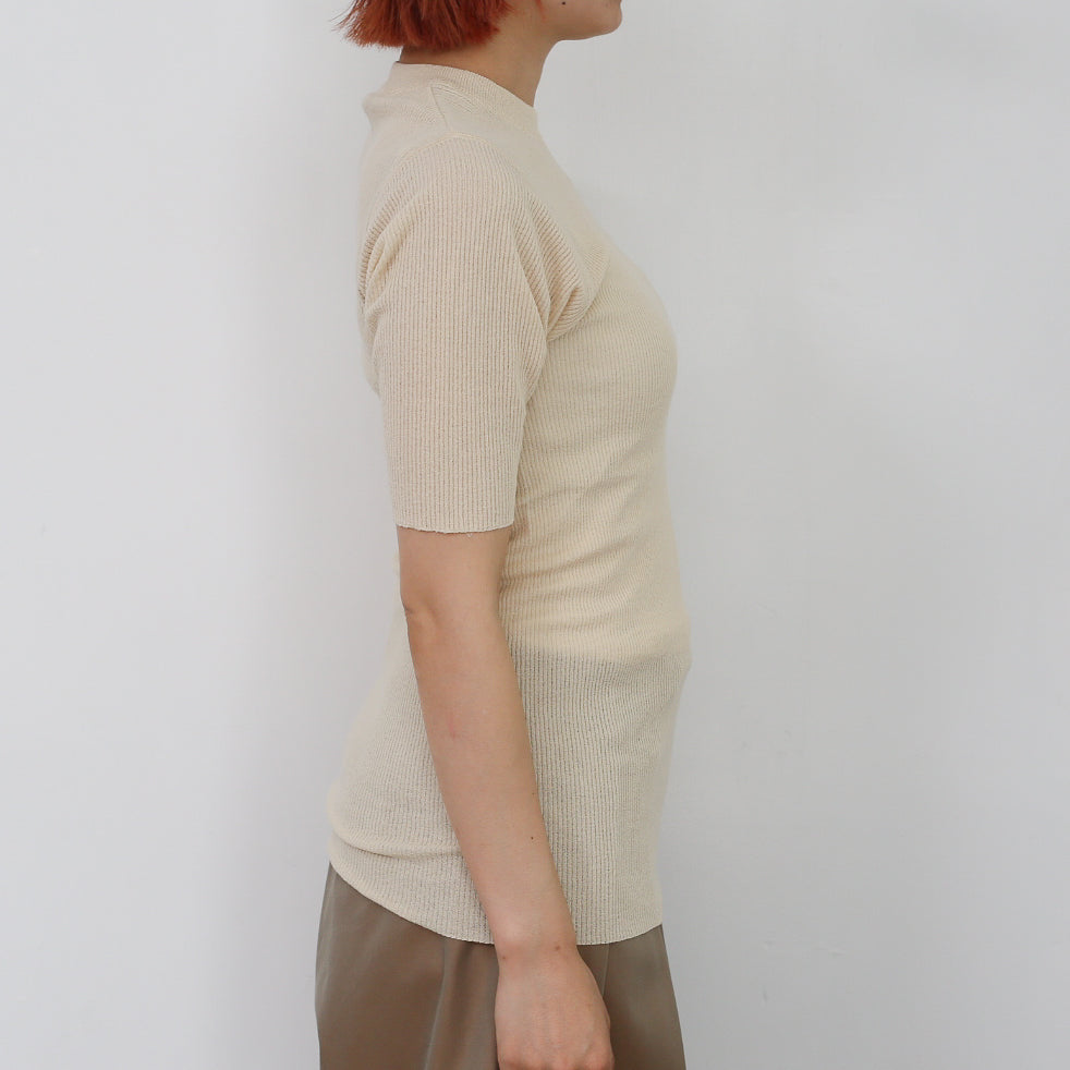 シアー感とフィット感が特徴のコンパクトなニットトップス。
