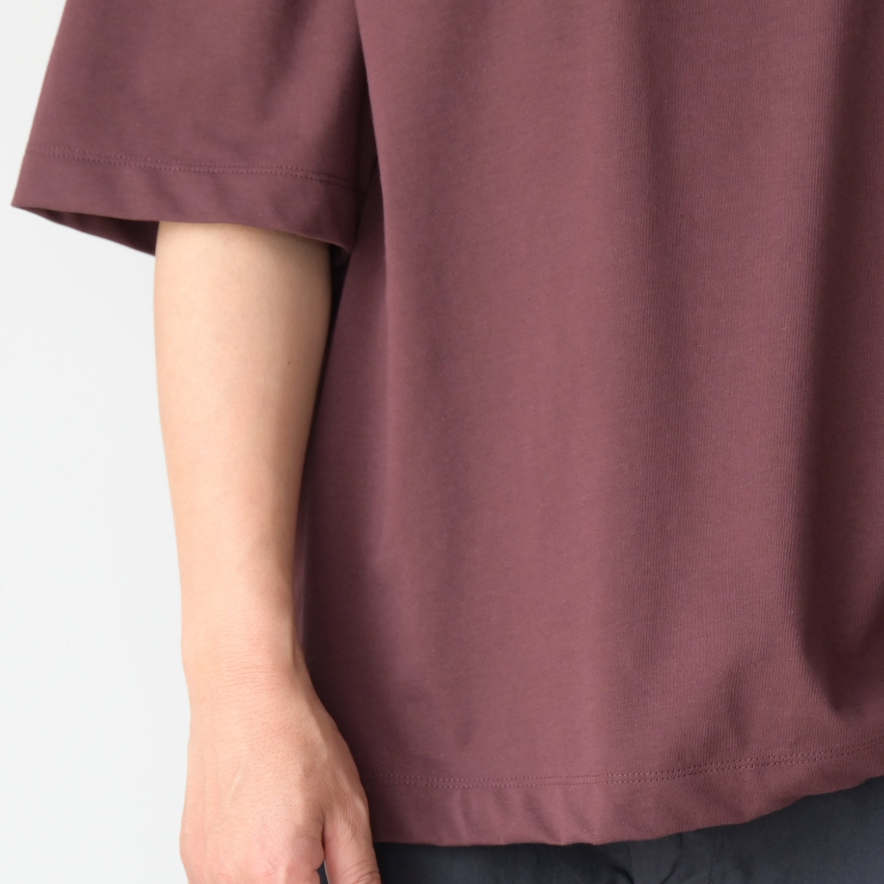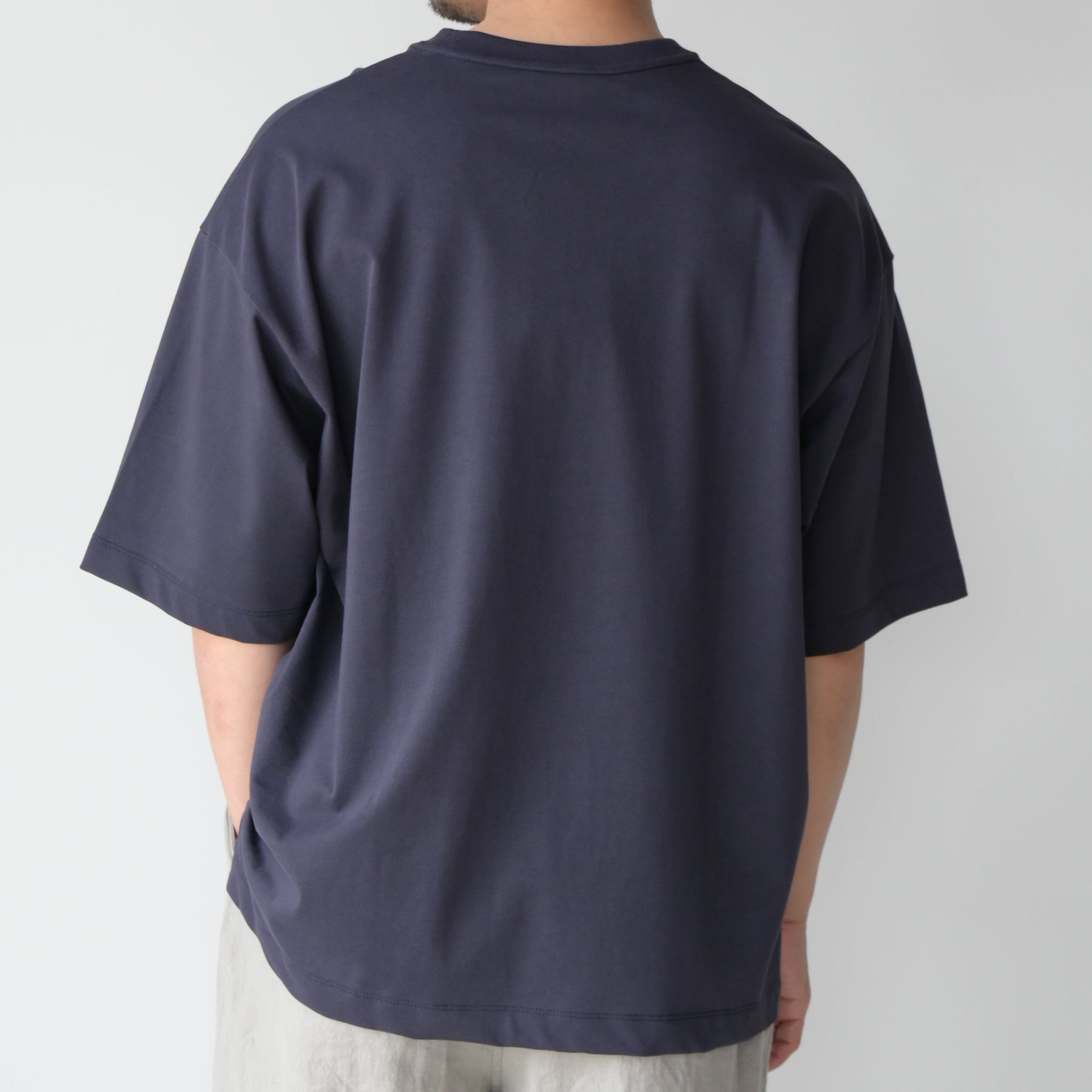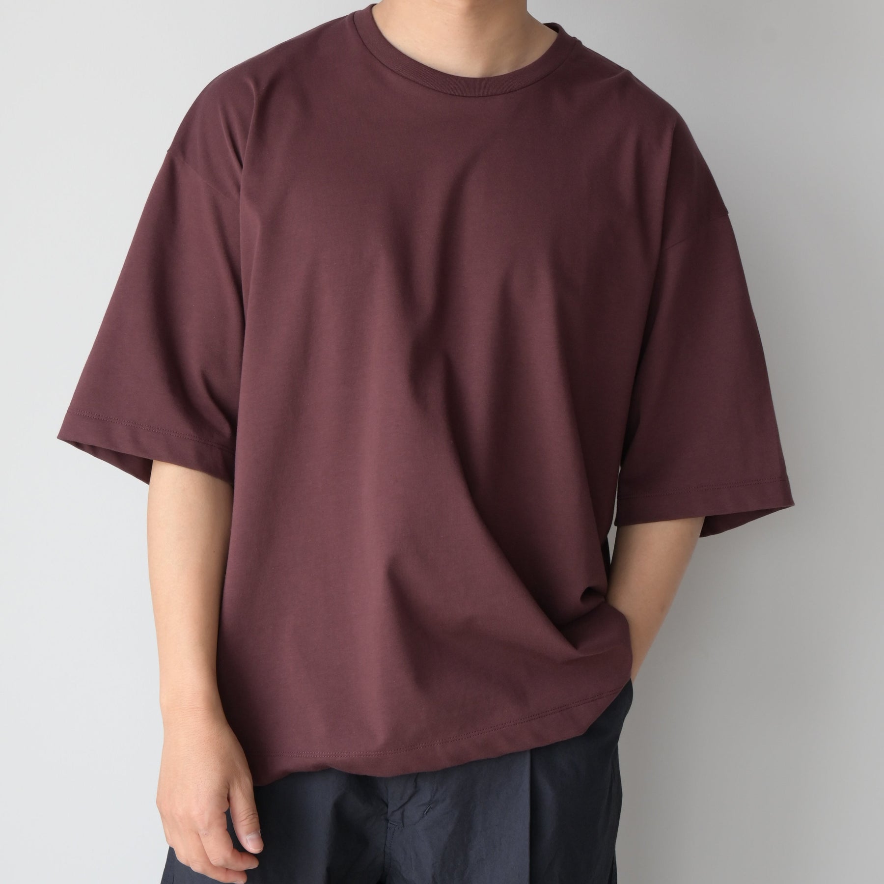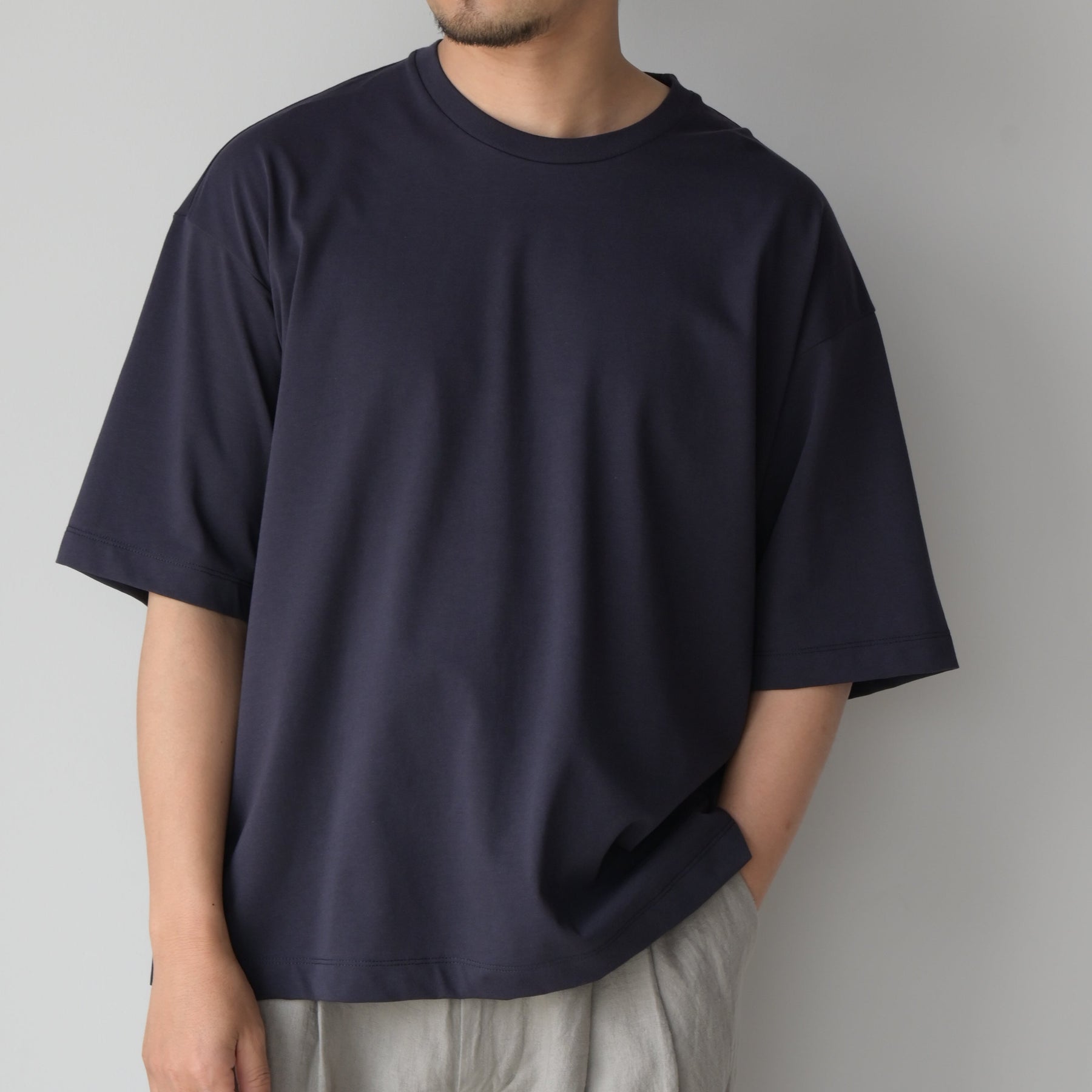 ゆったりとしたシルエットながら、高密度に編み込まれた生地故の上品な風合いがあり、タックパンツなど綺麗めなボトムとも相性が良いTシャツです。