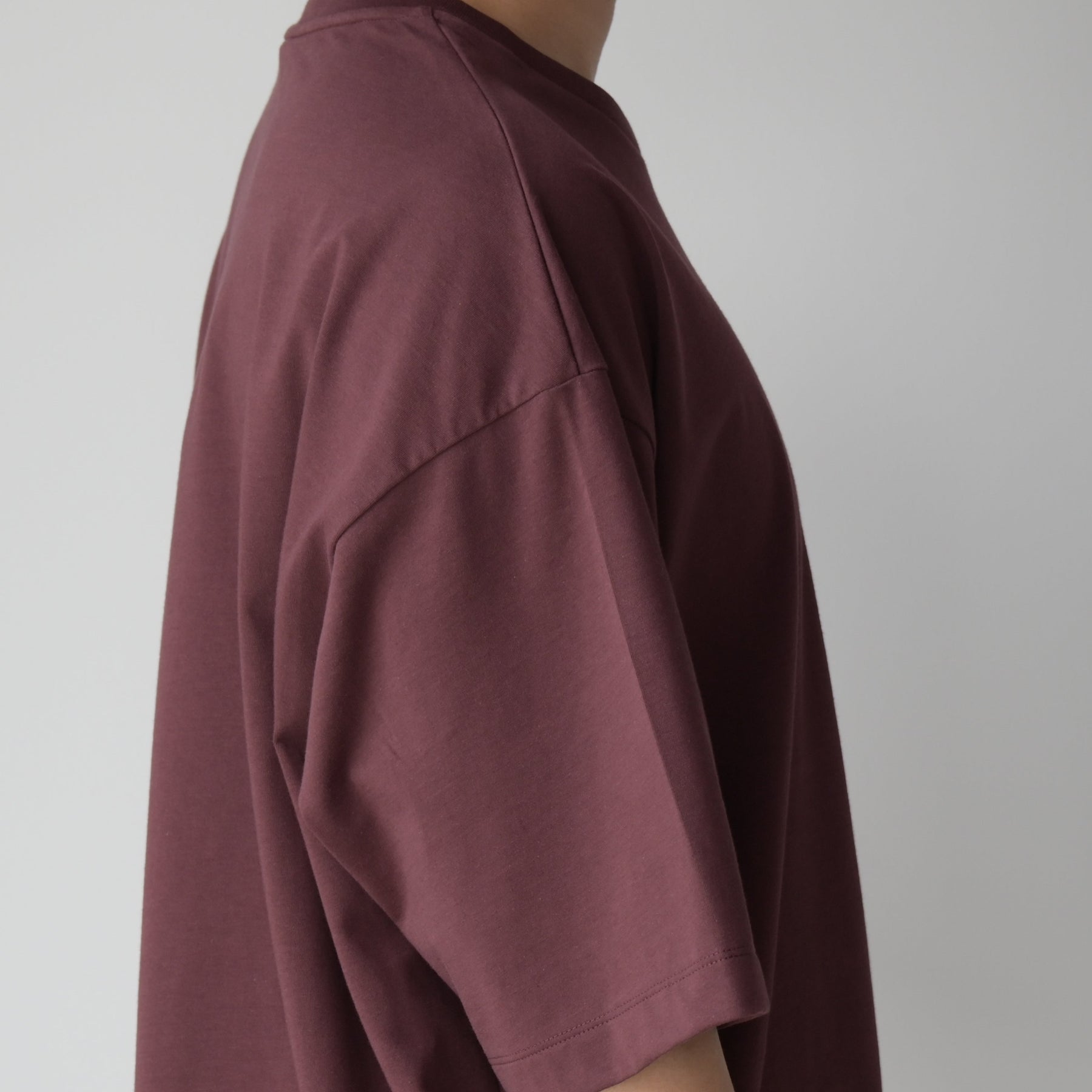 手摘みのオーガニックコットンを原料とし、糸からオリジナルで引いたこだわりの生地を使用。加工をかけてハリ感のある仕上がりのルーズTシャツ。
