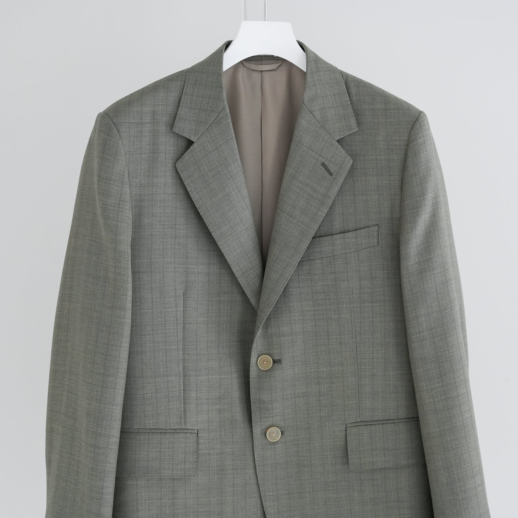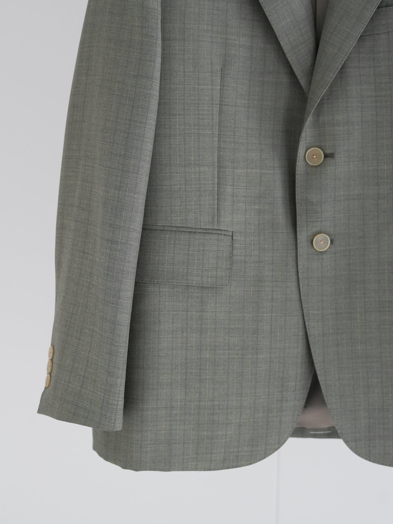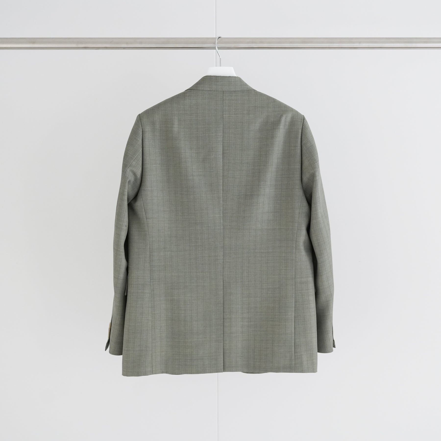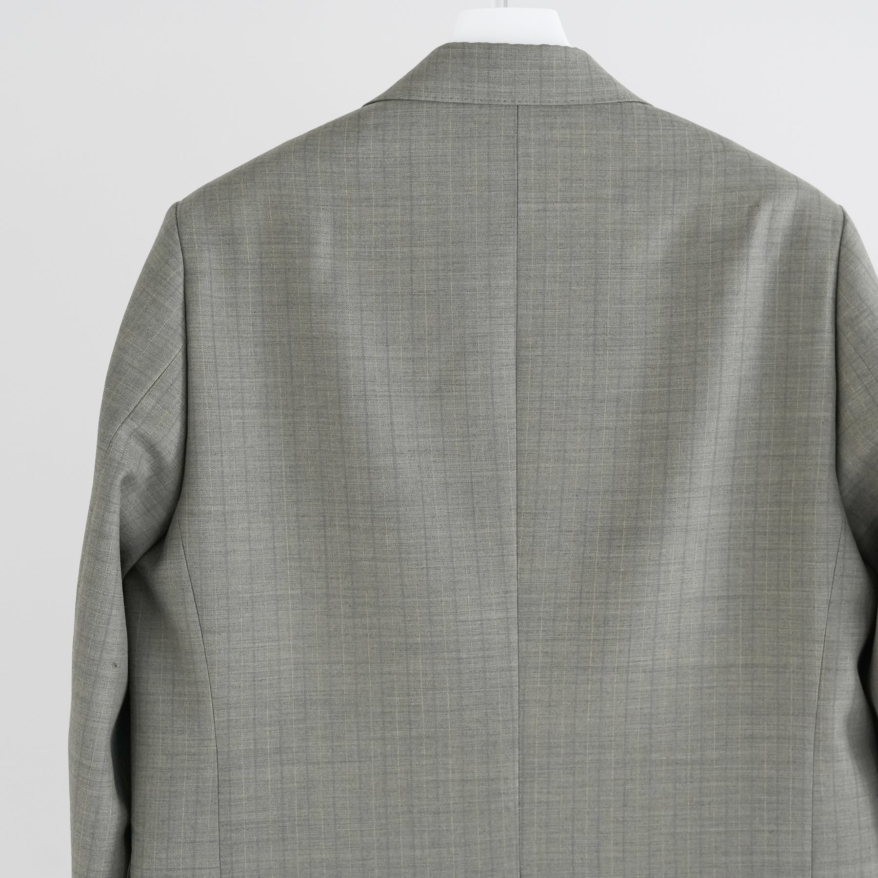 経糸にはスーパー130’sのスーパーエキストラファインメリノを、緯糸には英国羊毛ブルーフェイスラスター種の梳毛糸を使用した贅沢な素材です。