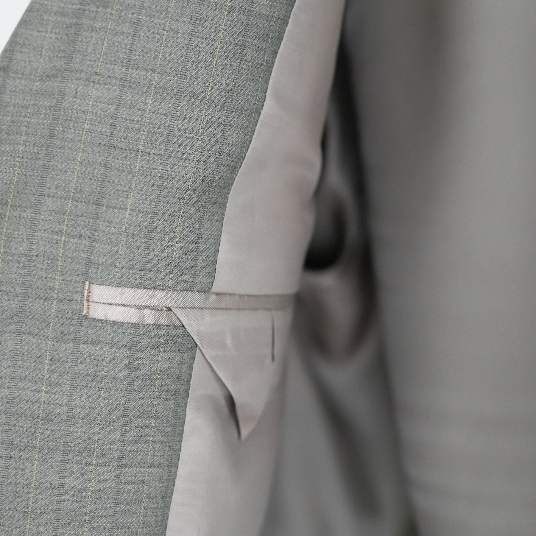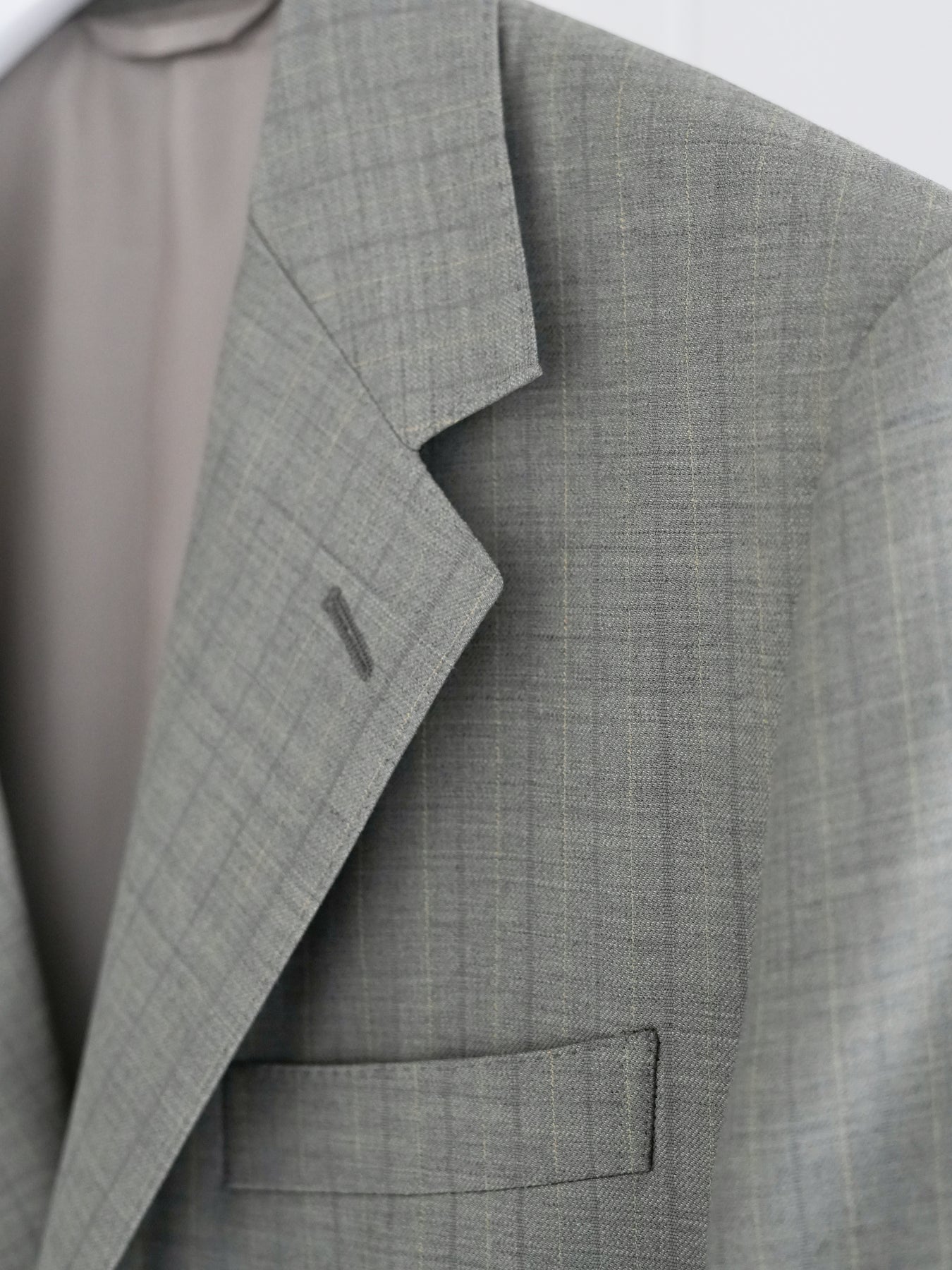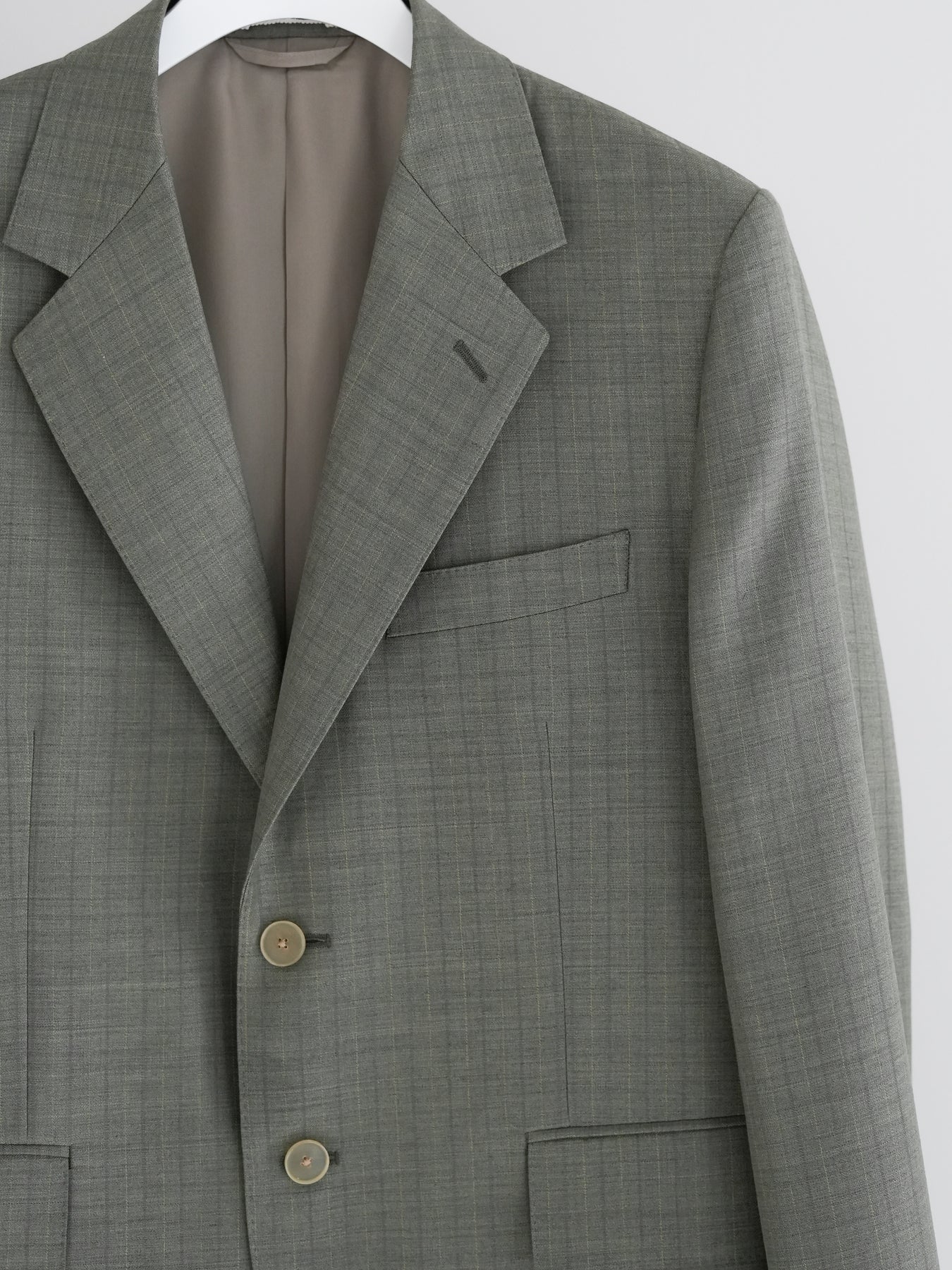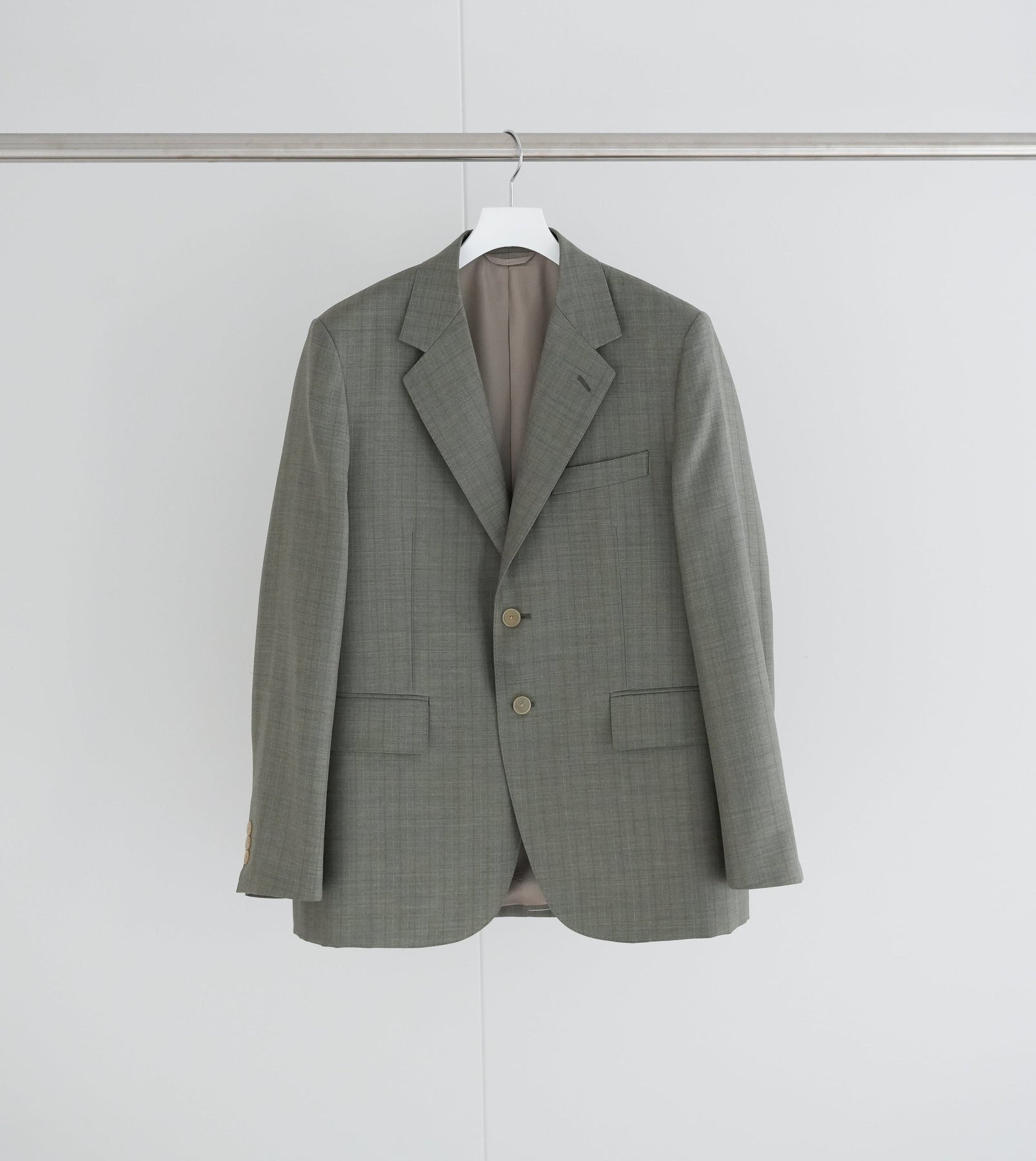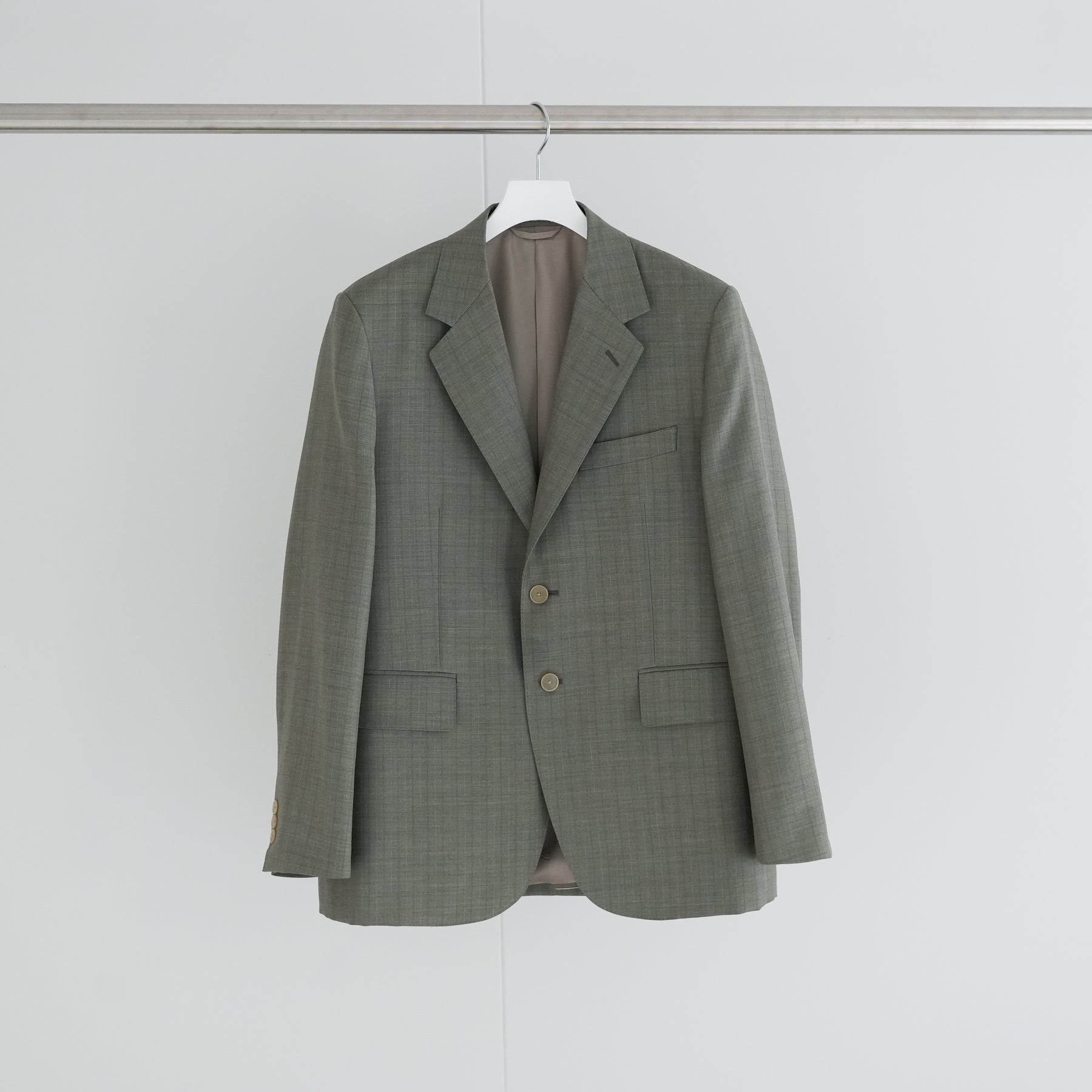 経糸にはスーパー130’sのスーパーエキストラファインメリノを、緯糸には英国羊毛ブルーフェイスラスター種の梳毛糸を使用した贅沢な素材です。