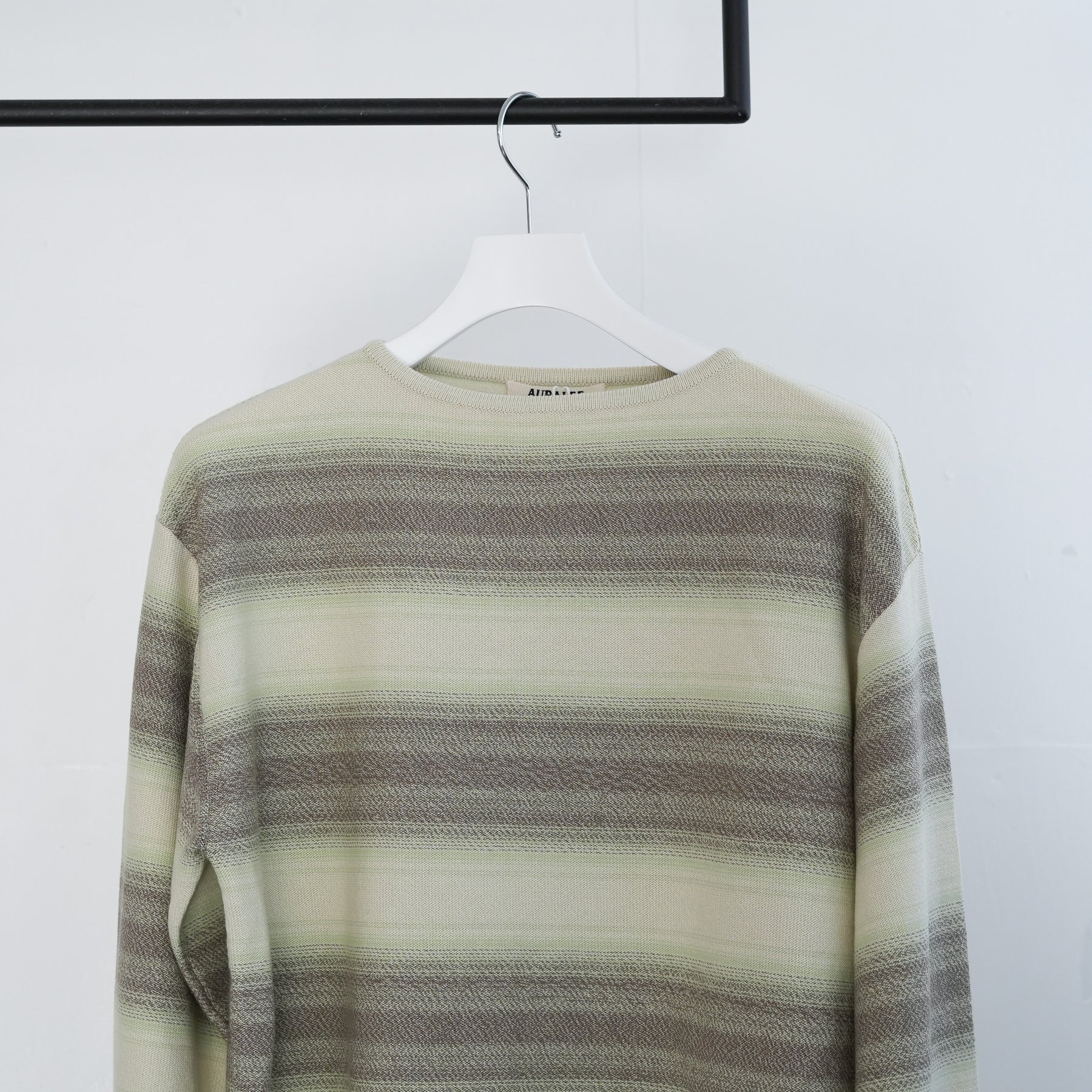 撚糸にも編みにも非常に手間をかけ、一見ではわからないほど繊細なニット技法を随所に施したAURALEEの美意識とクラフトマンシップが凝縮された一着です。